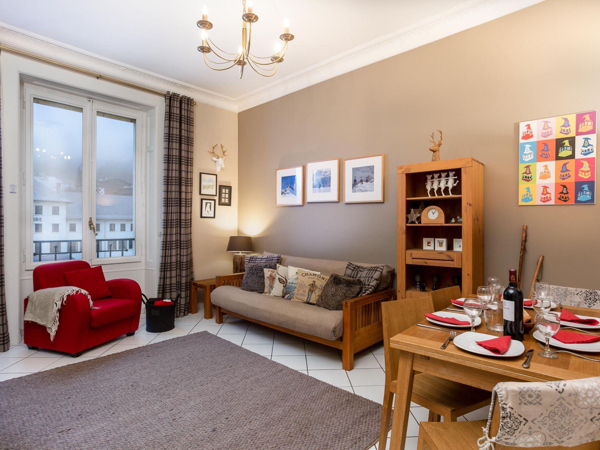Large windows in the lounge which open out to take in the mountain views facing Brevent