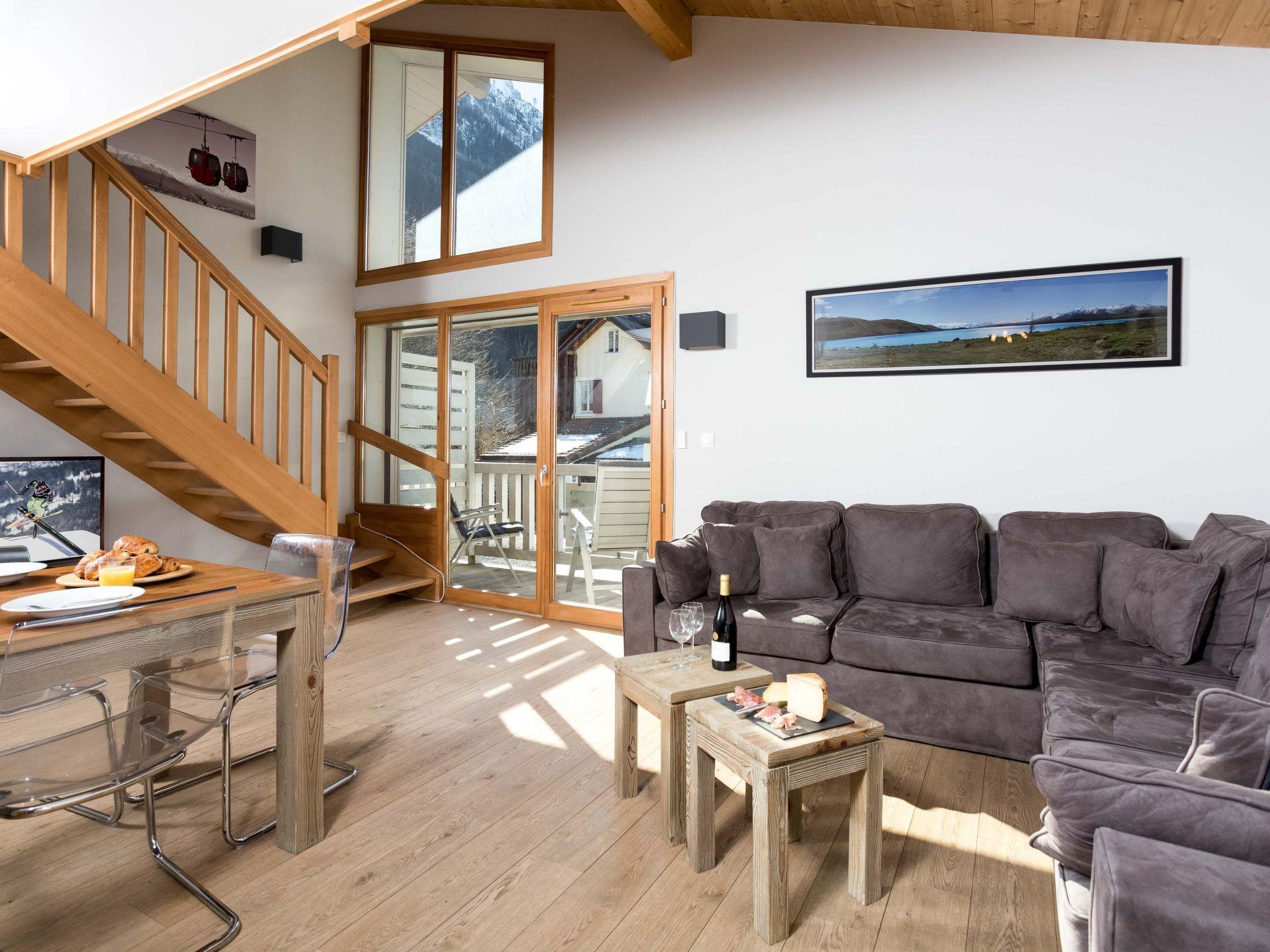 Sauberands 18 apartment is a duplex apartment on the 1st floor of a recently built residence. The apartment is bright, airy and spacious, benefiting from a south-facing balcony and views of Mont Blanc. Sauberands 18 apartment has 2 bedrooms and a large main bathroom with shower and washing machine, plus 2 separate WCs. It sleeps 4-5 people comfortably with the use of an additional single bed on the mezzanine landing, with second pull-out bed underneath. The apartment has wifi internet access, TV & DVD player with a selection of DVDs and Apple TV. A well-equipped kitchen is another benefit with oven, microwave, dishwasher and Nespresso coffee machine. An underground parking space is available, where skis and boots can also be stored. The residence is located on the edge of the town centre, a 5 minute walk to the pedestrian high street.