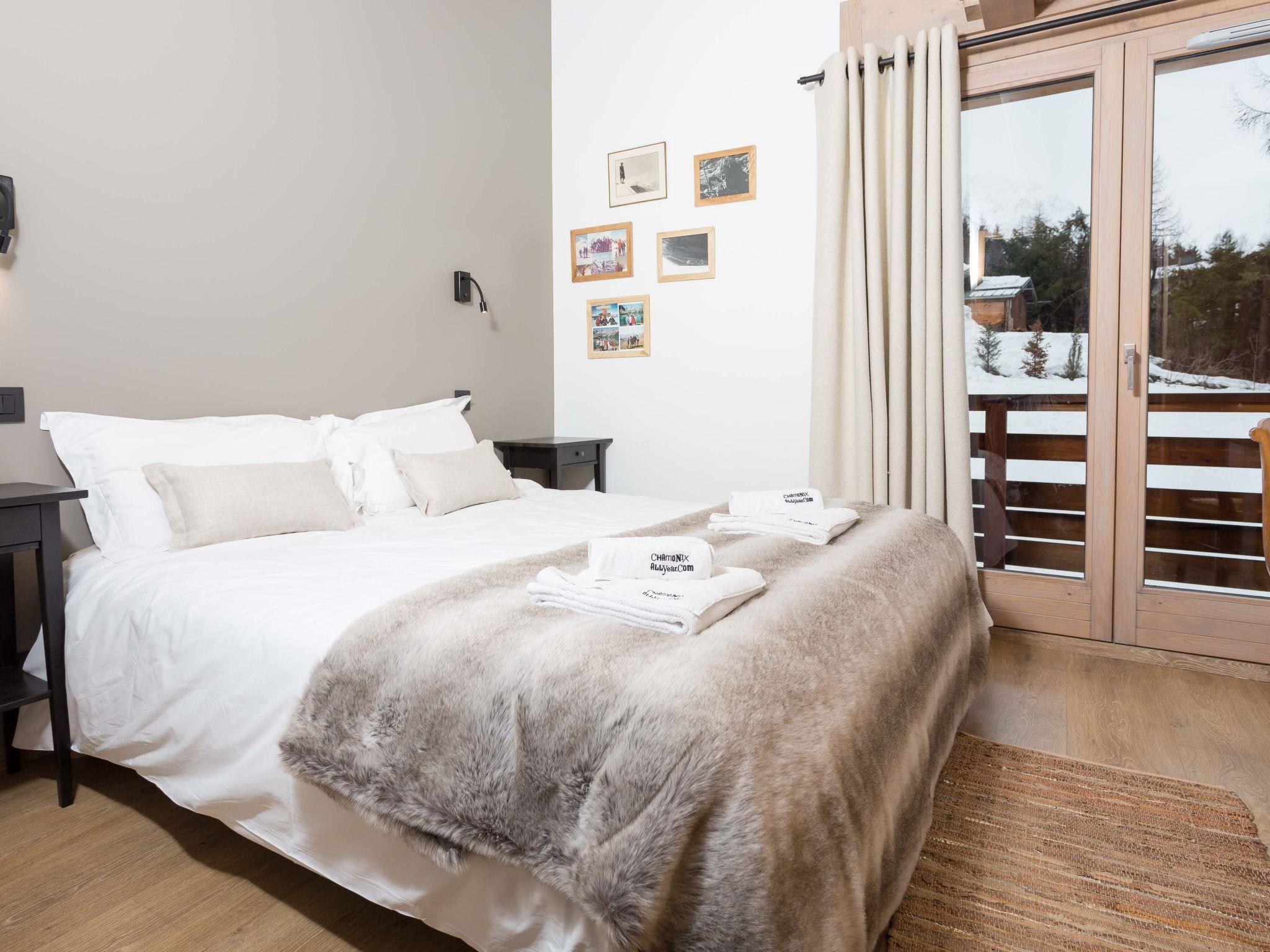 Chalet de l'Ours is a newly renovated, 5 bedroom, luxury Chamonix property sleeping 6-10 people, available to rent and ideal for families looking for a Chamonix base. Featuring 5 bedrooms and 3 bathrooms, the chalet is located in a quiet area of Chamonix, but also just 10 minutes' walk into the centre. The chalet has a lovely open plan living room with American-style kitchen, dining area and lounge with feature fireplace, as well as a door leading onto the large (58 sqm) sunny terrace facing Mont Blanc. Chalet de l'Ours has underfloor heating throughout, and there is also a large garden, ski storage and plenty of parking including a covered space for one car. There is a washing machine and tumble dryer in this luxury Chamonix property, as well as wifi internet and Nespresso coffee machine too.