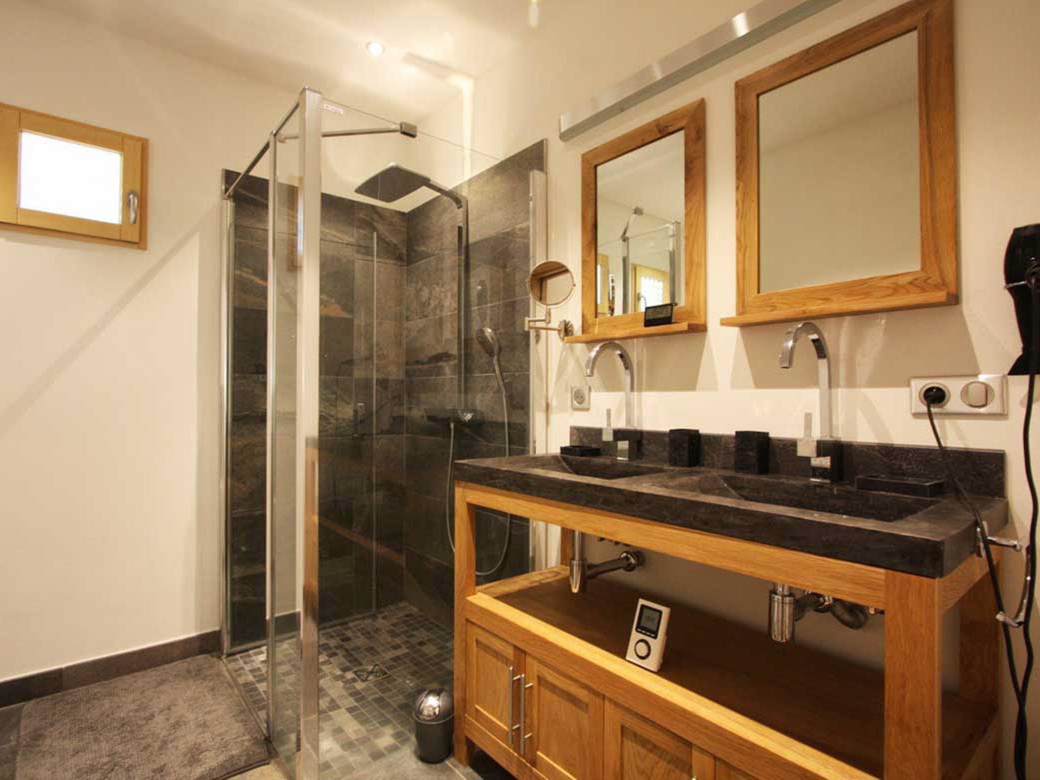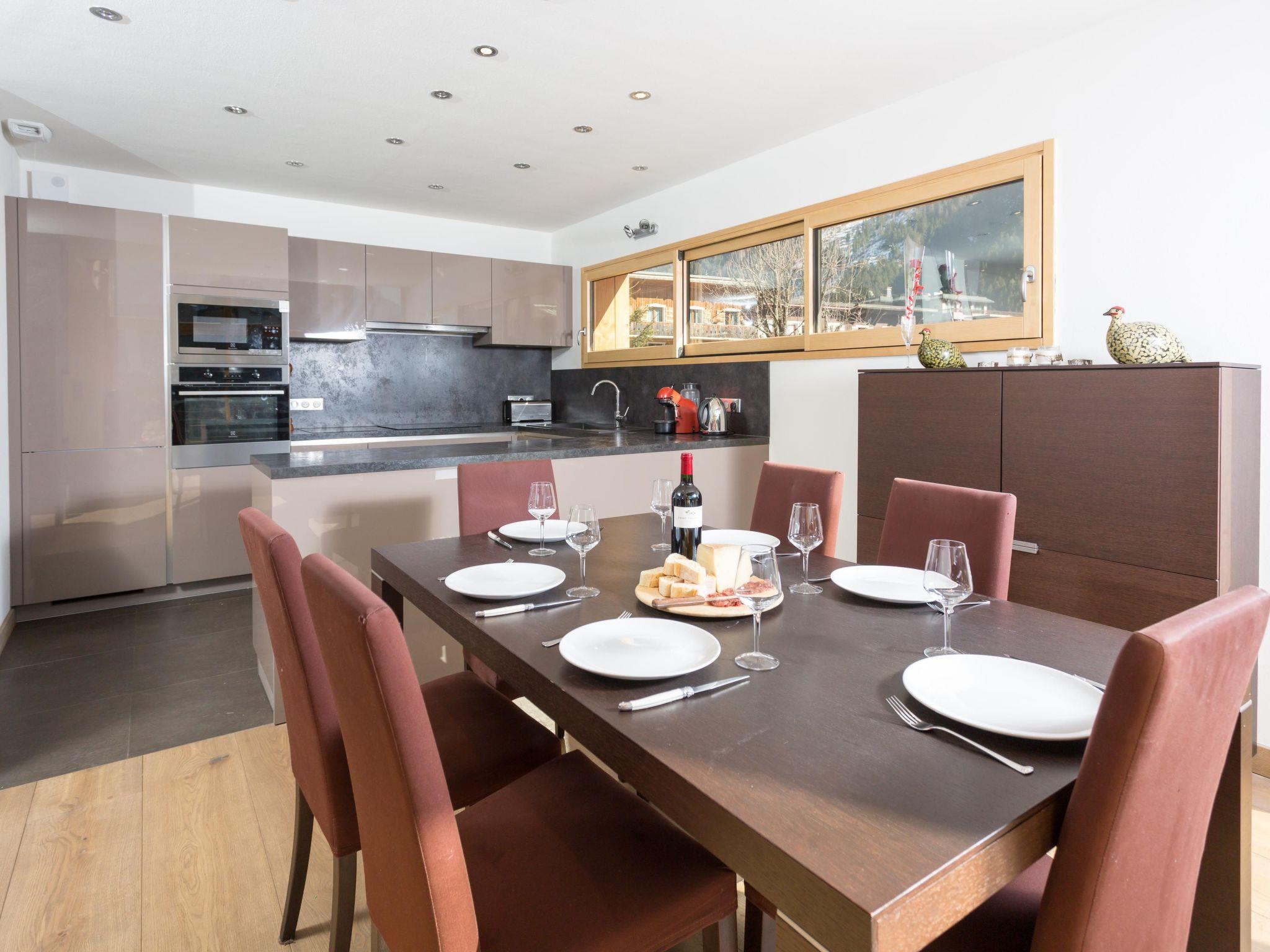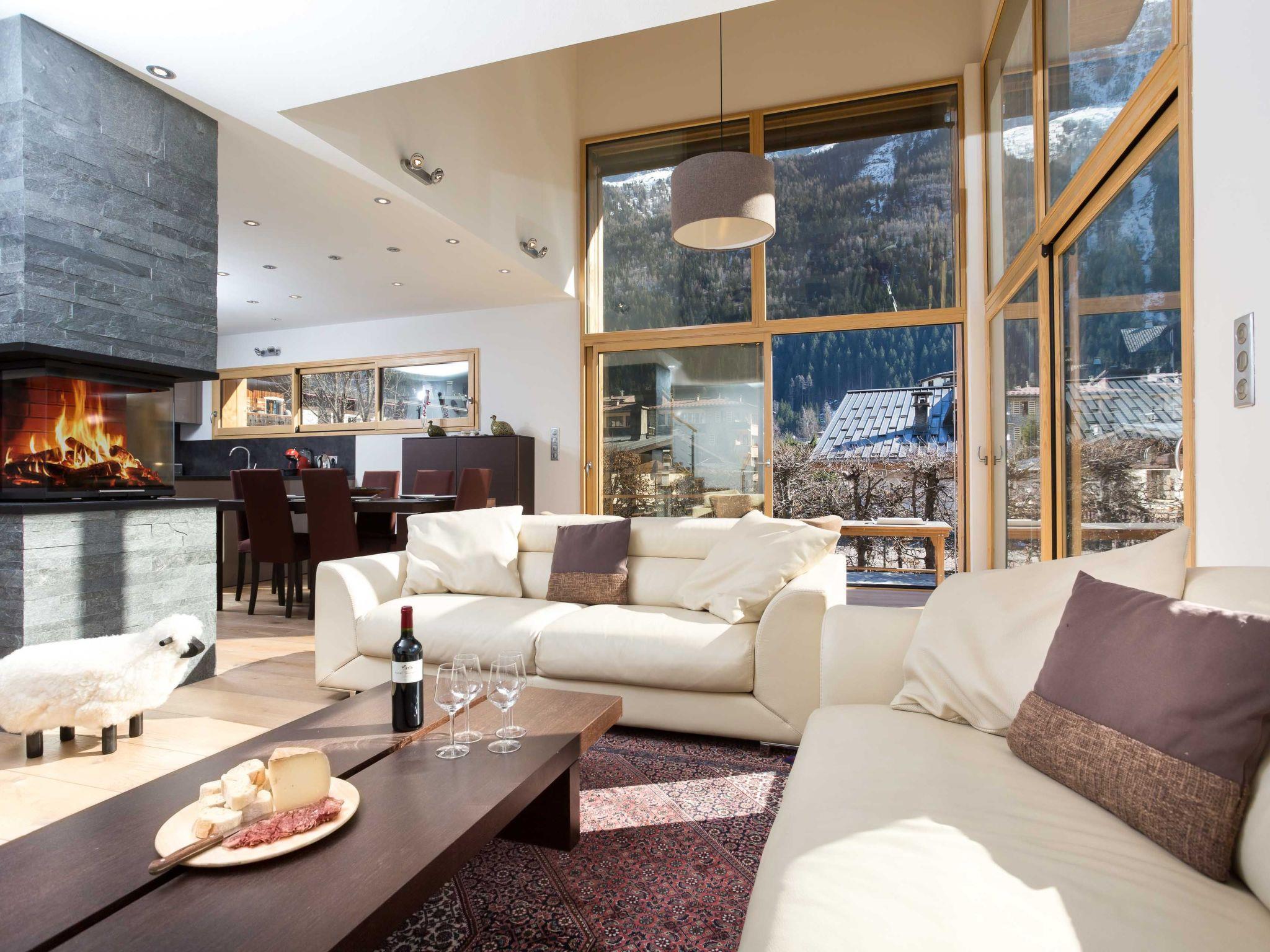 Chalet Raphael is a stunning, newly built, luxury Chamonix chalet, located right in the centre of Chamonix town centre, which benefits from a sunny terrace and garden facing Mont Blanc. The large picture windows from the living area and spacious terrace and garden offer unrivalled views of Mont Blanc, Aiguille du Midi and Glacier des Bossons. The Chamonix chalet has 4 bedrooms and 3 bathrooms, plus open-plan living and dining area centred around a log fire, as well as a peaceful separate reading snug on the first floor. The kitchen is well-equipped to make your stay comfortable, with oven / microwave, raclette and Nespresso coffee machine, and the dining table seats 8. There is a telescope provided at Chalet Raphael for your enjoyment in the living room, as well as French satellite TV channels, Apple TV, Playstation 4 and DVD player. There are DVDs and CDs to choose from, and an upright piano.The lower ground level also offers gym equipment for your use and there is ski storage in the garage, while the driveway offers external parking.