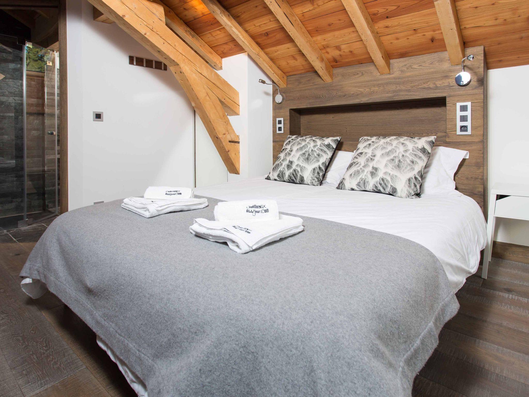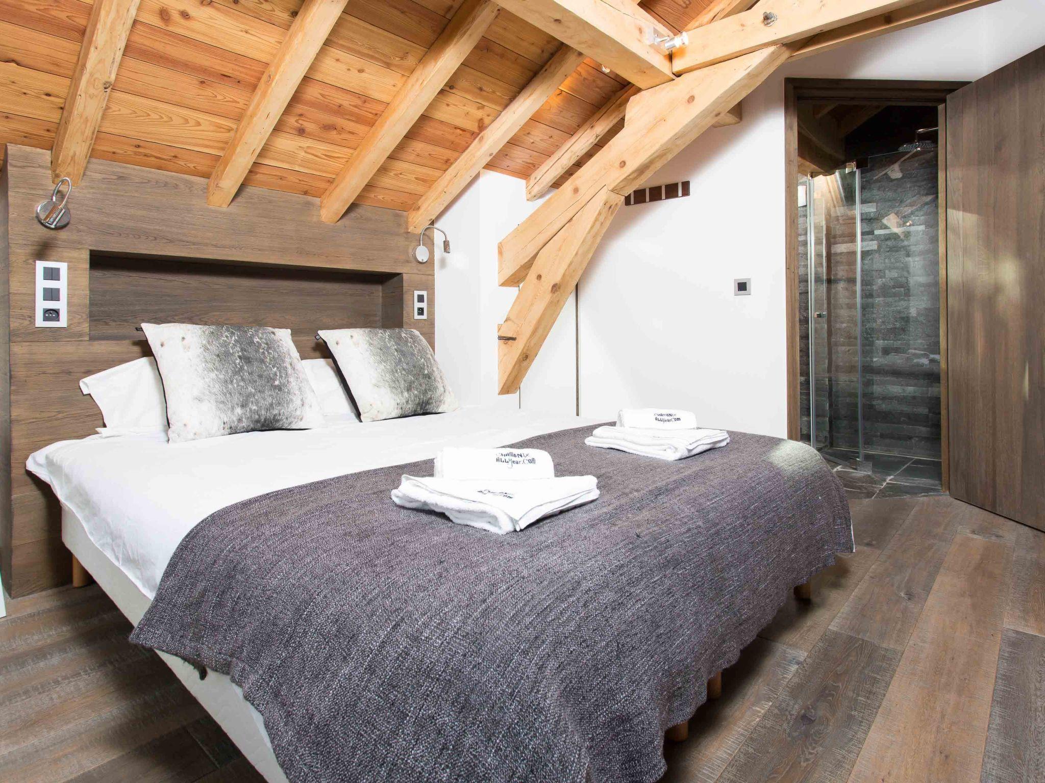 The Chamonix chalet also has 4 bedrooms and 4 bathrooms - 3 ensuite shower rooms and one adjacent bathroom with bath and overhead shower. Each bedroom also has a TV with French channels.