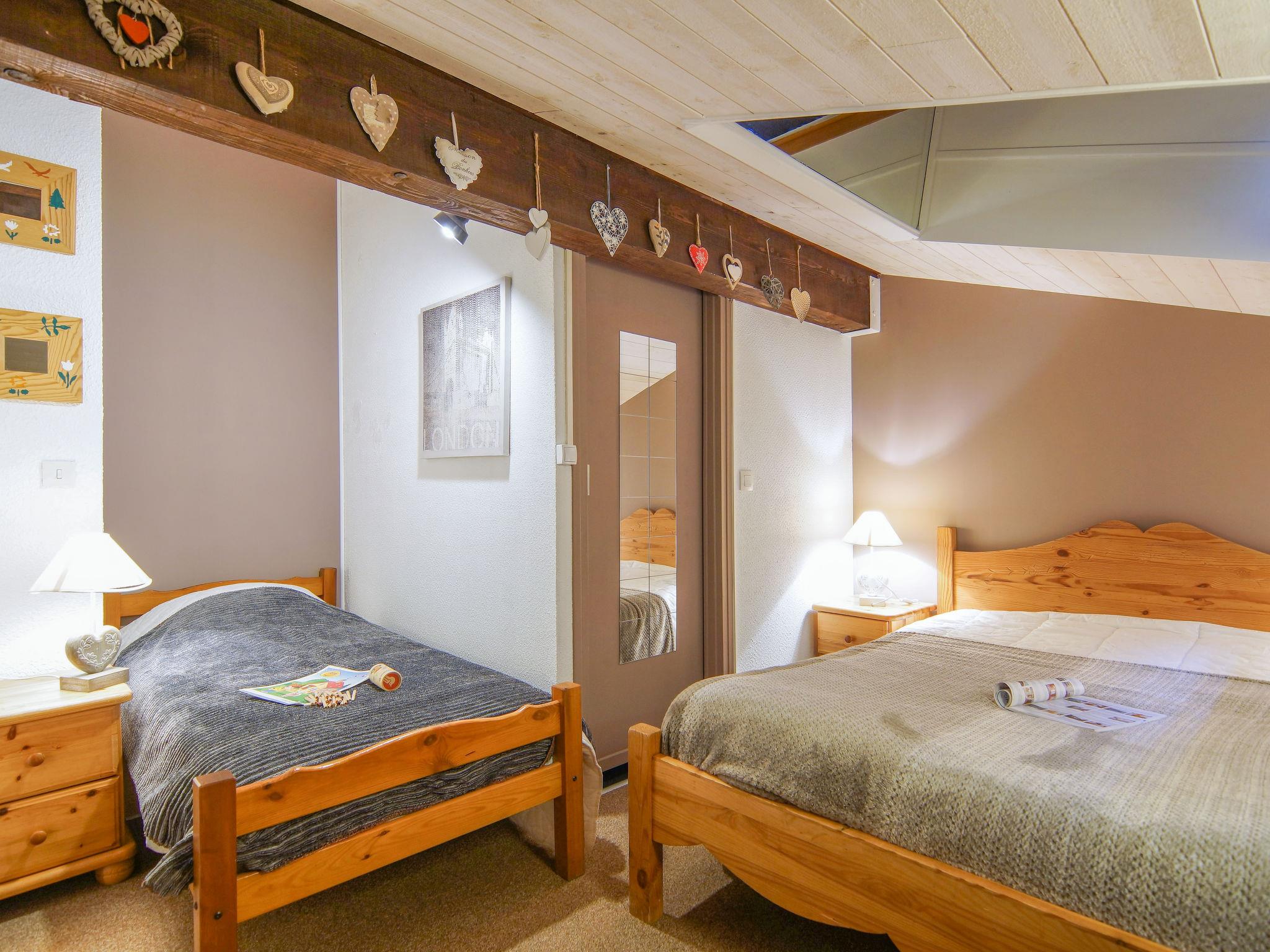 3-room apartment 45 m2 on 2 levels on 3rd floor. Living/dining room with TV. Exit to the balcony. 1 room with 1 french bed (140 cm, length 190 cm). Exit to the balcony. Kitchenette (oven, dishwasher, 4 ceramic glass hob hotplates, kettle, microwave, electric coffee machine). Bathroom, sep. WC. Electric heating. Upper floor: (steep stair), 1 room with sloping ceilings with rooflight with 1 bed (80 cm, length 180 cm), 1 french bed (140 cm, length 190 cm). Shower/WC. Large balcony, south-west facing position. Very beautiful view of the mountains. Facilities: iron. Internet (WiFi, extra). Please note: non-smokers only, no parking. TV only FR. Smoke alarm. 74056000847PK