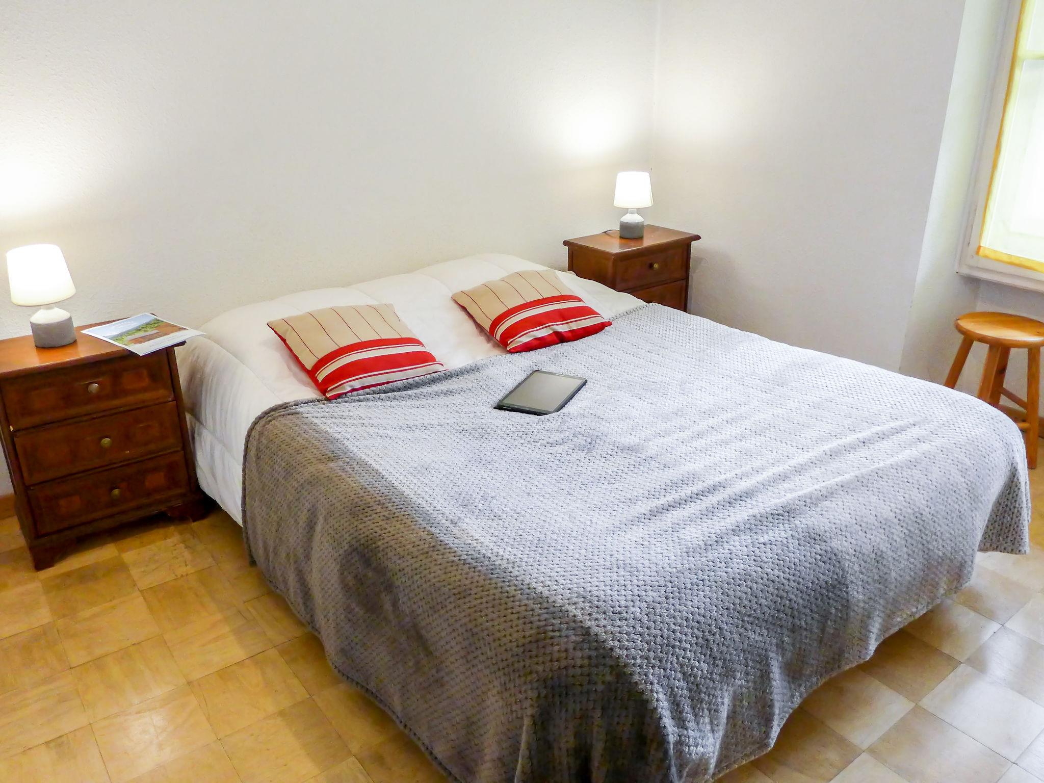 2-room apartment 42 m2 on 3rd floor. Simple furnishings: living/dining room with TV. Exit to the balcony. Alcove with 1 x 2 bunk beds (90 cm, length 190 cm). 1 room with 1 french bed (140 cm, length 190 cm). Kitchenette (oven, dishwasher, 2 ceramic glass hob hotplates, microwave, electric coffee machine, Capsules for coffee machine (Tassimo) extra). Shower, sep. WC. Electric heating. Balcony, north-east facing position. View of the mountains. Facilities: washing machine. Internet (WiFi, extra). Garage space n 34 petite voiture. Please note: TV only FR. Smoke alarm. Instead of an enclosed bedroom, some sleeping areas are located in an open-plan area (gallery, alcove, etc.). 74056001140IG