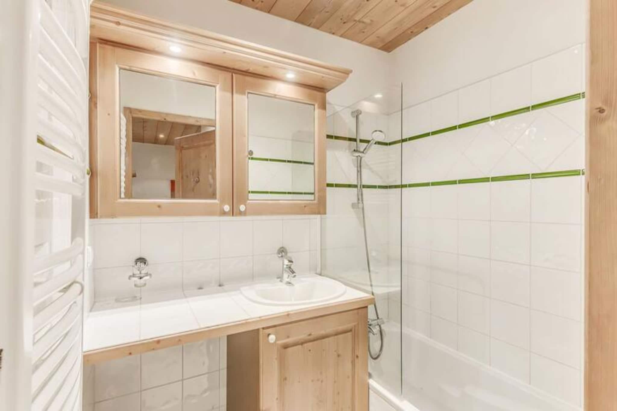 Denne rummelige lejlighed på 57 m² kan rumme op til 6 personer. Den har to vestvendte soveværelser, det ene med 2 enkeltsenge og det andet med en dobbeltseng og et brusebad med tv. I stuen er der spise- og opholdsstue med to udtrækssovesofaer, perfekt til ekstra gæster. Lejligheden er ikke-ryger og kæledyrsfri, ideel til familier eller grupper. Inkluderet i lejen er lagner, håndklæder og slutrengøring (ekskl. køkkenet). Der kræves et refunderbart depositum, og der er en stor solrig balkon med smuk udsigt. Lejligheden er bekvemt placeret ved indgangen til landsbyen og tilbyder nem adgang til nærliggende attraktioner og aktiviteter. En gratis shuttle-service kører i vintersæsonen og tager gæsterne til feriestedets centrum, gondolen og ESF-skiskolen hvert 8. minut. Området byder også på en række udendørs aktiviteter, med skiløjperne i kort afstand. Efter skiløb kan du slappe af ved den nærliggende swimmingpool, spa eller nyde en afslappende massage (tilgængelig mod et ekstra gebyr). Det fuldt udstyrede køkken omfatter opvaskemaskine, ovn, mikroovn, kogeplader, køleskab og kaffemaskine, hvilket gør madlavning til en leg. Lejligheden har også en vaskemaskine-tørretumbler, hvilket sikrer ekstra bekvemmelighed ved længere ophold. Uanset om du laver et måltid eller slapper af i opholdsstuen, er denne lejlighed designet til et behageligt og behageligt ophold.