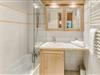 Denne 3-værelses lejlighed, beliggende på 3. sal, kan rumme op til 8 personer. Den har to soveværelser - det ene med dobbeltseng og brusekabine og det andet med to køjesenge plus en kahyt med yderligere to køjesenge. Den rummelige opholdsstue har en udtrækssovesofa, og der er et badeværelse med badekar og separat toilet. Andre faciliteter omfatter en vaskemaskine/tørretumbler, gratis Wi-Fi og sengetøj. Lejligheden er ikke-ryger, og kæledyr er ikke tilladt. Daglig rengøring er tilgængelig efter anmodning. Lejligheden ligger kun en kort shuttle-tur fra resortets centrum, hvor du finder caféer, butikker og restauranter. Den gratis shuttle kører hvert 8. minut om vinteren og giver adgang til gondolen og skiløjperne. Med panoramaudsigt over Vanoise-massivet og Courchevel-skråningerne kan du nyde fantastiske omgivelser og udforske skiløb, vandreture og andre bjergaktiviteter. Det fuldt udstyrede køkken, åbent til stuen, inkluderer moderne apparater til selvforplejning. Opholdsstuen har tv, og der er en nordvendt terrasse til afslapning. Lejligheden har også et skiskab, og gæsterne har adgang til swimmingpoolen, fitnesscentret og spaen på stedet (der kan opkræves ekstra gebyrer for visse tjenester).