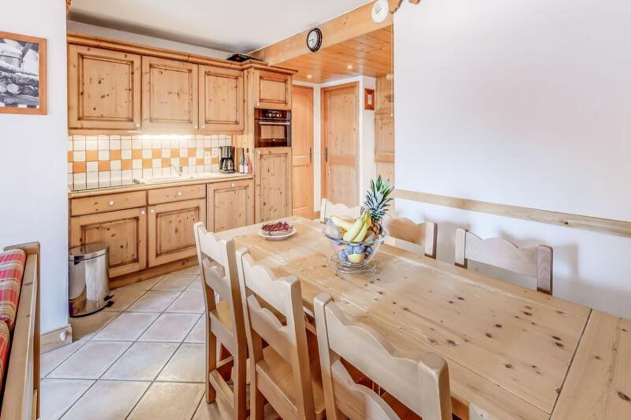 Denne rummelige 4-værelses lejlighed kan komfortabelt rumme op til 8 personer og ligger på anden sal i en stor hytte. Lejligheden har en mastersuite med dobbeltseng, et soveværelse med to enkeltsenge og et kabineværelse med to køjesenge. Den hyggelige stue indeholder en sofa og en udtrækssovesofa til to ekstra gæster. Ejendommen er ikke-ryger og tillader ikke kæledyr. Beliggende ved indgangen til landsbyen, er boligen kun 500 meter fra byens centrum og tilbyder nem adgang til feriestedets hovedattraktioner. En gratis shuttleservice, der kører hvert 8. minut i vintersæsonen, tager gæsterne til gondolliften og ESF. Gæsterne kan nyde den nærliggende naturskønne udsigt over Vanoise-massivet og Courchevel-skråningerne. Boligen ligger også tæt på lokale butikker og caféer, hvilket sikrer et bekvemt ophold. Lejligheden har et fuldt udstyret køkken åbent til stuen, perfekt til at tilberede måltider. Der er badeværelse med badekar og separat brusebad. Gæsterne kan slappe af på en af ??to altaner med øst- og vestvendt udsigt. Yderligere faciliteter inkluderer et skiskab, gratis Wi-Fi og overdækket parkering, hvilket sikrer et behageligt og bekvemt ophold.