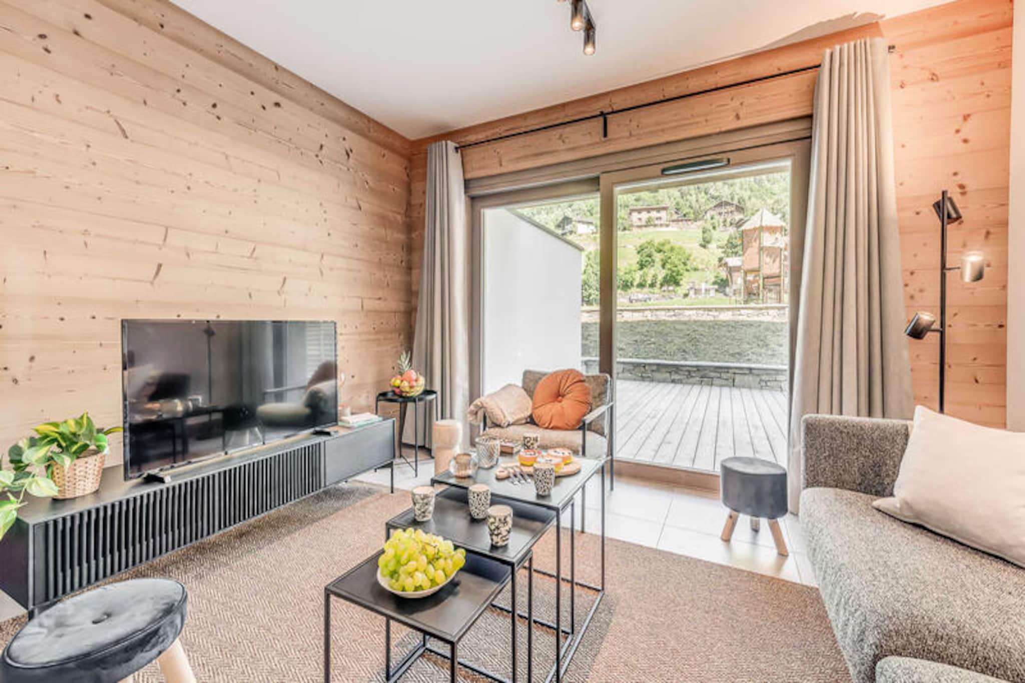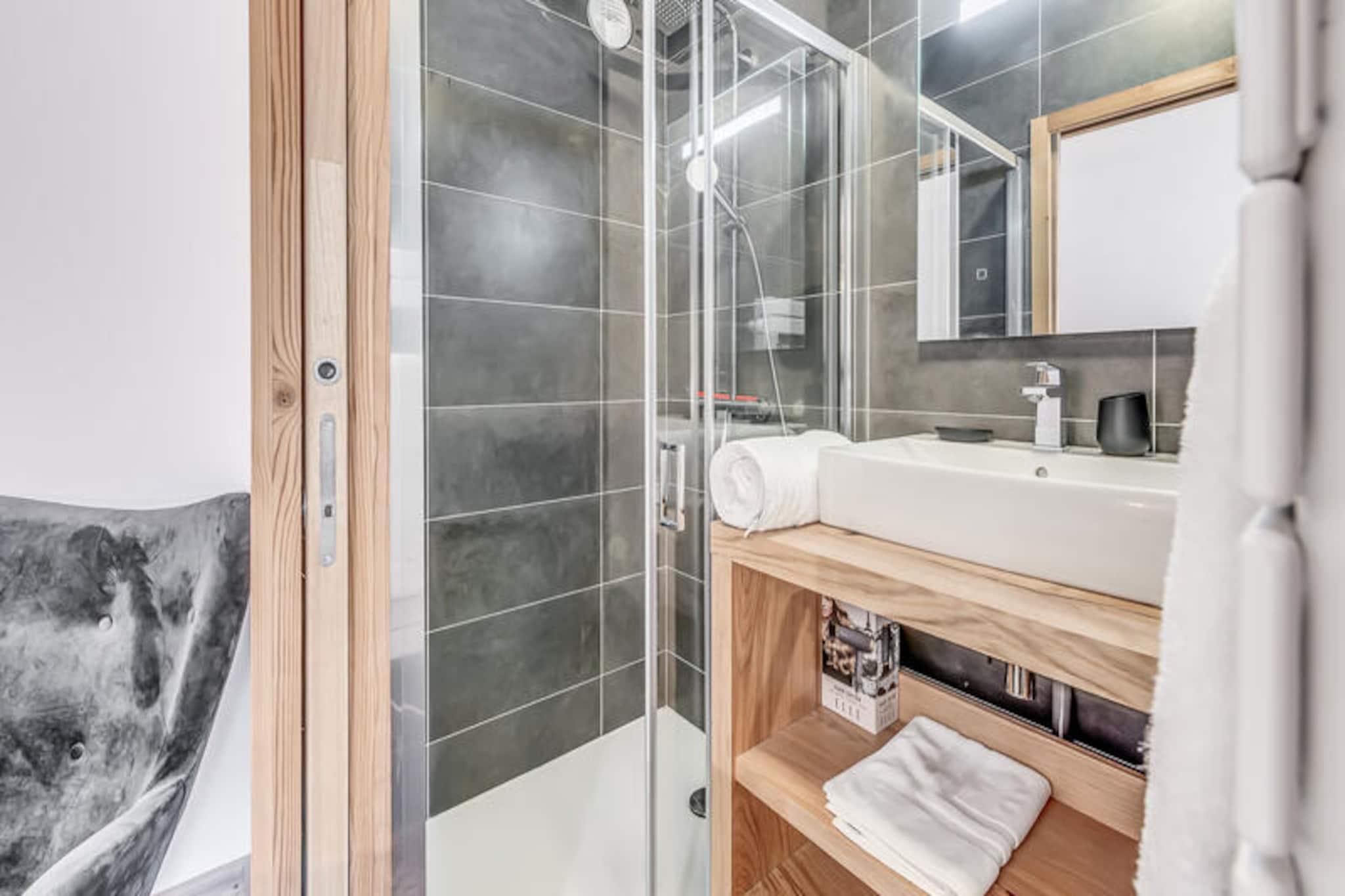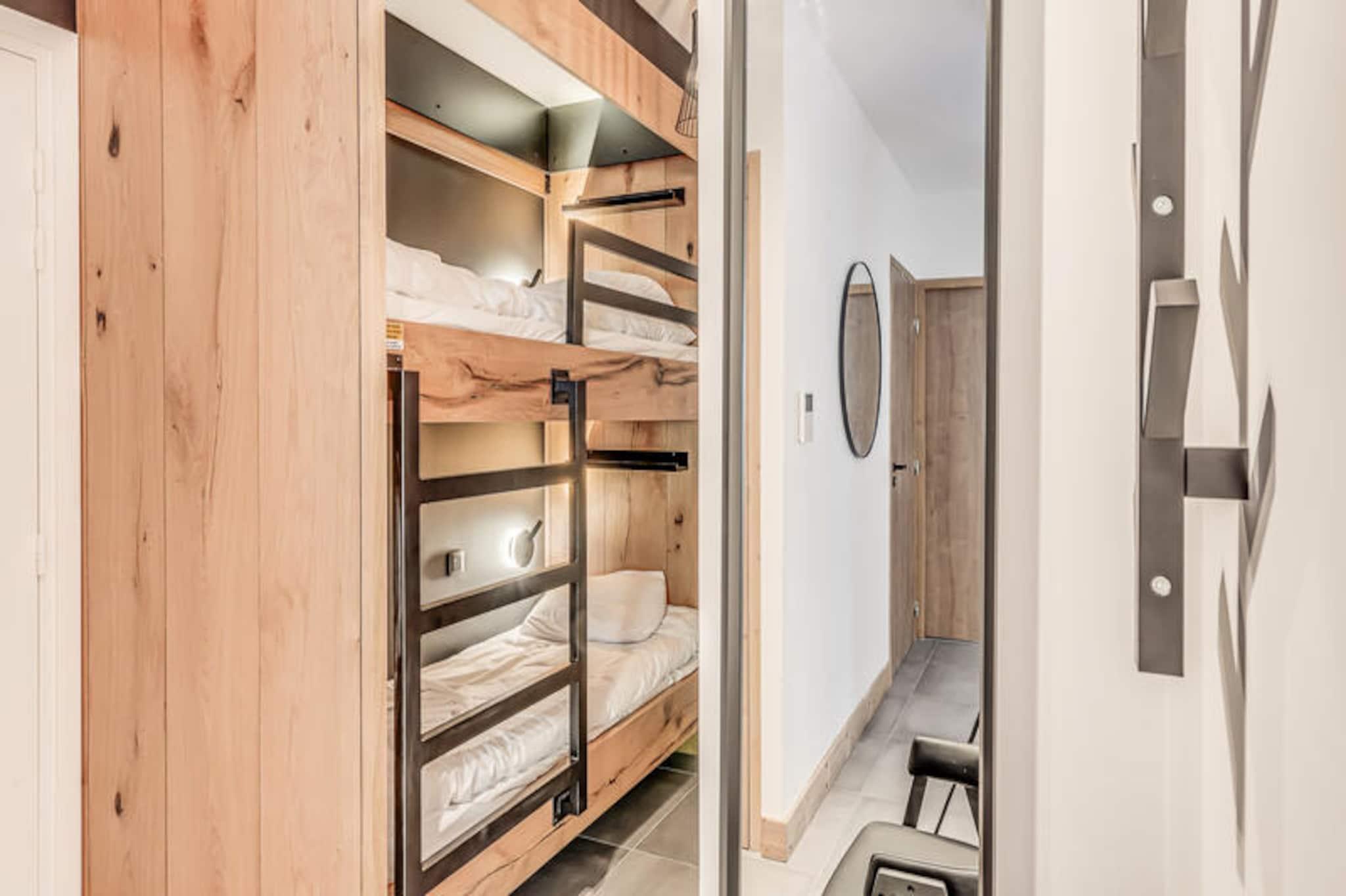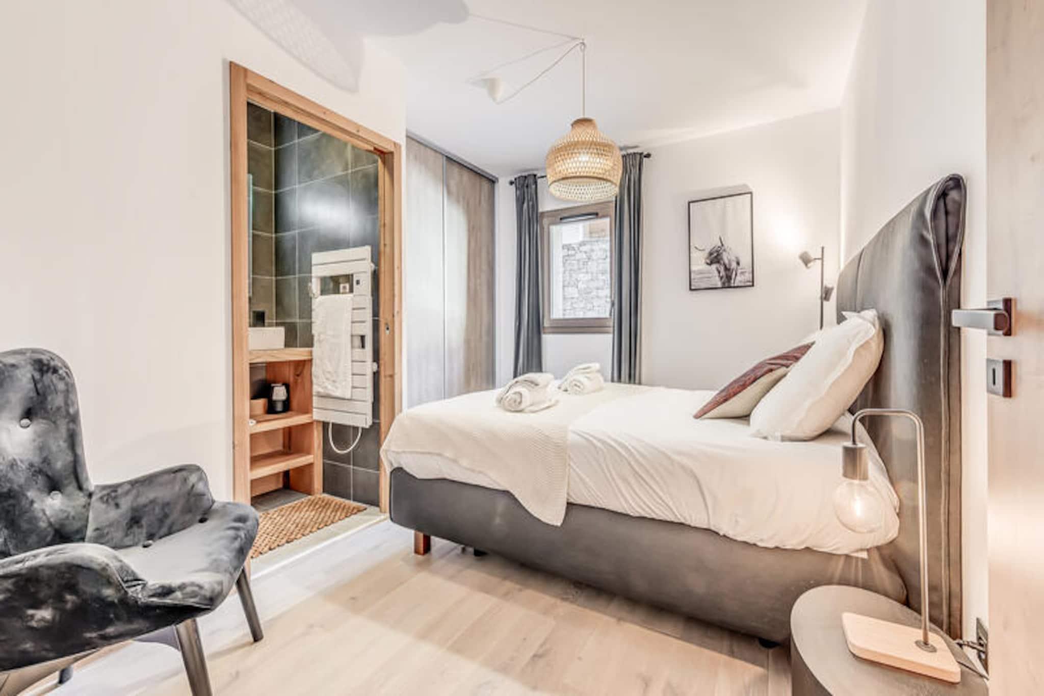 Denne moderne 3-værelses lejlighed er en del af en ny, elegant bolig med en fantastisk udsigt over Vanoise-bjergene. Med et rummeligt layout på 67 m² kan det komfortabelt rumme op til 6 gæster. Lejligheden har to soveværelser med dobbeltsenge, det ene med eget brusebad og et bjerghjørne med 2 køjesenge. Det er ikke-ryger og ikke kæledyrsvenligt, hvilket sikrer et fredeligt miljø for alle gæster. Faciliteterne inkluderer højhastigheds-WiFi, tv med internetadgang og et varmesystem for komfort året rundt. Beliggende kun 200 meter fra landsbyens centrum og skiløjperne, er denne lejlighed perfekt beliggende til både vinter- og sommeraktiviteter. Den gratis kommunale transportservice (50 meter væk) gør det bekvemt at udforske området, uanset om du er på vej til skilifterne eller den nærliggende swimmingpool og spa-center. Du kan også nemt få adgang til landsbyens butikker og caféer inden for gåafstand, hvilket sikrer et afslappende og behageligt ophold. Lejligheden har et fuldt udstyret køkken med induktionskomfur, køleskab med fryser og opvaskemaskine, hvilket gør det nemt at tilberede måltider. Badeværelset har badekar, håndklæderadiator, vaskeskab og vaskemaskine for ekstra bekvemmelighed. Stuen åbner ud til en terrasse, perfekt til at nyde den naturskønne udsigt over bjergene. Hoteltjenester såsom sengetøj, håndklæder og slutrengøring (ekskl. køkkenet) er inkluderet for din komfort.