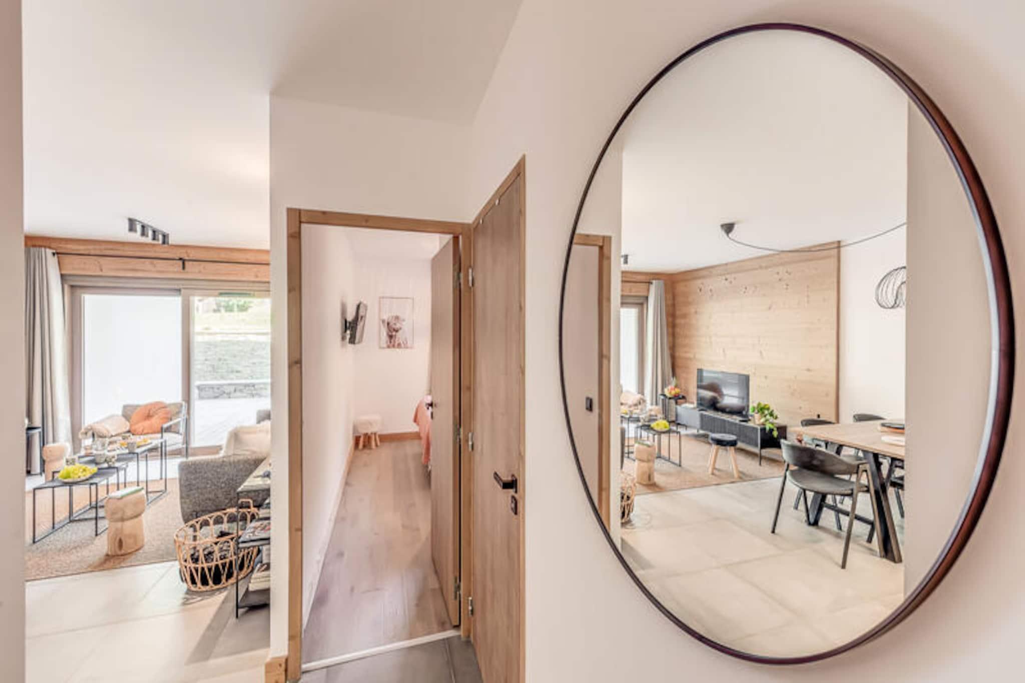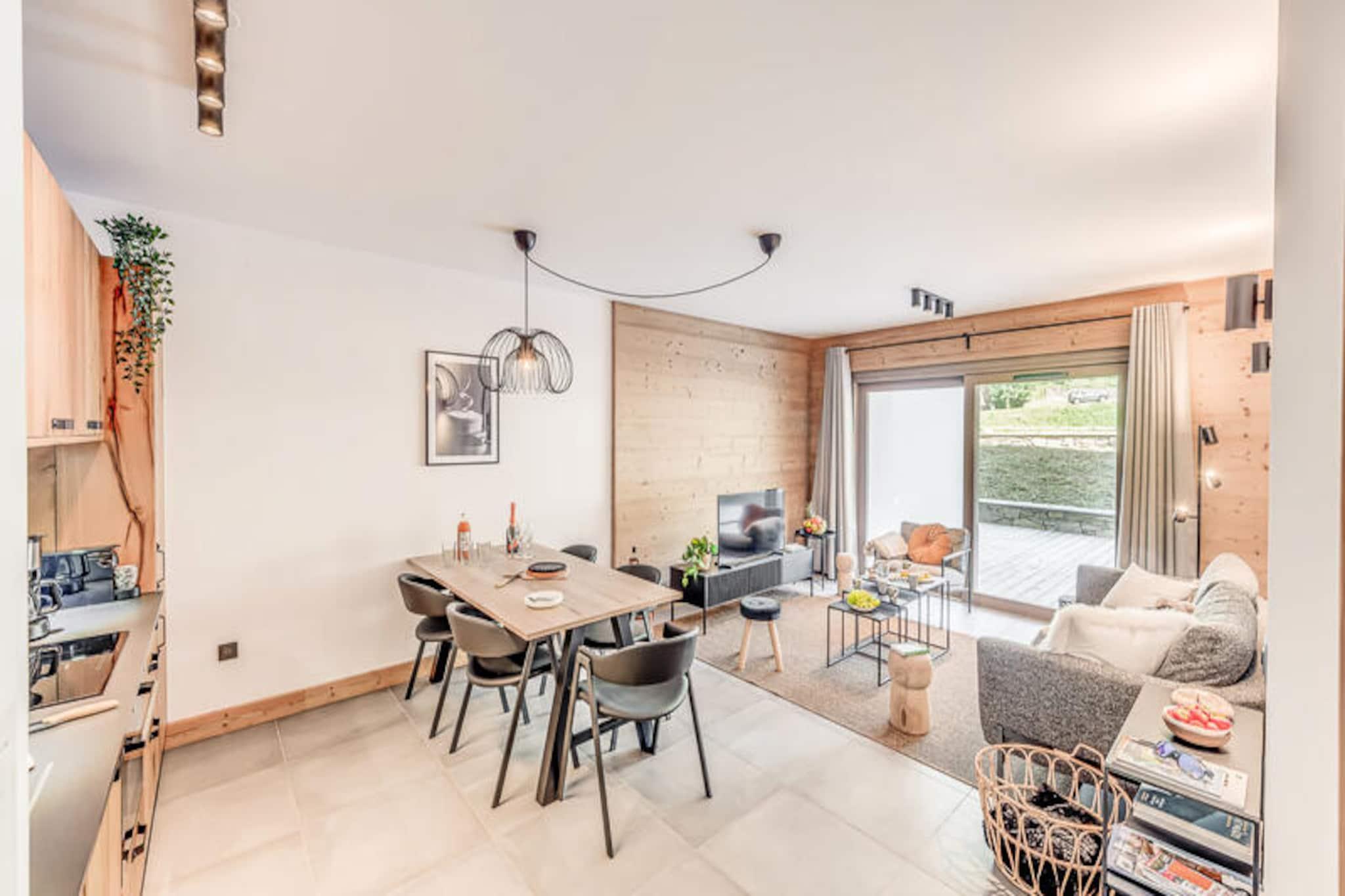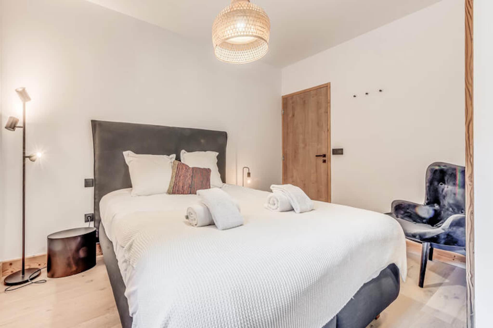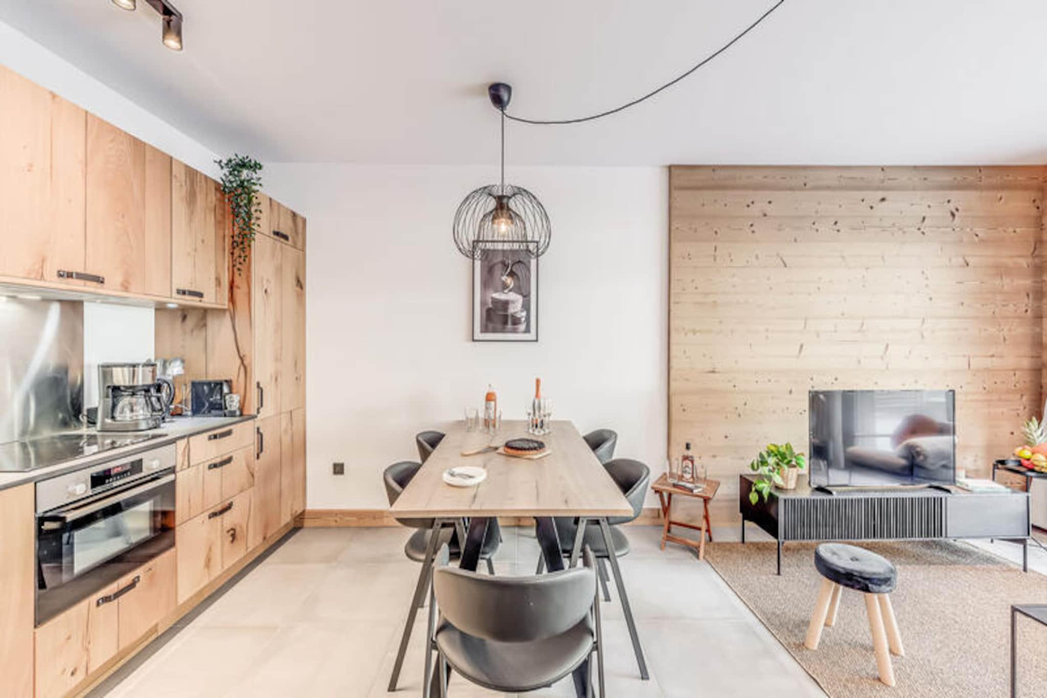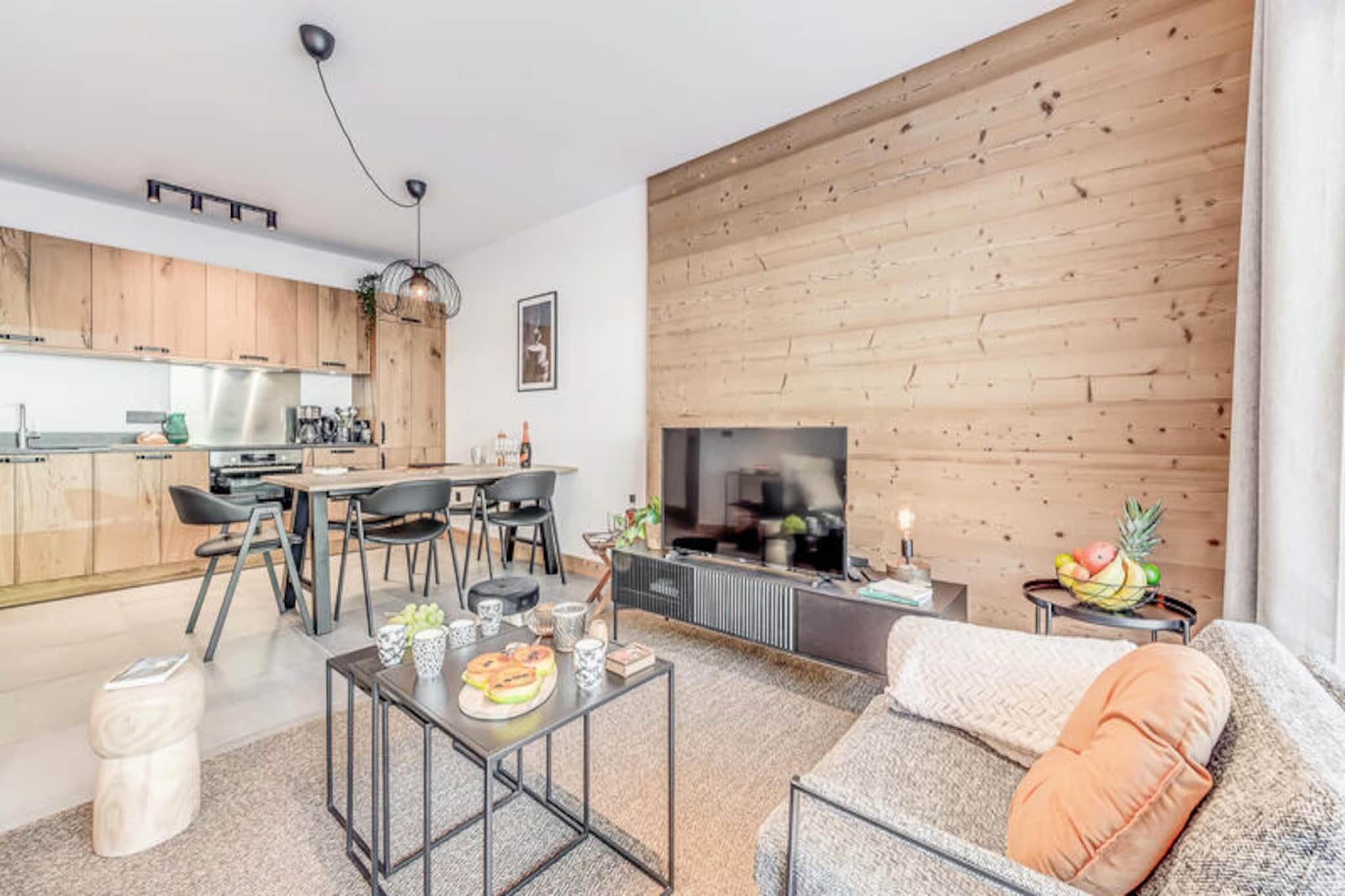 Denne moderne 3-værelses lejlighed er en del af en ny, elegant bolig med en fantastisk udsigt over Vanoise-bjergene. Med et rummeligt layout på 67 m² kan det komfortabelt rumme op til 6 gæster. Lejligheden har to soveværelser med dobbeltsenge, det ene med eget brusebad og et bjerghjørne med 2 køjesenge. Det er ikke-ryger og ikke kæledyrsvenligt, hvilket sikrer et fredeligt miljø for alle gæster. Faciliteterne inkluderer højhastigheds-WiFi, tv med internetadgang og et varmesystem for komfort året rundt. Beliggende kun 200 meter fra landsbyens centrum og skiløjperne, er denne lejlighed perfekt beliggende til både vinter- og sommeraktiviteter. Den gratis kommunale transportservice (50 meter væk) gør det bekvemt at udforske området, uanset om du er på vej til skilifterne eller den nærliggende swimmingpool og spa-center. Du kan også nemt få adgang til landsbyens butikker og caféer inden for gåafstand, hvilket sikrer et afslappende og behageligt ophold. Lejligheden har et fuldt udstyret køkken med induktionskomfur, køleskab med fryser og opvaskemaskine, hvilket gør det nemt at tilberede måltider. Badeværelset har badekar, håndklæderadiator, vaskeskab og vaskemaskine for ekstra bekvemmelighed. Stuen åbner ud til en terrasse, perfekt til at nyde den naturskønne udsigt over bjergene. Hoteltjenester såsom sengetøj, håndklæder og slutrengøring (ekskl. køkkenet) er inkluderet for din komfort.