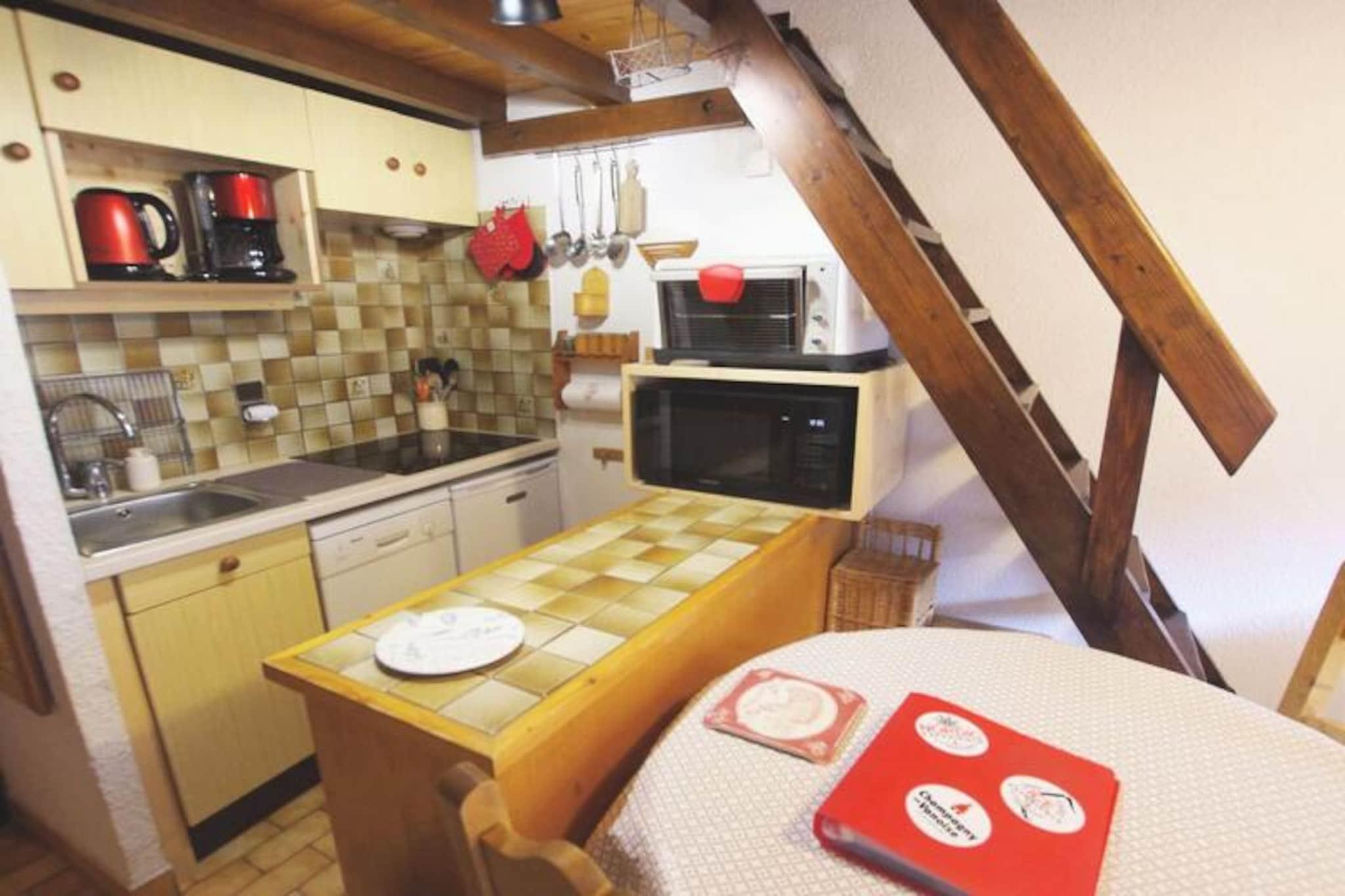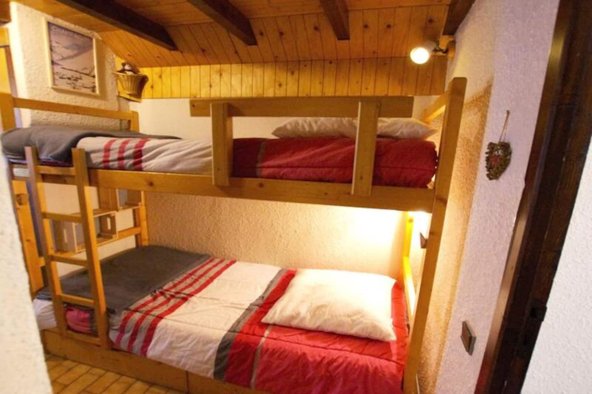 Denne charmerende lejlighed, ideel til op til 6 gæster, har en mezzanin og en fantastisk udsigt over landsbyen og Vanoise-gletsjerne. Det omfatter et nordvendt soveværelse med dobbeltseng og ovenlys samt et bjerghjørne med 2 køjesenge. Opholdsstuen er hyggelig med pejs, tv-stue og spisebord. Lejligheden har desuden altan/terrasse med havemøbler, der vender mod den solrige sydøstlige del. Mezzaninen tilbyder en ekstra dobbeltseng, perfekt til ekstra gæster, og giver en behagelig og afslappende atmosfære. Boligen er ideelt beliggende kun 100 meter fra gondolafgangen og ESF, hvilket gør den perfekt for skientusiaster. Landsbyens centrum ligger cirka 150 meter væk og byder på butikker, caféer og restauranter. Den panoramiske udsigt over landsbyen og Vanoise-gletsjerne er simpelthen betagende. Gæster kan nemt få adgang til pisterne og nyde charmen ved de omkringliggende enge, med hurtig biladgang til boligerne og parkering. Lejligheden har et fuldt udstyret køkken med moderne apparater, herunder en miniovn, mikroovn, køleskab, induktionskomfur og opvaskemaskine. Yderligere faciliteter omfatter et badeværelse med badekar og håndklæderadiator, et skiskab og privat overdækket parkering. Et behageligt, hjemligt sted, der er perfekt til en skiferie.