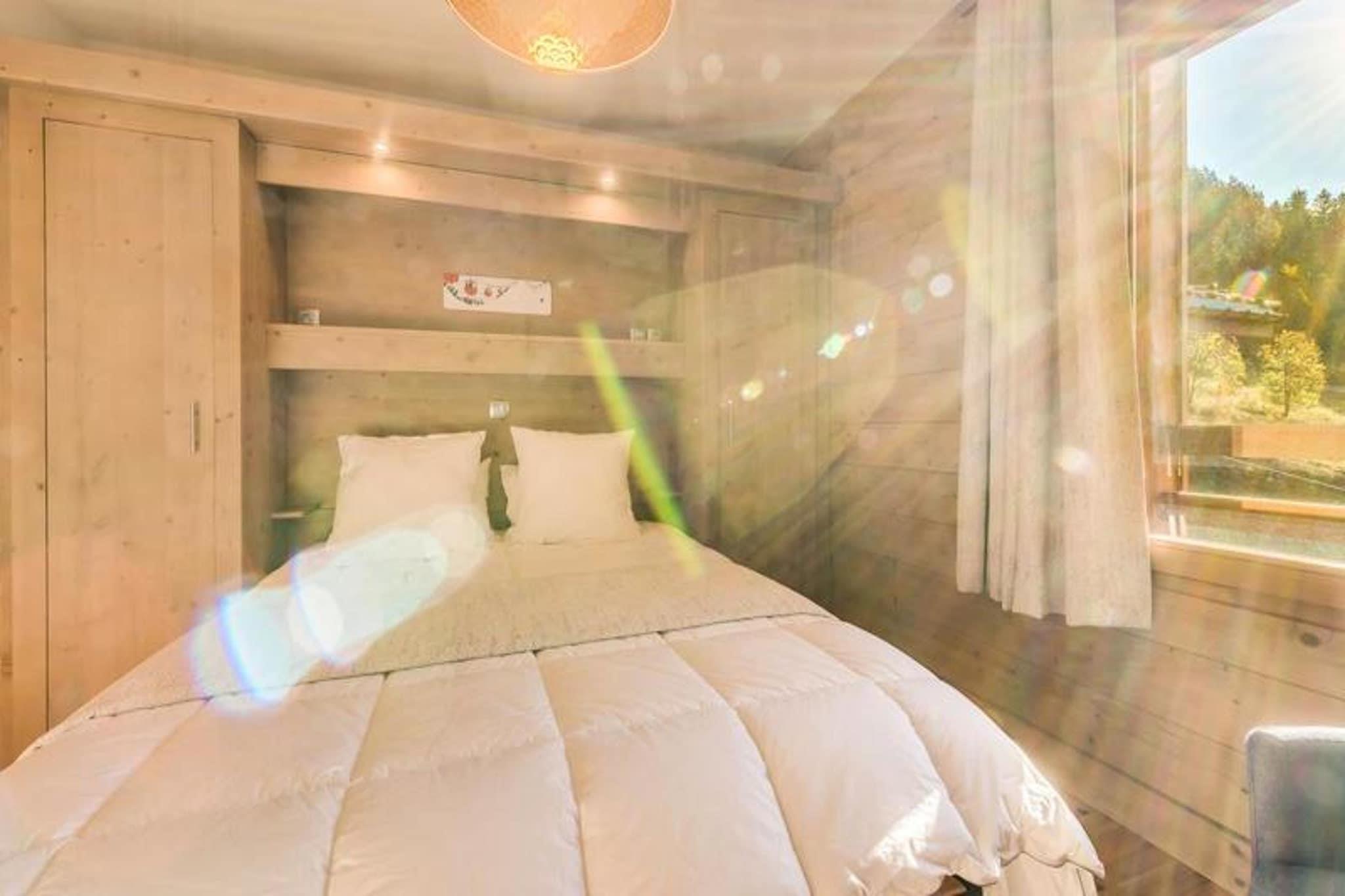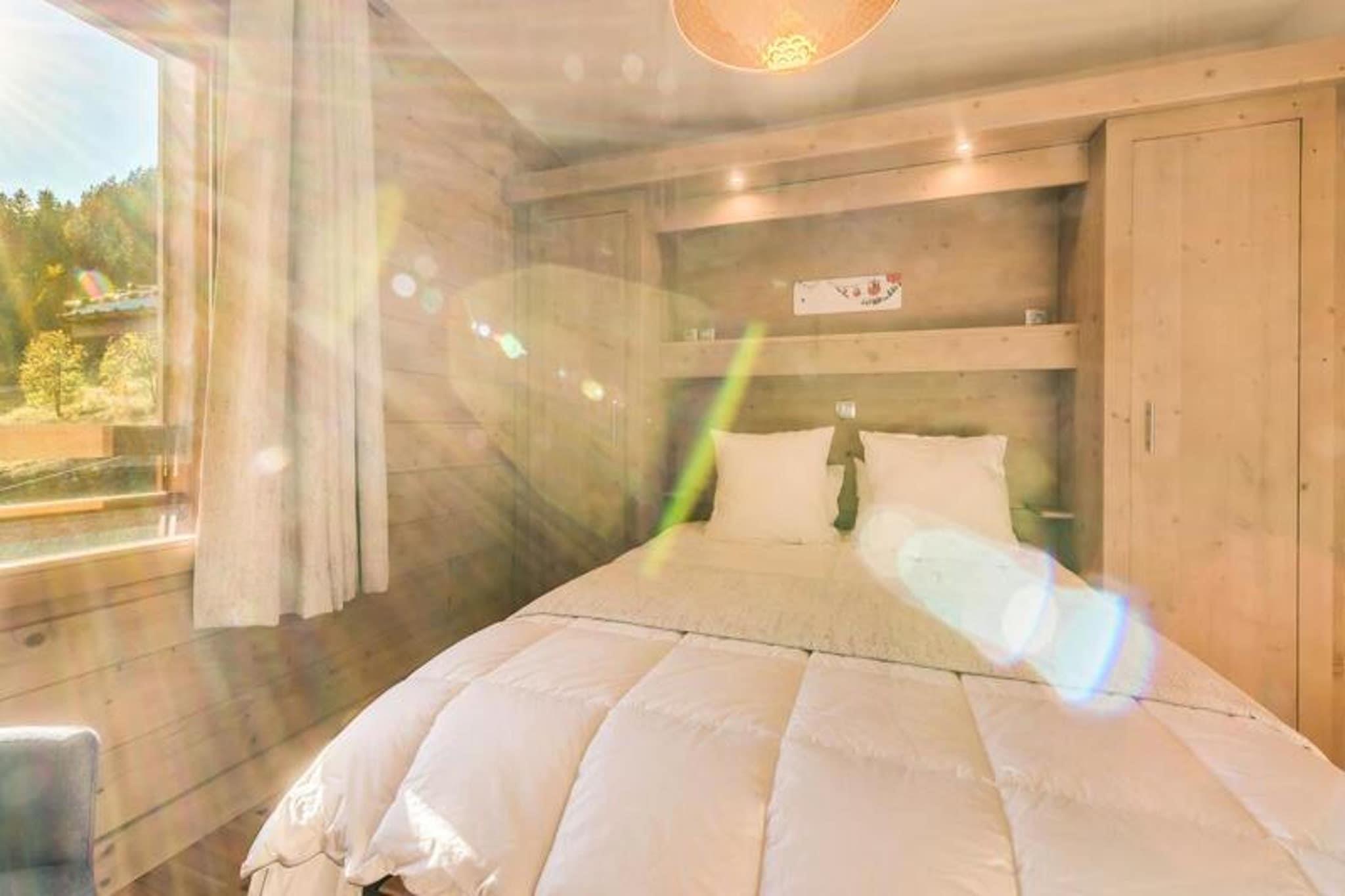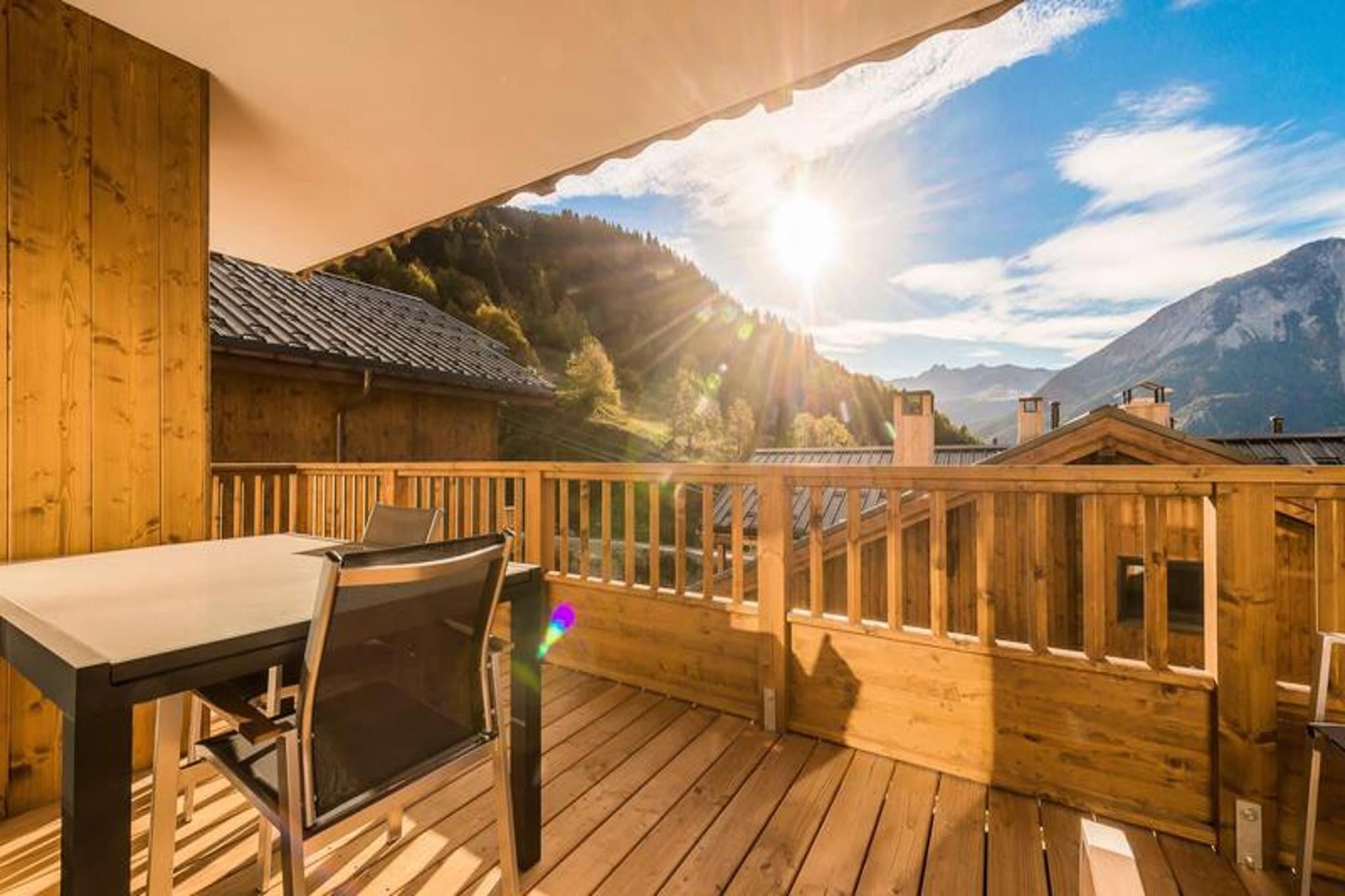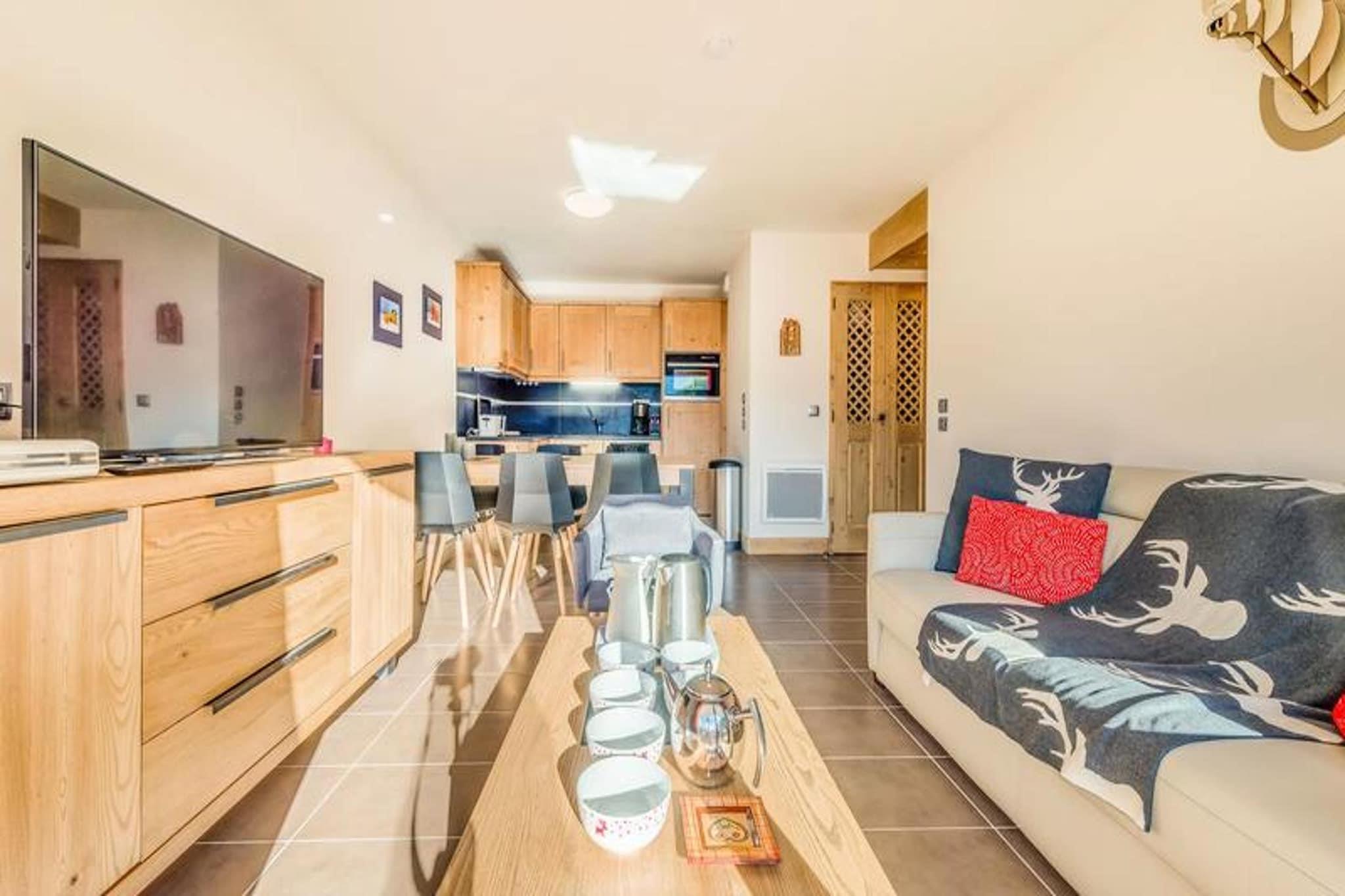 Denne rummelige lejlighed, som er en del af en hotelbolig med to hytter, tilbyder et behageligt ophold for op til 6 personer. Det har 2 soveværelser med dobbeltsenge, opholdsstue med sovesofa og 2 badeværelser. Nyd bekvemmeligheden ved et fuldt udstyret køkken med moderne apparater såsom en opvaskemaskine, Nespresso kaffemaskine og induktionskomfur. Lejligheden har en stor syd- og vestvendt altan med en fantastisk udsigt over landsbyen og Vanoise-bjergene. Wi-Fi, sengetøj, håndklæder og slutrengøring (undtagen køkkenet) er inkluderet i pakken. Boligen er ideelt beliggende, kun 20 meter fra gondolen og skiundervisning, hvilket giver nem adgang til pisterne. Hjertet af landsbyen og dens butikker ligger kun 100 meter væk, og tilbyder en række caféer, restauranter og lokale markeder. Det omkringliggende område er perfekt til at stå på ski og udforske Alpernes naturlige skønhed. Yderligere faciliteter omfatter en vaskemaskine-tørretumbler, skiskab og et badeværelse med både bruser og badekar. For familier er en barneseng og høj stol til rådighed efter anmodning. Denne lejlighed er ikke-ryger, og kæledyr er ikke tilladt, hvilket sikrer et fredeligt ophold.
