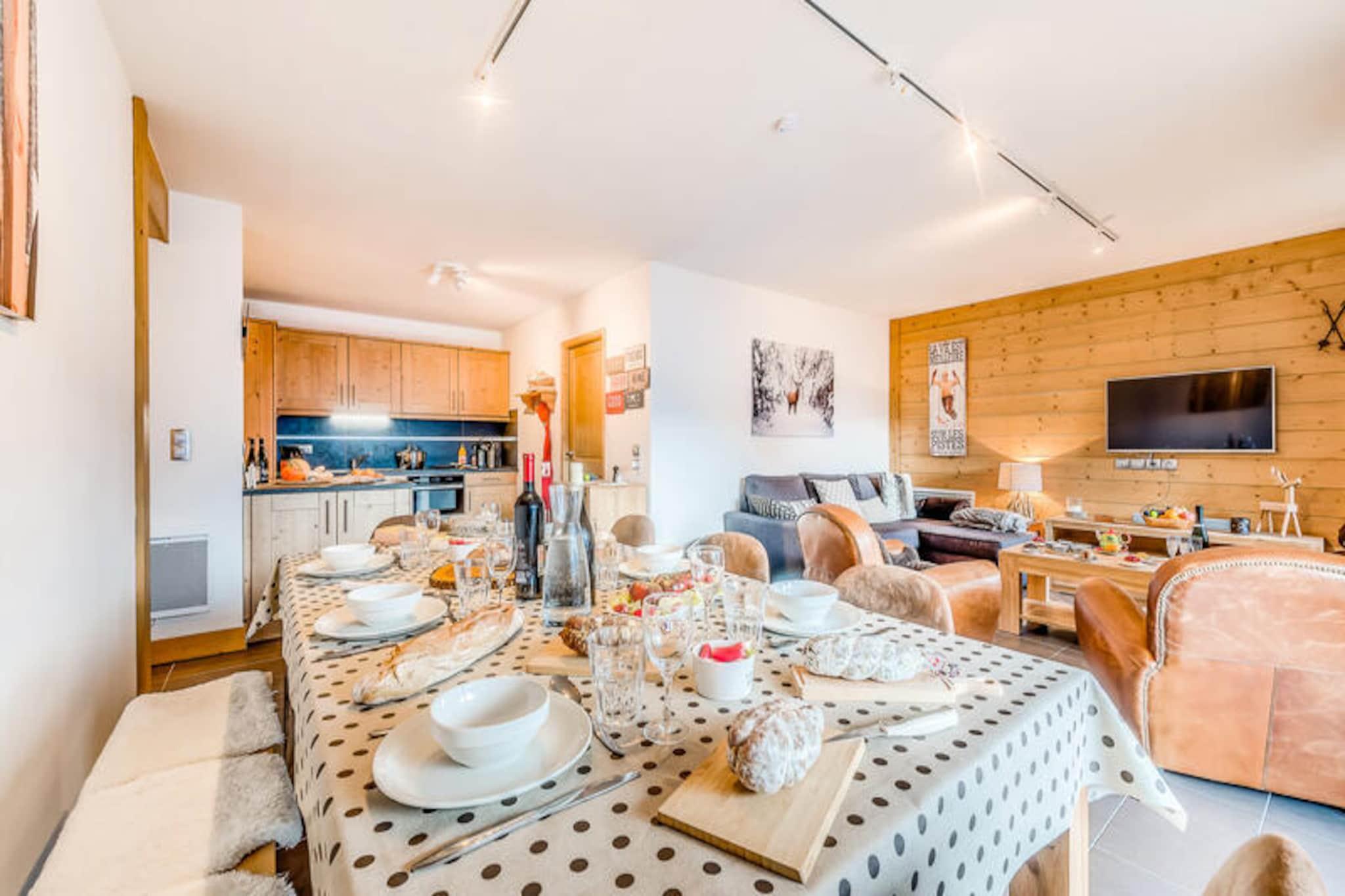 Denne rummelige lejlighed p? 93 m², beliggende i en charmerende hotelresidens, kan komfortabelt rumme op til 8 personer. Den har 3 sovev?relser: 2 med dobbeltsenge (160x200), og 1 med 2 k?jesenge, en enkeltseng og skuffeseng. Lejligheden indeholder 2 badev?relser med toilet, stor stue med spiseplads samt m?bleret sydvendt altan med panoramaudsigt. Ejendommen er ikke-ryger, og k?ledyr er ikke tilladt. Senget?j og h?ndkl?der leveres, med senge allerede redt ved ankomsten. Ejendommen er ideelt beliggende kun 20 meter fra gondolliften og skiskolen, perfekt for skientusiaster. Det er ogs? 100 meter fra butikker, caf?er og hjertet af landsbyen, der tilbyder nem adgang til lokale faciliteter og afterski-aktiviteter. Du vil nyde en betagende udsigt over landsbyen og Vanoise Massifs fra lejlighedens store balkon. Lejligheden er udstyret med et fuldt funktionelt k?kken, herunder k?leskab, kombineret ovn, keramisk kogeplade, opvaskemaskine, Nespresso kaffemaskine, elkedel og br?drister. Yderligere faciliteter omfatter en vaskemaskine/t?rretumbler, tv med dvd-afspiller og gratis tr?dl?s internetadgang. For familier er valgfrie tjenester s?som babysenge og stole tilg?ngelige. Boligen har ogs? et skiskab, hvilket sikrer bekvemmelighed for vintersportsentusiaster.