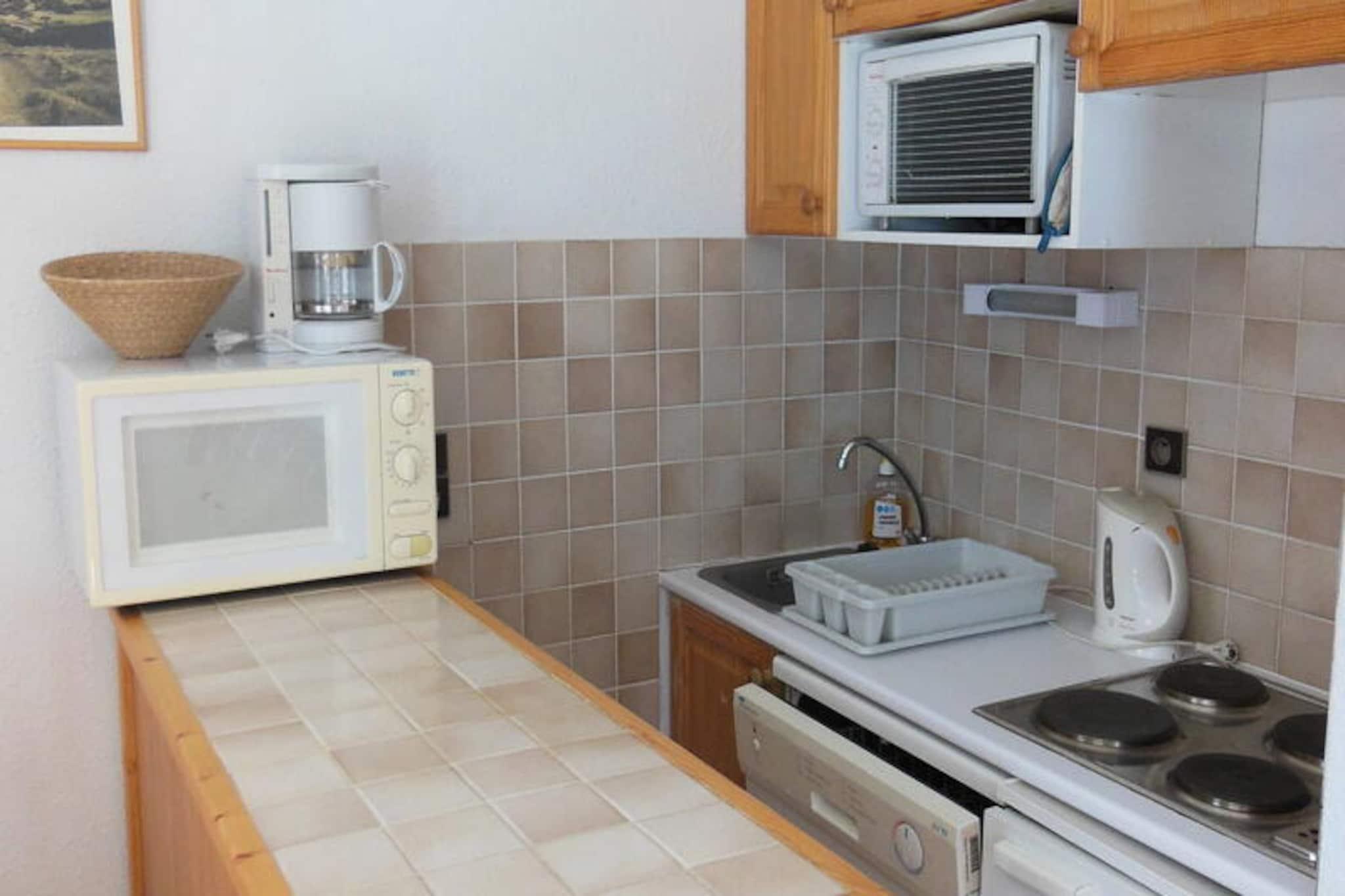 Denne hyggelige lejlighed p? 36 m² er designet til at rumme op til 6 personer, og har et sovev?relse med dobbeltseng og et lille kabineomr?de med to k?jesenge. I stuen er der en sovesofa til to, hvilket giver rigelig plads til familier eller grupper. Lejligheden er ikke k?ledyrsvenlig, medmindre der betales et till?g. Stuen ?bner ud til en stor hj?rnebalkon med en fantastisk, uhindret udsigt over landsbyen og bjergene. Hver bolig har et skiskab i stueetagen. For nemheds skyld er der ekstra tjenester s?som Wi-Fi og babyudstyr til r?dighed mod et gebyr. Beliggende kun 200 meter fra landsbyens centrum, tilbyder boligen nem adgang til butikker, restauranter og gondolen sammen med ESF-skiskolen. Landsbyen byder p? en blanding af lokale markeder, caf?er og aktiviteter, hvilket g?r den til en ideel base for b?de skil?b og udforskning af omr?det. Bes?gende kan nyde de fredelige omgivelser og en charmerende udsigt over landsbyen fra lejlighedens balkon, perfekt til afterski-afslapning. Lejligheden har et fuldt udstyret tek?kken med k?leskab, ovn, mikroovn, opvaskemaskine og v?sentlige redskaber. Spiseomr?det er et behageligt sted for m?ltider. Brusebadet og separat toilet ?ger bekvemmeligheden for g?sterne. Yderligere tjenester, s?som slutreng?ring og leje af lagner, er tilg?ngelige mod et ekstra gebyr.