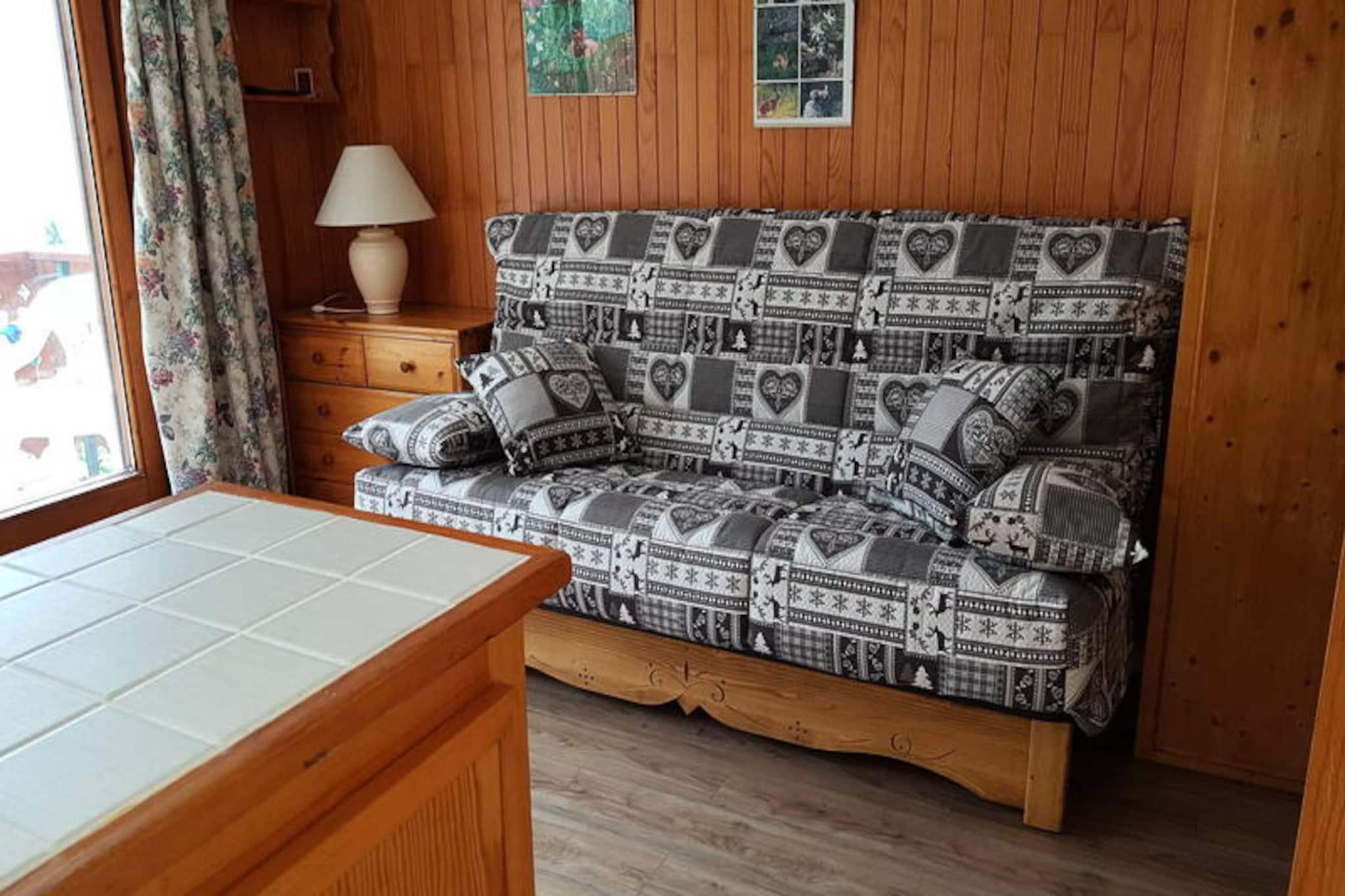 Denne charmerende lejlighed i en rolig bolig tilbyder et hyggeligt tilflugtssted for op til 6 g?ster. Indretningen omfatter et sovev?relse med en dobbeltseng og et opholdsomr?de med en sovesofa til 2. Indgangen har k?jesenge, perfekt til familier. Lejligheden er k?ledyrsvenlig med et till?gsgebyr for k?ledyr og har en sydvendt balkon med en fantastisk udsigt. Der er skiopbevaring, og ejendommen er r?gfri. Denne lejlighed ligger kun 200 meter fra landsbyens centrum, t?t p? butikker, caf?er og udgangspunktet for gondol- og skiundervisning. Boligen tilbyder nem adgang til landsbyens attraktioner og tjenester, hvilket g?r den ideel for dem, der s?ger b?de afslapning og eventyr i bjergene. Lejligheden har et fuldt udstyret tek?kken med ovn, mikroovn, k?leskab, opvaskemaskine, elektriske kogeplader, kaffemaskine, br?drister og kedel. Der er ogs? et brusebad og separat toilet. Yderligere tjenester s?som Wi-Fi, slutreng?ring og leje af senget?j er tilg?ngelige mod et ekstra gebyr. Boligen omfatter ogs? en elevator og et skiskab.