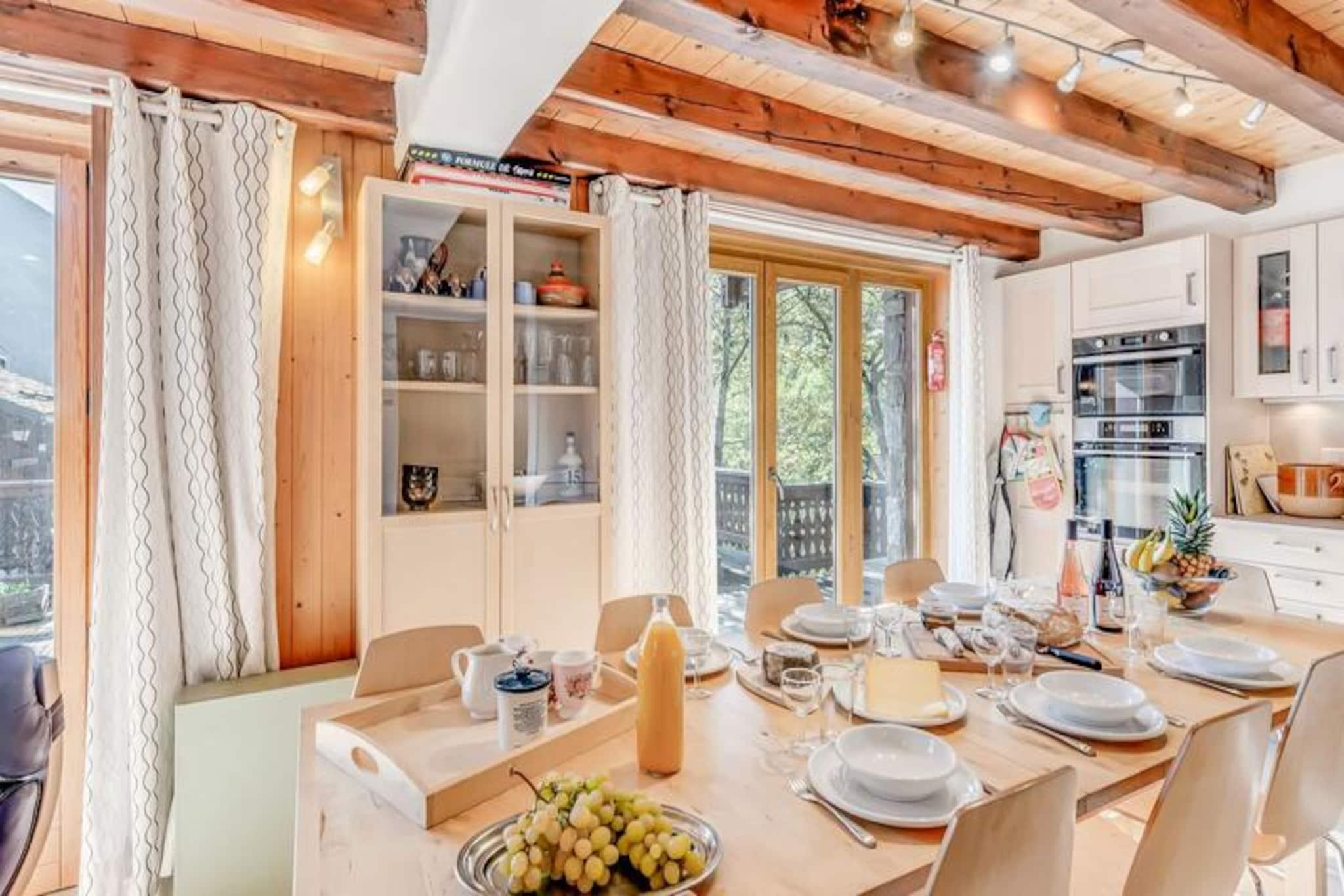 Denne rummelige 7-værelses chalet kan rumme op til 12 personer og tilbyder rigelig plads til familie- eller gruppeferier. Det omfatter 4 soveværelser, hver indrettet med komfortable dobbeltsenge eller køjesenge, og har 3 moderne badeværelser med brusere, toiletter og håndvaske. Kæledyr er ikke tilladt, og et depositum på EURO3000 er påkrævet. Hytten er ikke-ryger, hvilket giver et behageligt og afslappende miljø. Hytten har en stor terrasse med en fantastisk panoramaudsigt over de omkringliggende bjerge, herunder Pralognan-gletsjerne og Courchevel-landsbyerne. Hytten er ideelt beliggende 800 meter fra landsbyens centrum af Champagny, hvor gæsterne kan finde forskellige butikker, restauranter og gondolen samt ESF-skiskolen. I vintersæsonen er en gratis shuttle-service tilgængelig, hvilket gør transport bekvemt og nemt uden at skulle bruge en bil. Det omkringliggende område er perfekt til udendørs aktiviteter som skiløb, vandreture og udforskning af det betagende landskab. Hytten tilbyder et fuldt udstyret køkken med moderne apparater, herunder en ovn, mikroovn, køleskab med fryser, opvaskemaskine og elektrisk kaffemaskine. De rummelige opholds- og spiseområder er designet til komfort og byder på pejs, sofaer og et karnapvindue, der fører til balkonen. Yderligere faciliteter omfatter en privat garage, et vaskerum med vaskemaskine, tørretumbler og strygefaciliteter. Gratis Wi-Fi, barnestol og seng samt sengetøj og håndklæder er inkluderet for din bekvemmelighed.
