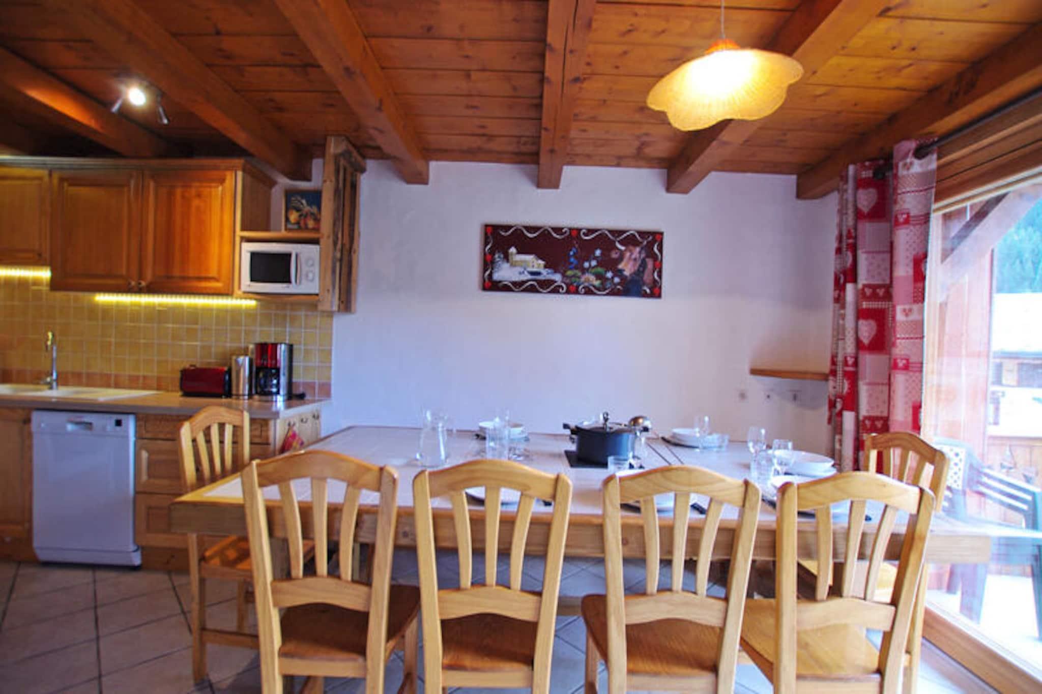 Denne rummelige triplex lejlighed i en stor selvst?ndig hytte kan rumme op til 12 g?ster, hvilket g?r den ideel til familier eller grupper. Lejligheden har en privat garage i stueetagen, med de vigtigste opholdsomr?der p? f?rste, anden og tredje sal. P? f?rste sal finder du et ?bent k?kken med moderne h?rde hvidevarer, en spiseplads og en hyggelig stue med sofaer og fjernsyn. En sydvendt altan giver dig mulighed for at nyde den fantastiske udsigt over bjergene. Lejligheden er ikke-ryger og tillader ikke k?ledyr. Denne bolig ligger omkring 500 meter fra landsbyens centrum og tilbyder nem adgang til butikker, caf?er og restauranter samt pisterne. En gratis shuttle-stop i n?rheden i vinters?sonen tilf?jer bekvemmelighed for skil?bere. Boligen giver en smuk udsigt over de omkringliggende bjerge, hvilket sikrer et fredeligt og natursk?nt milj? til afslapning efter en dag med aktiviteter. Det fuldt udstyrede k?kken omfatter k?leskab med fryser, ovn, mikroovn, opvaskemaskine, elektrisk kaffemaskine, br?drister og kedel. Lejligheden har ogs? 2 bruserum, 3 toiletter og 6 komfortable sovev?relser, herunder 4 dobbeltsenge og 2 s?t k?jesenge. G?sterne kan nyde gratis Wi-Fi, senget?j, h?ndkl?der og slutreng?ring (undtagen k?kkenet). En babyseng og en stol er til r?dighed, og der kr?ves et depositum ved indtjekning.