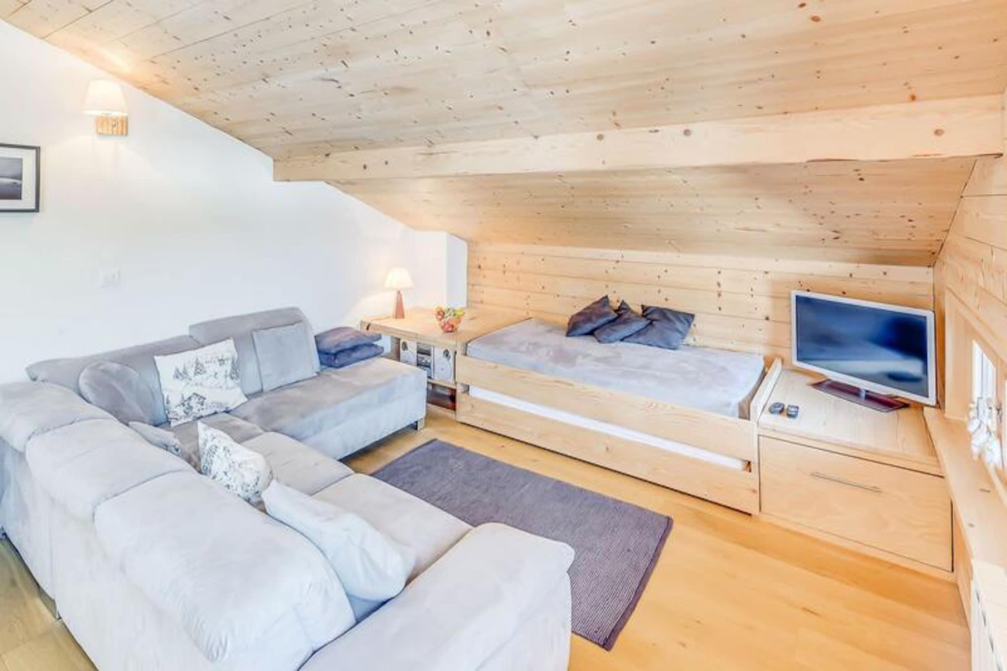 Beliggende kun 400 meter fra landsbyens centrum og gondolens afgangssted, kan denne rummelige 4-værelses lejlighed komfortabelt rumme op til 8 gæster. Ejendommen omfatter tre soveværelser: en mastersuite med en dobbeltseng og et eget brusebad, et andet soveværelse med en dobbeltseng og et tredje soveværelse med to udtrækssenge, der kan indrettes til at sove fire. Lejligheden er ikke-ryger og tillader ikke kæledyr. Sengetøj og håndklæder leveres, og sengene er redt ved ankomsten. Boligen tilbyder rolige og komfortable omgivelser med en fantastisk udsigt over det omkringliggende område. Landsbyens centrum, butikker og svævebaneafgang er en kort 500-meter gåtur væk, mens en gratis shuttle-stop er bekvemt placeret på den anden side af gaden i vintermånederne. Lejligheden vender både mod syd og nord, hvilket sikrer fremragende sollys hele dagen, med en stor terrasse tilgængelig fra master suite. Indvendigt har lejligheden en lys og rummelig stue med komfortable siddepladser, et sofabord og et fladskærms-tv. Det åbne køkken er fuldt udstyret, og spisepladsen er placeret ved de sydvendte vinduer, perfekt til at nyde måltider med udsigt. Yderligere faciliteter omfatter en vaskemaskine-tørretumbler, et badeværelse med toilet og et separat toilet. Gæsterne har også adgang til skiopbevaring med en skotørrer radiator for nemheds skyld.