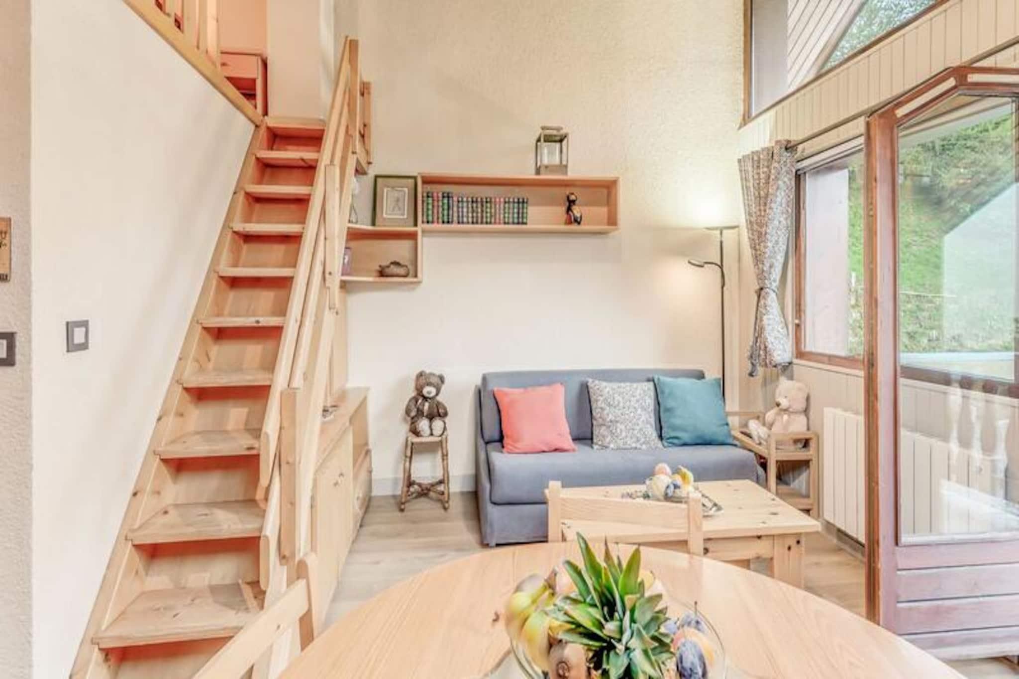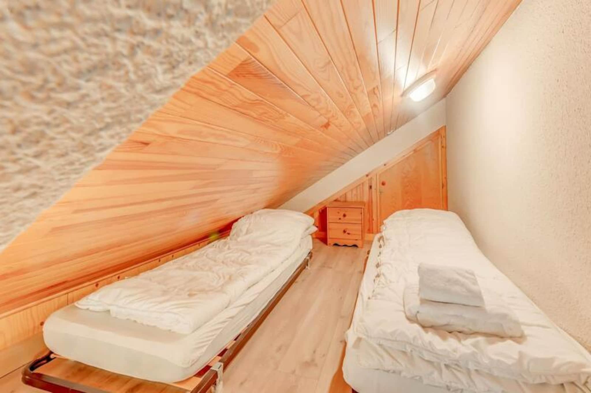 Denne moderne og indbydende lejlighed er det perfekte tilflugtssted for op til seks gæster, beliggende på 4. sal i en bolig i hjertet af en pulserende bjerglandsby. Med et hyggeligt soveværelse med en dobbeltseng, en mezzanin med to enkeltsenge og et praktisk bjerghjørne med en forhøjet enkeltseng, henvender denne ejendom sig til både familier og grupper. En dobbelt sovesofa i stuen tilføjer ekstra soveplads. Nyrenoveret, badeværelset indeholder bruseniche og håndklæderadiator. Hver gæst kan nyde varmen fra dyner og frisk linned til et afslappende ophold. Bemærk, at kæledyr ikke er tilladt, og lejligheden er strengt røgfri. Perfekt beliggende for skientusiaster, lejligheden tilbyder direkte adgang til gondolen og ESF skiskole, som ligger kun få meter væk. Nyd den livlige atmosfære på landsbytorvet med dens travle butikker og lokale caféer, alle inden for nem gåafstand. Den sydvendte balkon giver en fantastisk udsigt over pladsen og de omkringliggende bjerge, og tilbyder det ideelle sted til afslapning efter en dag med udforskning eller skiløb. Lejligheden er udstyret med et moderne køkken med hvidevarer såsom opvaskemaskine, vaskemaskine, ovn, mikroovn og køleskab, hvilket sikrer bekvemmelighed under dit ophold. En hyggelig spise- og opholdsstue med tv og adgang til altan gør det nemt at slappe af. Yderligere faciliteter omfatter skiopbevaring og en elevator for ubesværet adgang. Denne bolig tilbyder en sømløs blanding af komfort og beliggenhed for en uforglemmelig ferie i bjergene.