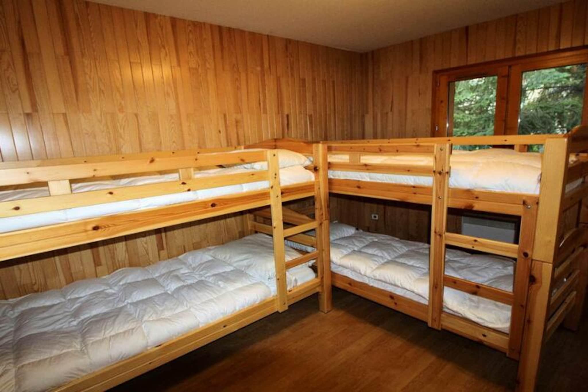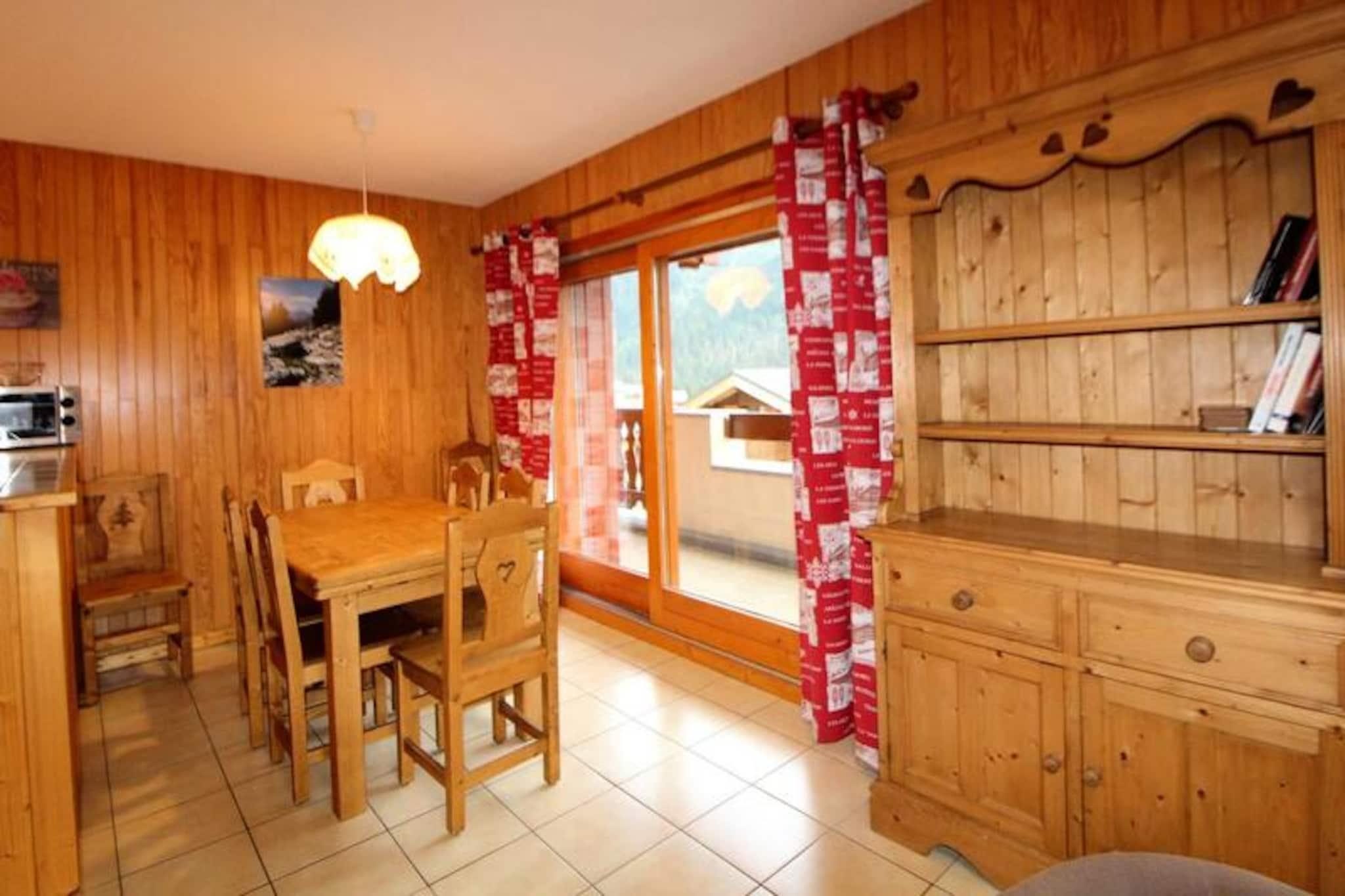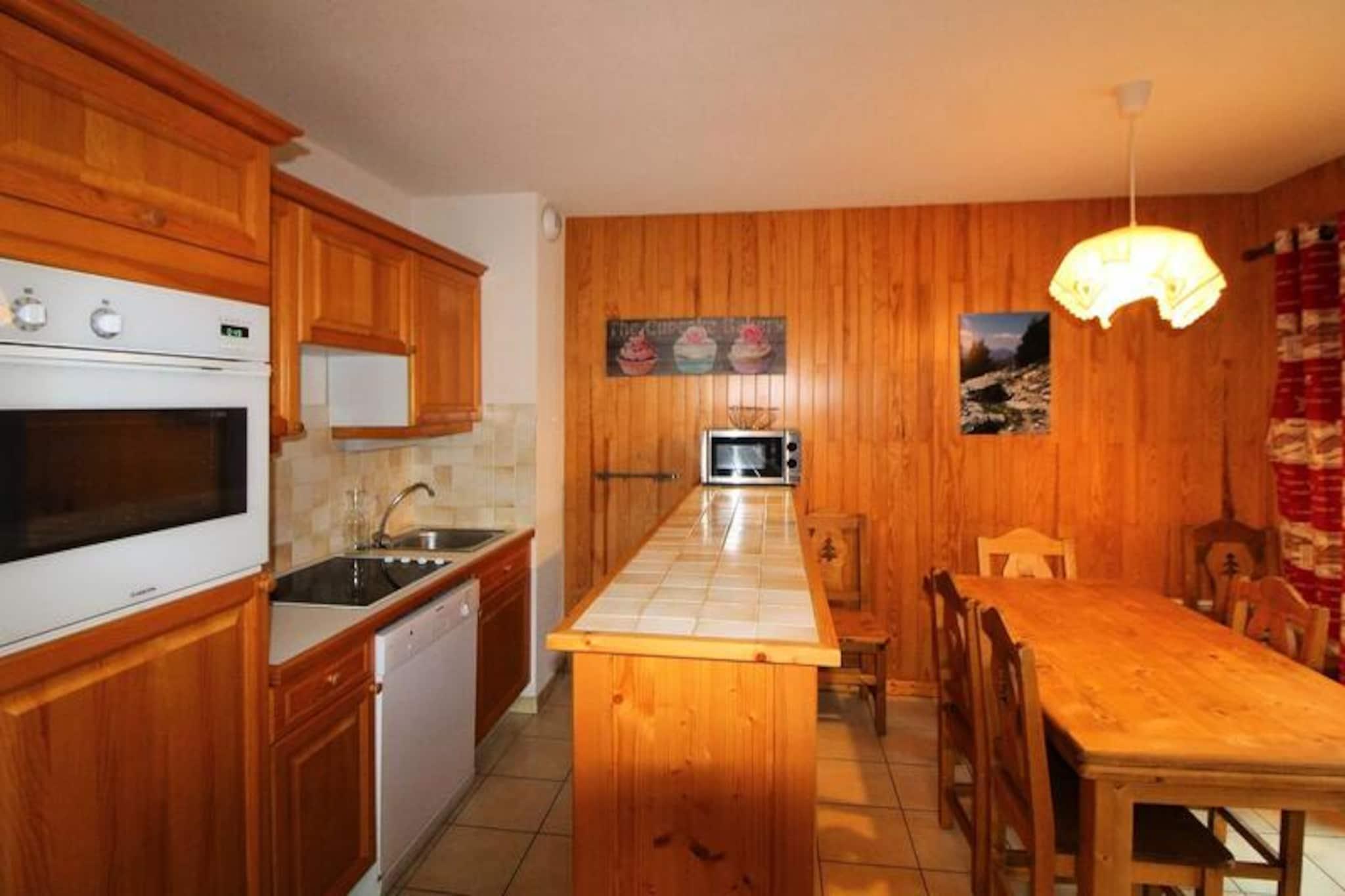 This spacious 65m² apartment is perfect for families or groups, comfortably accommodating up to 8 people. It features a large bedroom with two sets of bunk beds, a smaller children's room with a bunk bed, and a master bedroom with a double bed. Each room is equipped with duvets, and the master bedroom has access to a south-facing balcony. The apartment also includes a spacious living area with a lounge, dining space, and a fully equipped kitchen. This property is pet-friendly for an additional fee of EURO50, making it a great choice for those traveling with pets. A free Wi-Fi connection is also available for guest use. Located just 250 meters from the village center, this apartment is ideally positioned for easy access to nearby shops, cafes, and restaurants. The gondola and the ESF ski school are also just a short walk away, making this an excellent choice for those looking to enjoy skiing or snowboarding. The surrounding area offers breathtaking views of the mountains, perfect for outdoor enthusiasts. The apartment features a well-equipped kitchen, complete with a fridge, microwave, oven, dishwasher, and a four-burner stovetop. A separate bathroom with a bathtub, a shower, and a separate toilet ensure comfort and convenience. A washing machine is available for use, and a large west-facing terrace with garden furniture offers a great spot to unwind after a day of activities.