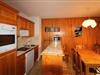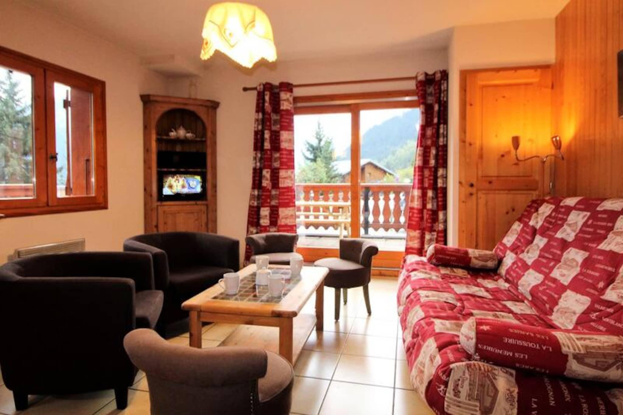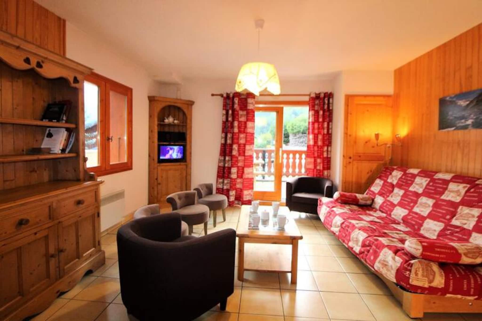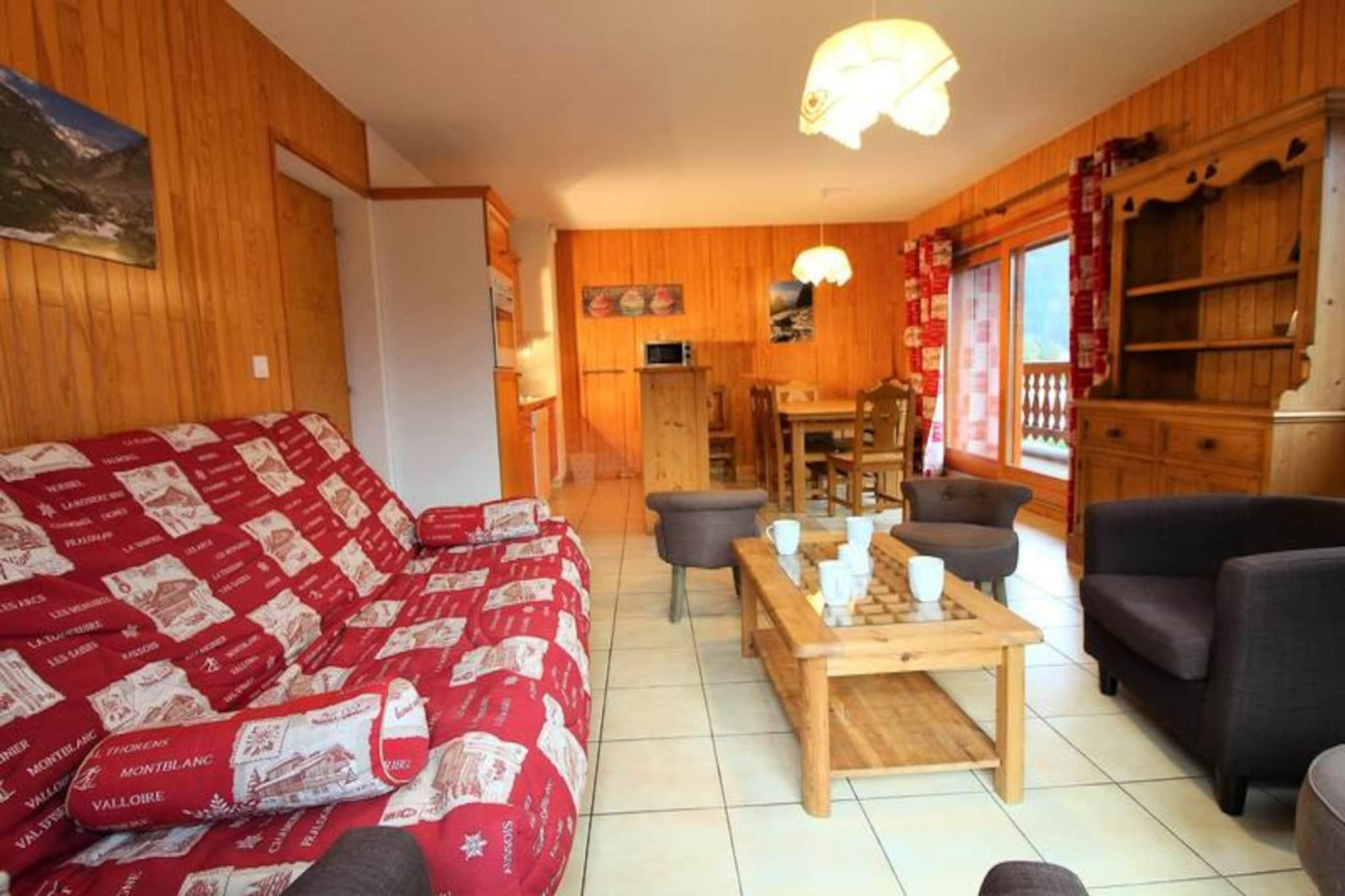 This spacious 65m² apartment is perfect for families or groups, comfortably accommodating up to 8 people. It features a large bedroom with two sets of bunk beds, a smaller children's room with a bunk bed, and a master bedroom with a double bed. Each room is equipped with duvets, and the master bedroom has access to a south-facing balcony. The apartment also includes a spacious living area with a lounge, dining space, and a fully equipped kitchen. This property is pet-friendly for an additional fee of EURO50, making it a great choice for those traveling with pets. A free Wi-Fi connection is also available for guest use. Located just 250 meters from the village center, this apartment is ideally positioned for easy access to nearby shops, cafes, and restaurants. The gondola and the ESF ski school are also just a short walk away, making this an excellent choice for those looking to enjoy skiing or snowboarding. The surrounding area offers breathtaking views of the mountains, perfect for outdoor enthusiasts. The apartment features a well-equipped kitchen, complete with a fridge, microwave, oven, dishwasher, and a four-burner stovetop. A separate bathroom with a bathtub, a shower, and a separate toilet ensure comfort and convenience. A washing machine is available for use, and a large west-facing terrace with garden furniture offers a great spot to unwind after a day of activities.