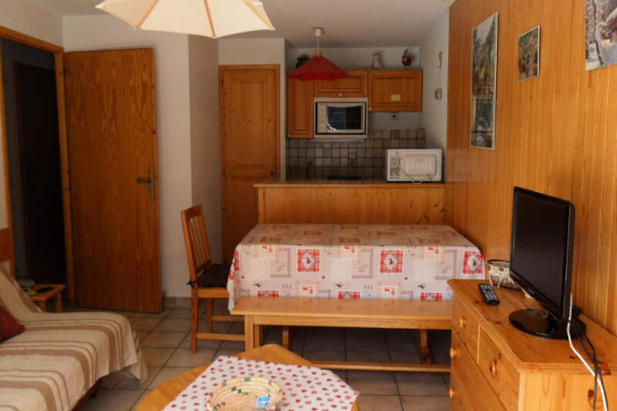 Denne hyggelige 2-værelses lejlighed, beliggende på 2. sal i en charmerende bolig, kan komfortabelt rumme op til 6 gæster. Lejligheden har et soveværelse med dobbeltseng og et soveværelse med to køjesenge, ideelt til familier eller grupper. Opholdsområdet omfatter en sovesofa til 2, der giver ekstra soveplads. Lejligheden er udstyret med væsentlige faciliteter, herunder et badeværelse med badekar, separate toiletter, en vaskemaskine og et tekøkken med elektrisk kogeplade, køleskab, ovn, mikroovn og opvaskemaskine. Der er også fjernsyn til underholdning. Alle lejligheder er kæledyrsfri og ikke-ryger. Boligen er ideelt placeret, kun 250 meter fra landsbyens centrum, hvor du vil finde forskellige butikker, restauranter og gondolliften for nem adgang til skiløb. ESF-skiskolen er også i nærheden, hvilket gør det til et perfekt sted for dem, der er interesserede i vintersport. Gæsterne kan nyde en betagende udsigt over de omkringliggende bjerge fra lejlighedens sydvendte balkon, ideel til at slappe af efter en dag på pisterne. For yderligere bekvemmelighed inkluderer lejligheden et skiskab i stueetagen. Tekøkkenet er fuldt udstyret til selvforplejning, så du kan tilberede dine egne måltider. Valgfri tjenester, såsom Wi-Fi, babyudstyr og slutrengøring, er tilgængelige mod et ekstra gebyr, hvilket gør dette til et komfortabelt og praktisk valg for dit ophold.
