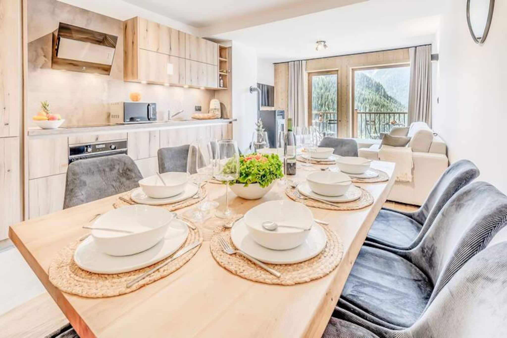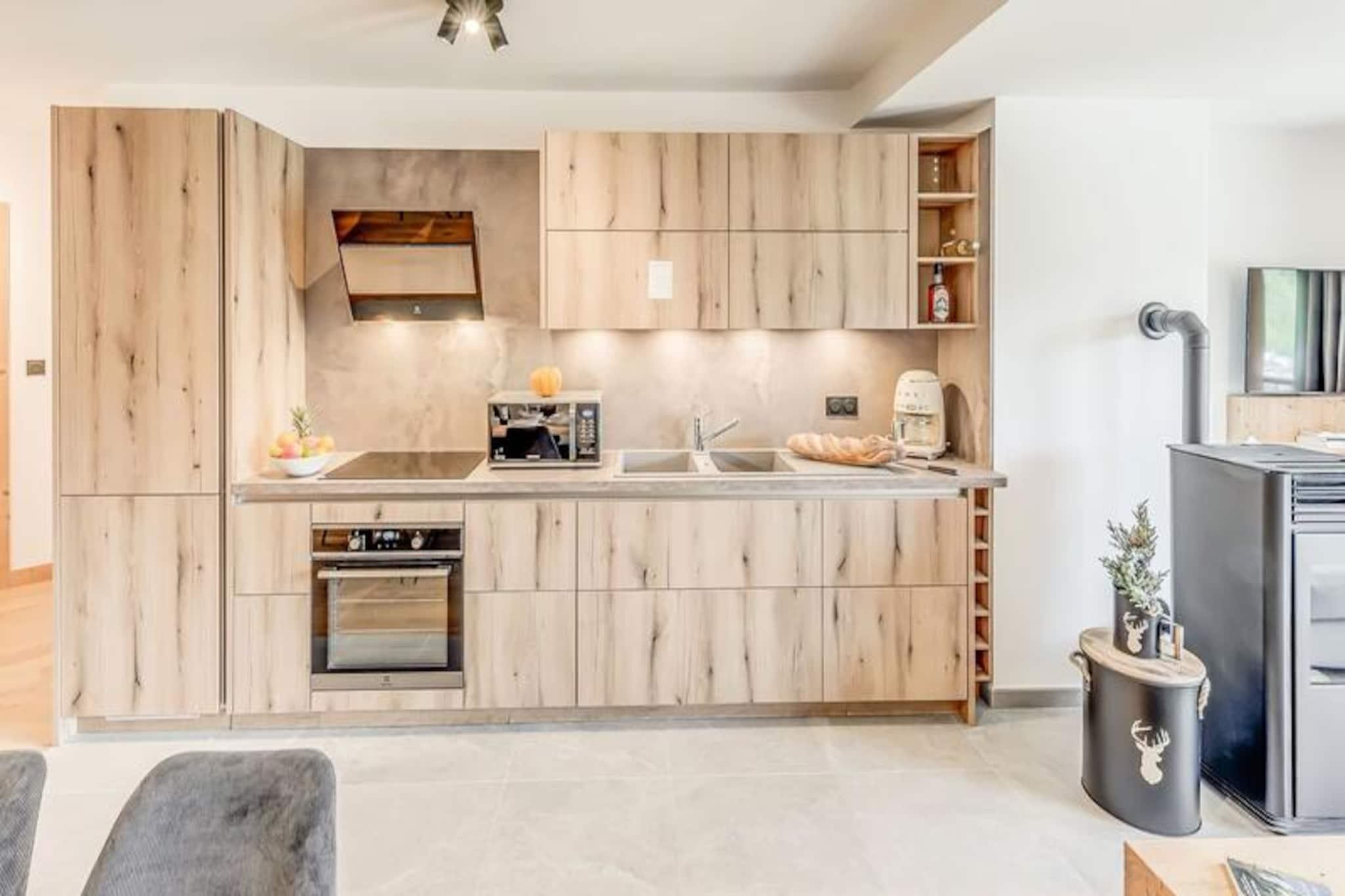 Denne elegante 4-stjernede lejlighed tilbyder et luksuriøst tilflugtssted for op til otte gæster. Den hyggelige stue har pilleovn og komfortable siddepladser, mens tre rummelige soveværelser byder på en blanding af dobbeltsenge og enkeltsenge, alle med indbygget opbevaring og tv. Lejligheden indeholder et moderne badeværelse med vaskemaskine/tørretumbler, separat toilet og to solrige altaner med en fantastisk syd-øst udsigt. Bemærk venligst, at kæledyr ikke er tilladt, og at ejendommen er røgfri. Sengene er redt ved ankomsten, og sengetøj og håndklæder af høj kvalitet leveres. Beliggende nær det traditionelle Planay-distrikt i Champagny en Vanoise, tilbyder ejendommen nem adgang til lokale butikker, charmerende caféer og pulserende markeder. Gæsterne kan stå på ski med nem adgang til et skiskab og støvlevarmer ved boligens indgang. For dem, der søger afslapning, åbner et nyt vandcenter med indendørs pool og sauna i nærheden i december 2023, hvilket tilføjer til rækken af ??attraktioner i området. Lejligheden er fuldt udstyret til din komfort, med et moderne køkken med ovn, mikroovn, induktionskomfur, køleskab, fryser og opvaskemaskine. Yderligere faciliteter omfatter gratis WiFi, overdækket parkering med cykelopbevaring og opladningsmuligheder for elbiler. Den rummelige spiseplads med et stort træbord og læderstole gør den perfekt til familiemåltider eller sammenkomster efter en dag med udforskning af bjergene. Slutrengøring (ekskl. køkkenet) er inkluderet for en problemfri oplevelse.