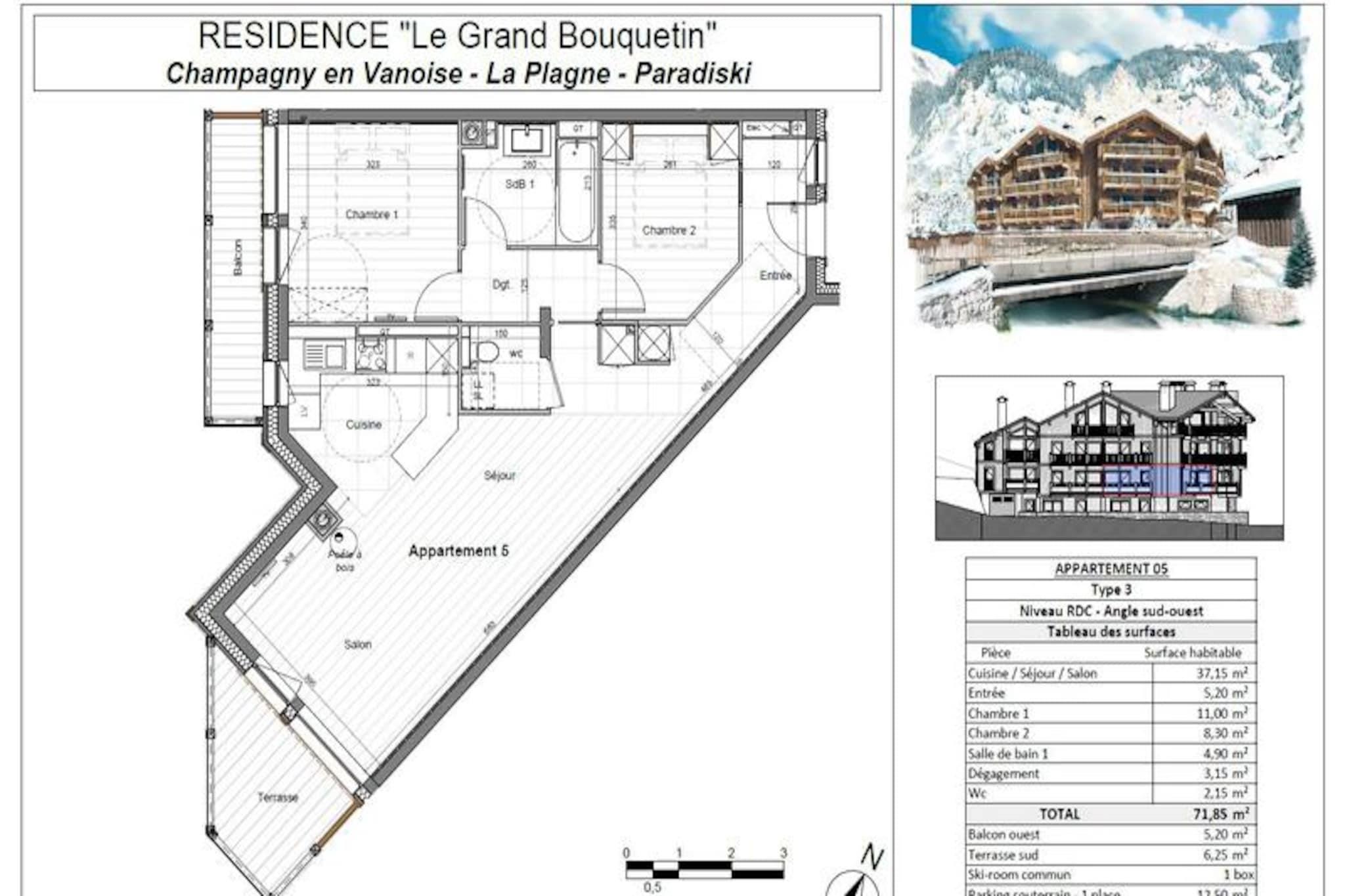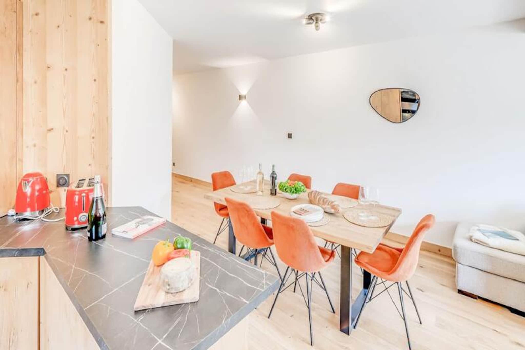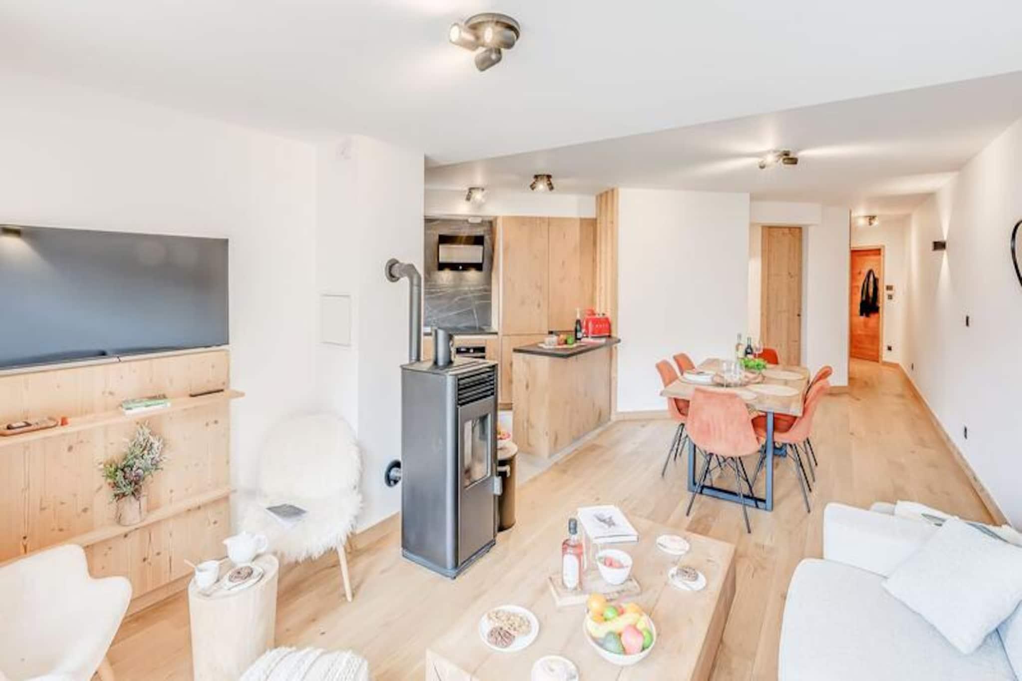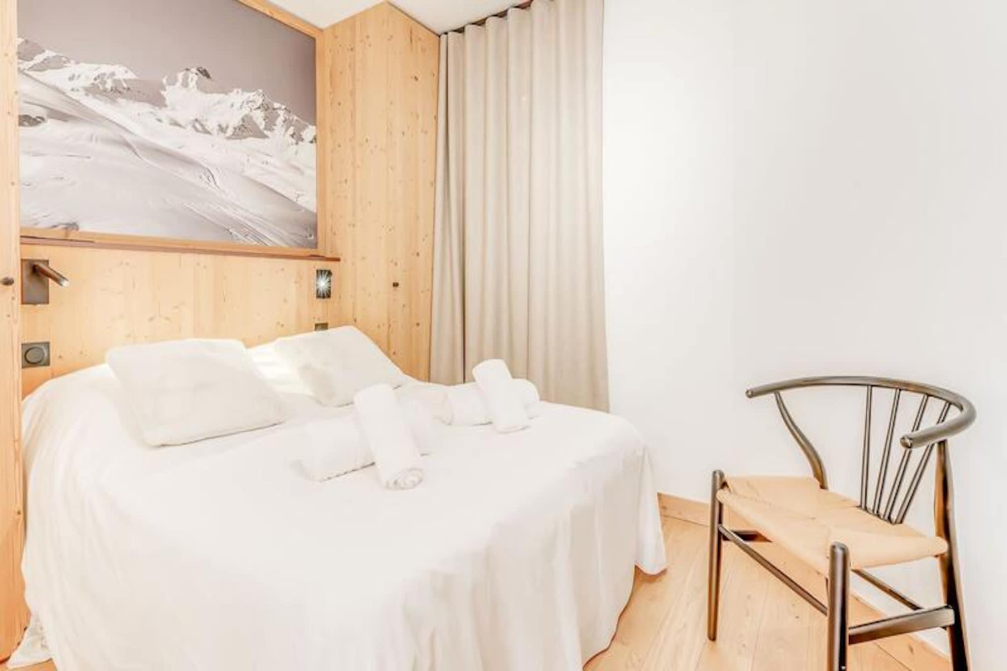 Denne charmerende 3-v?relses lejlighed kan rumme op til 6 personer og ligger i den forh?jede stueetage i en ny 4* bolig. Lejligheden har en dobbeltseng i det store sovev?relse, to enkeltsenge i det andet sovev?relse og en sovesofa i stuen. Det er en ikke-ryger ejendom, og k?ledyr er ikke tilladt. Boligen tilbyder gratis tr?dl?s internetadgang, og senget?j og h?ndkl?der leveres med redte senge ved ankomsten. Et pillefyr s?tter et hyggeligt pr?g p? stuen, og der er en overd?kket parkeringsplads til r?dighed for g?sterne. Boligen er beliggende i det traditionelle Planay-distrikt i Champagny en Vanoise, og tilbyder nem adgang til n?rliggende caf?er, butikker og lokale attraktioner. G?sterne kan nyde solrige balkoner, natursk?n udsigt og n?rhed til skil?jper og udend?rs aktiviteter. Omr?det er ideelt til vintersport, og g?sterne kan ogs? udforske de lokale markeder. Et sp?ndende nyt vandomr?de med indend?rs pool og sauna vil v?re tilg?ngeligt fra december 2023. Lejligheden indeholder et fuldt udstyret k?kken med moderne apparater, s?som ovn, mikroovn, induktionskomfur, k?leskab og opvaskemaskine. En spiseplads med et tr?bord komplementerer k?kkenet. Badev?relset og et separat toilet med vaskemaskine/t?rretumbler tilf?jer bekvemmelighed. En terrasse p? 6,5 m² og en balkon p? 5,6 m² giver et fredeligt udend?rsomr?de uden udsigt til naboer. Slutreng?ring (ekskl. k?kken) er inkluderet i lejen.