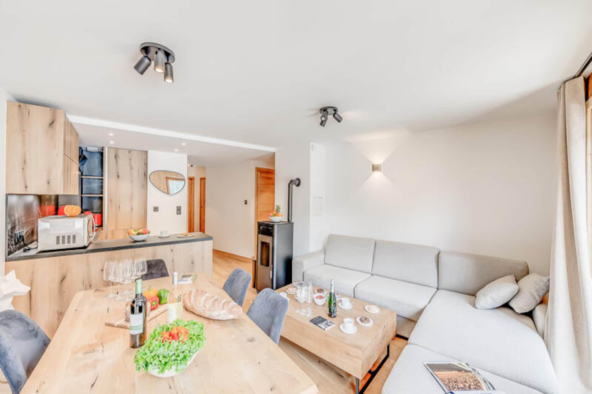 Nueva residencia de 4* - Inauguración el 17 de diciembre de 2022 - compuesta por 14 apartamentos orientados al sur, sureste o suroeste, con balcón soleado, estufa de pellets (no incluida), wifi y plazas de aparcamiento cubiertas. Anillas de fijación para bicicletas y toma de carga eléctrica. Guardaesquís a la entrada de la residencia con calentador de zapatos. Residencia a escala humana, cuidada, cerca del tradicional barrio de Planay en Champagny en Vanoise. Servicios parahotel incluidos: recepción y apertura del apartamento, suministro de sábanas y toallas, camas hechas a la llegada, limpieza de final de estancia incluida. NUEVO: Inauguración en diciembre de 2023 de un espacio acuático que incluye piscina cubierta y sauna. GRAND BOUQUETIN - Apartamento tipo cabaña de 2 habitaciones para 6 personas en el nivel 1 - 53,75 m² Este bonito y acogedor apartamento se compone de un bonito salón equipado con estufa de pellet, cocina totalmente equipada y dispone de un balcón orientado al este de 4,75m2, amueblado y sin vecinos. El apartamento está equipado de la siguiente manera: - Entrada - 1 amplio ambiente con: * cocina totalmente equipada: horno, microondas, placa de inducción, frigorífico y congelador, lavavajillas, vajilla completa. * comedor con gran mesa de madera y sillas de cuero. * salón con sofá cama doble, sillones, mesa de centro, televisión - Dormitorio 1 con 1 cama doble, televisión, armario y ventana. - Rincón de montaña con 2 literas y armario. - 1 baño con lavadora/secadora - 1 aseo independiente SERVICIOS HOTELEROS INCLUIDOS: - Wi-Fi - Sábanas, toallas. - limpieza de final de estancia excepto cocina - En el parking: Anilla de seguridad para colgar bicicletas + toma de corriente para recarga de bicicletas eléctricas - Disponibilidad de carga lenta de vehículos eléctricos. Los siguientes servicios no están incluidos pero están disponibles con un coste adicional y previa reserva: - Cama BB 20 euros - Silla BB 20 euros - Se admiten mascotas - Apartamento para no fumadores - Depósito: 1500EURO Depósito (en euros) - 250 Calefacción - 1
