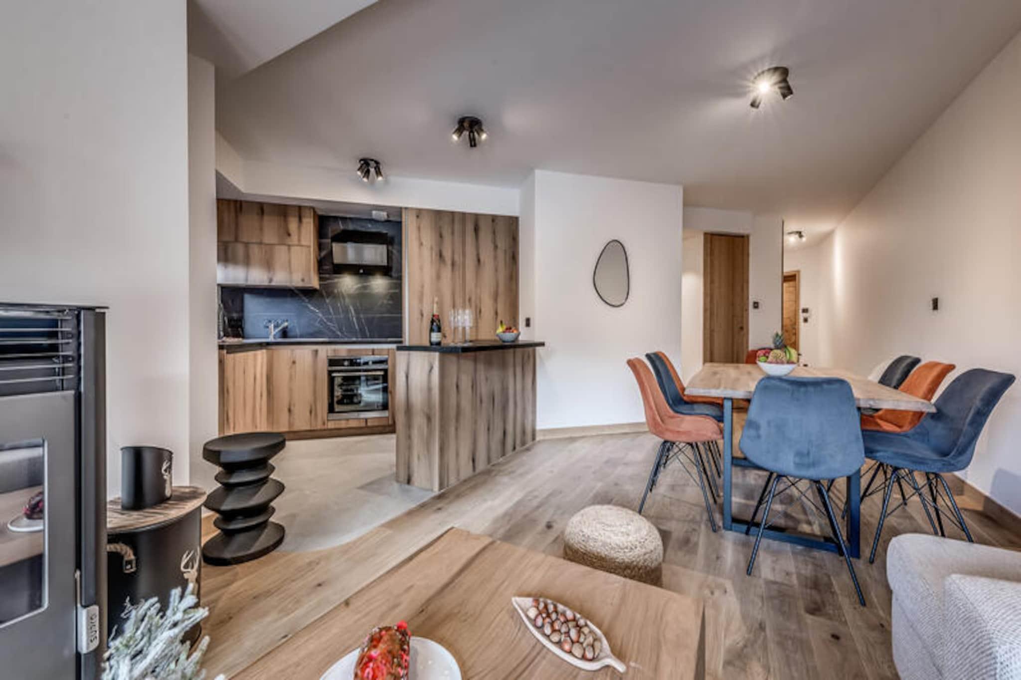 This spacious 3-room apartment, located on the first floor, is perfect for up to 6 people. It features a cozy living room with a pellet stove, a fully equipped kitchen, and two comfortable bedrooms. The apartment also includes a double sofa bed in the living room, making it ideal for families or groups. Guests will appreciate the two sunny balconies, offering beautiful views of the surrounding area. The apartment is non-smoking, and pets are not allowed. Bed linens, towels, and end-of-stay cleaning are included for your convenience, ensuring a stress-free stay. Located in the traditional Planay district of Champagny en Vanoise, this residence offers easy access to local attractions and amenities. The area is known for its beautiful alpine setting, perfect for hiking, skiing, and outdoor adventures. The residence is within walking distance of local shops, cafes, and restaurants, offering guests a chance to explore the charm of the village. In winter, ski slopes are easily accessible, while the summer months offer opportunities for scenic walks and nature exploration. The apartment features a fully equipped kitchen with an oven, microwave, induction hob, fridge, and dishwasher, allowing guests to prepare meals at their leisure. The bathroom includes a shower, and there is a separate toilet with a washing machine and dryer for added convenience. Guests also have access to covered parking, a ski locker, and a bike rack, with an electrical charging socket available for e-bikes. An indoor swimming pool and sauna will be available in December 2023 for added relaxation after a day of outdoor activities.