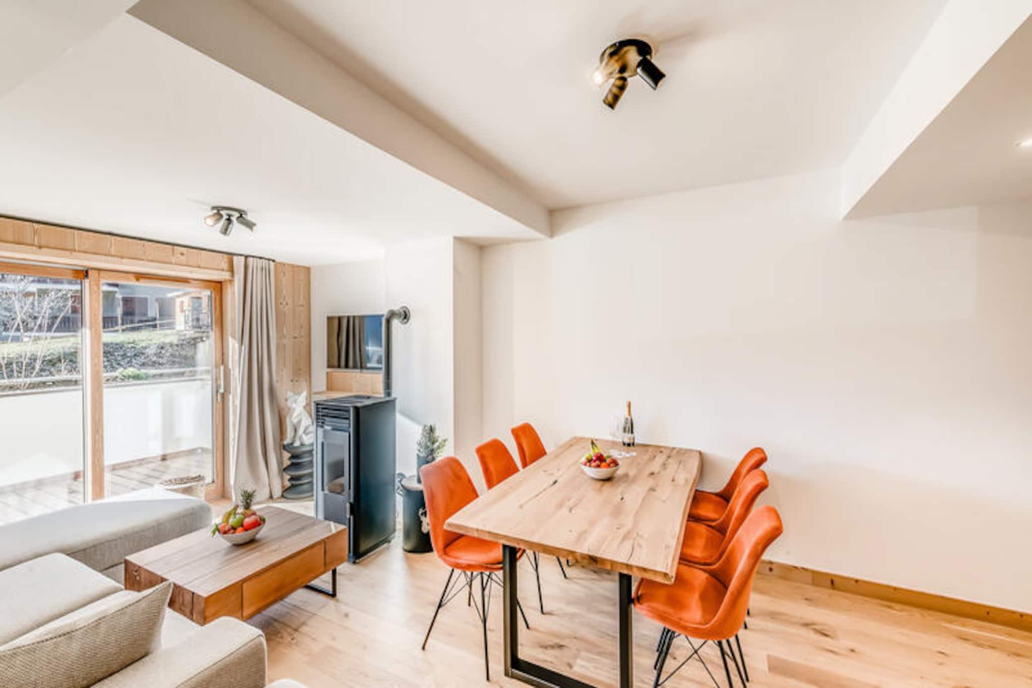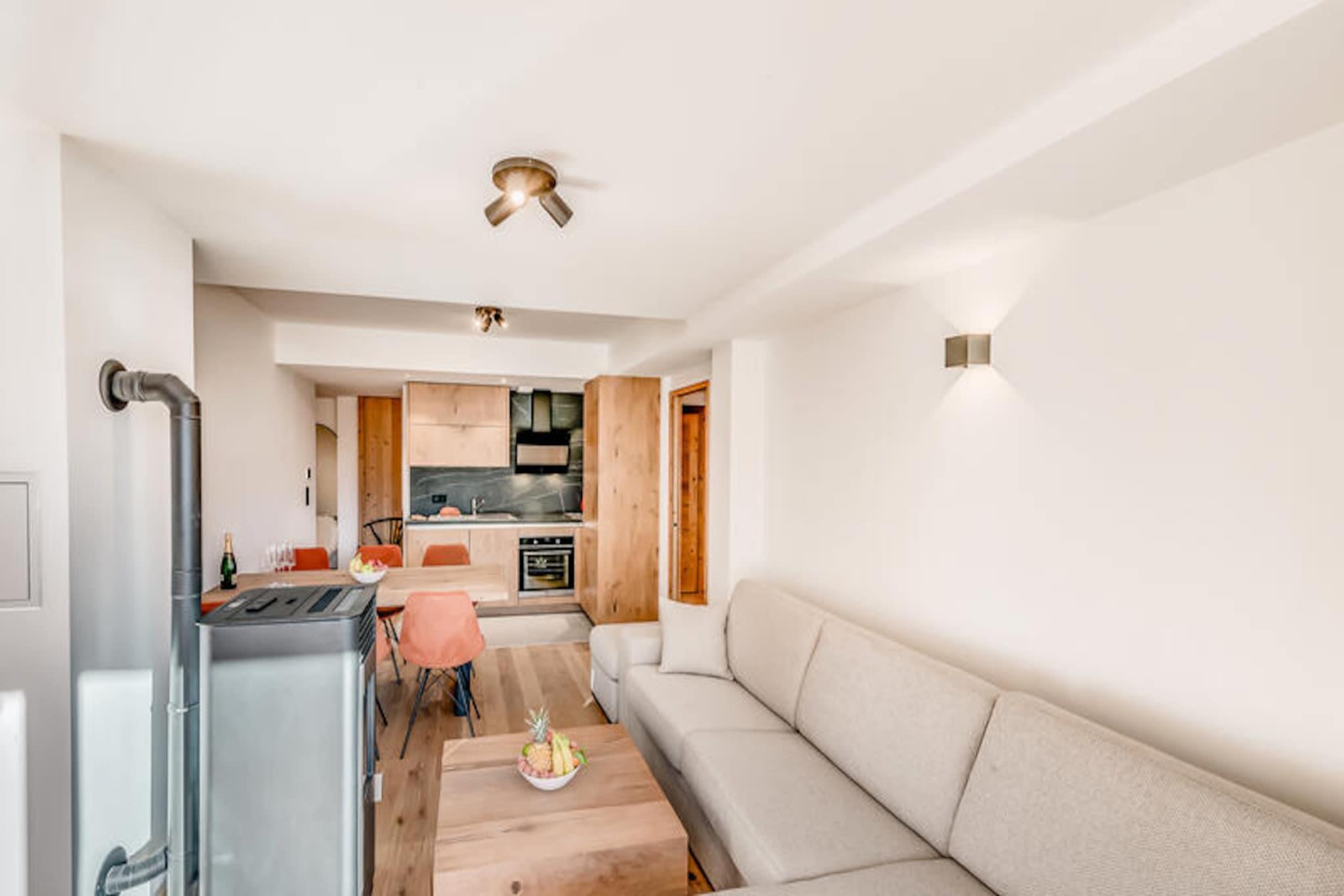 This charming 2-room cabin apartment, located on the ground floor, accommodates up to 6 people. It features a double bed in the bedroom, a mountain corner with bunk beds, and a comfortable living room with a double sofa bed. The apartment is equipped with a pellet stove (pellets not provided), TV, and WiFi. For added comfort, the property is non-smoking and pet-free. Upon arrival, guests will find their beds made, and towels provided, with end-of-stay cleaning included (excluding the kitchen). Covered parking spaces and bike attachment rings are available. The residence is ideally located close to the traditional Planay district in Champagny en Vanoise. The property offers a sunny atmosphere with a large west-facing terrace, perfect for enjoying the surrounding mountain views. Guests can easily explore the local area, with access to hiking trails, ski slopes, and the new aquatic area, which will feature an indoor pool and sauna opening in December 2023. Ski lockers with shoe warmers are available for convenience. The apartment boasts a fully equipped kitchen with modern appliances, including an oven, microwave, induction hob, refrigerator, and dishwasher. The spacious dining area is perfect for family meals, and the bathroom is equipped with a washer/dryer. Additional amenities include a separate toilet and a private terrace with outdoor furniture for relaxing after a day of adventure.