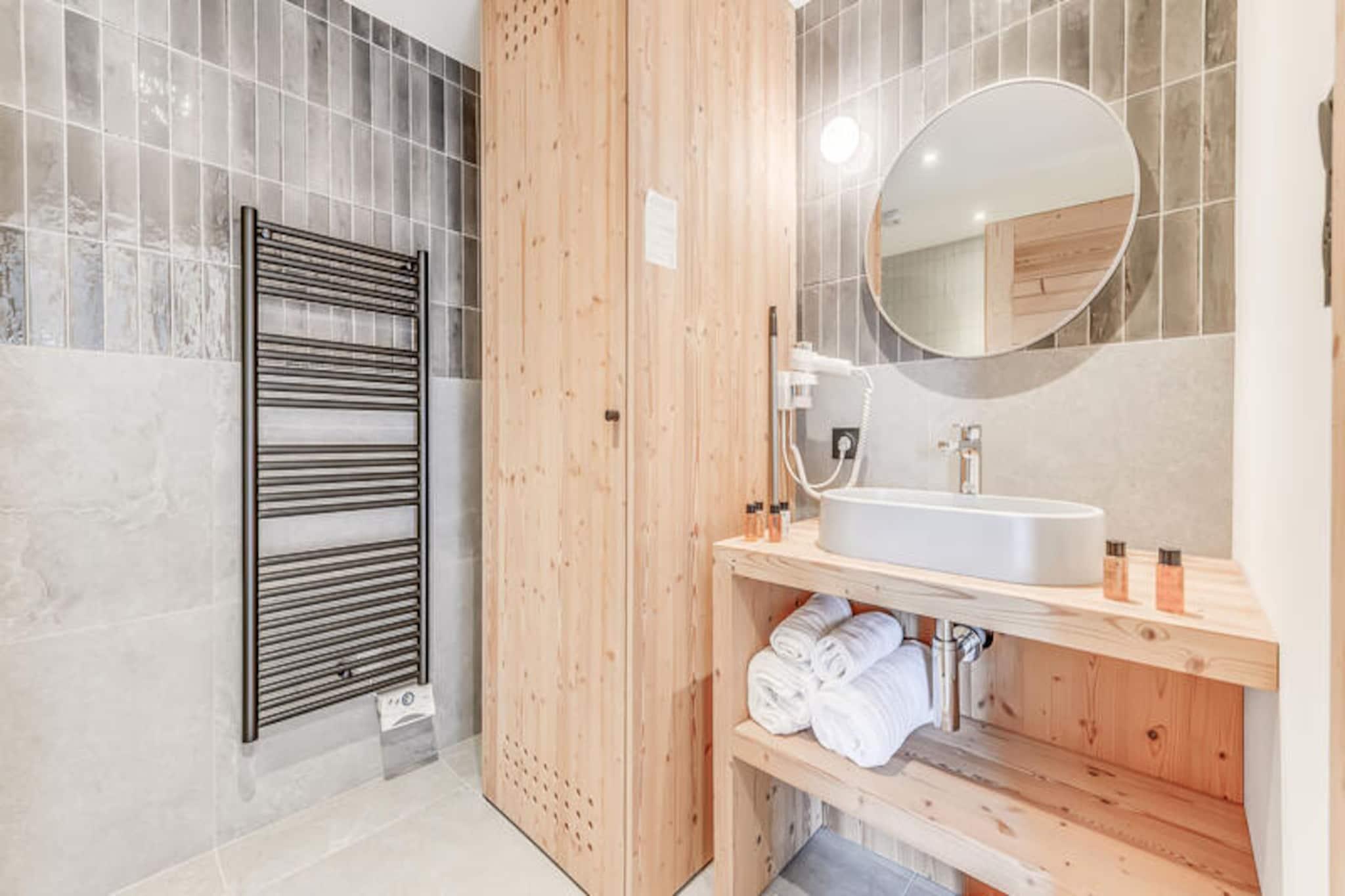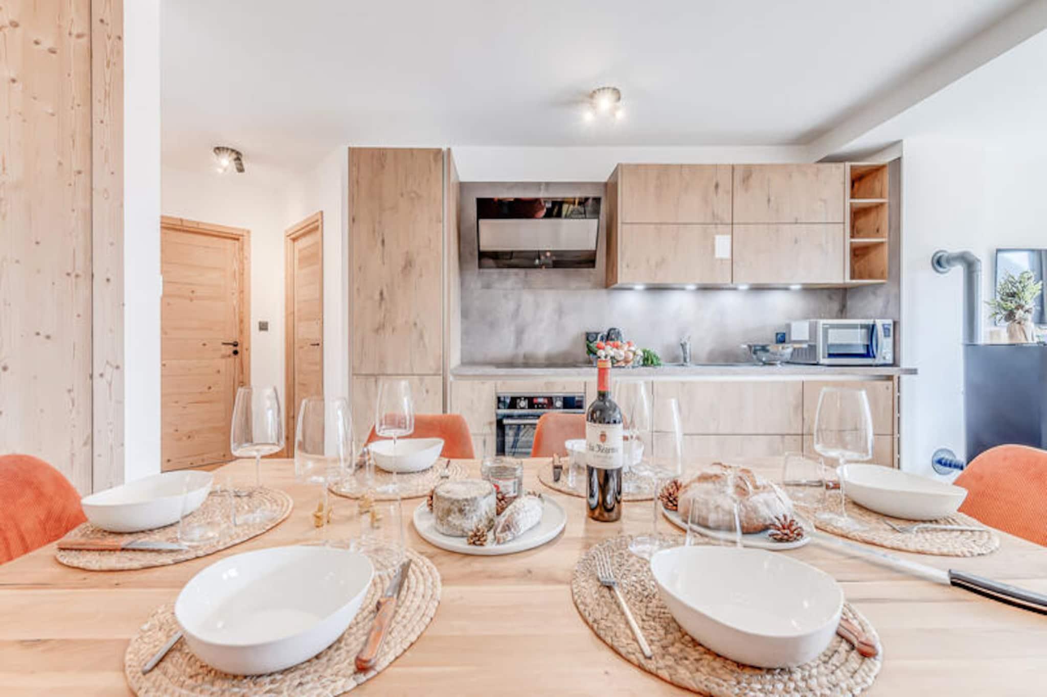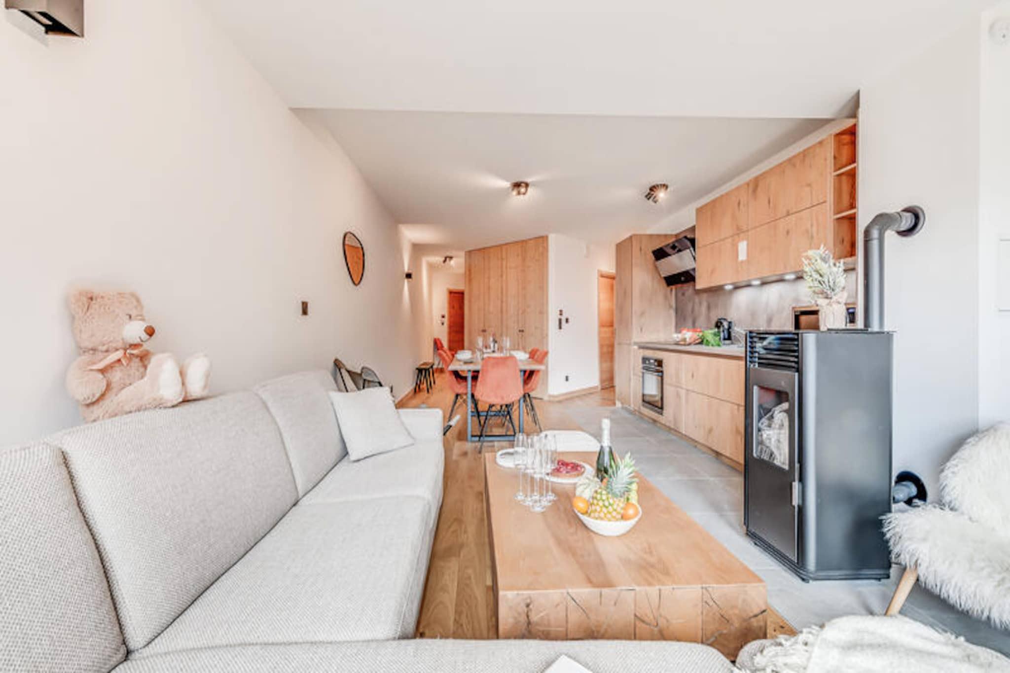 Denne moderne 4* lejlighed, en del af en ny bolig, er designet til komfortabelt at rumme op til 6 personer. Det omfatter en rummelig stue med et pillefyr (piller medf?lger ikke), en spiseplads og et fuldt udstyret k?kken. Lejligheden har to hyggelige sovev?relser, det ene med dobbeltseng og det andet med to enkeltsenge, begge med direkte adgang til private altaner. En dobbelt sovesofa i opholdsomr?det tilf?jer ekstra soveplads. Lejligheden er ikke-ryger, og k?ledyr er ikke tilladt. Et separat badev?relse med en vaskemaskine/t?rretumbler og et separat toilet er ogs? tilg?ngelige for nemheds skyld. Boligen er ideelt beliggende n?r det traditionelle Planay-distrikt i Champagny en Vanoise. G?sterne kan nemt udforske omr?det med et skiskab og skovarmer ved indgangen for vintersportsentusiaster. Lejlighedernes solrige altaner byder p? smuk udsigt, og omr?det er ideelt til udend?rs aktiviteter s?som skil?b, vandreture og cykling. Boligen tilbyder ogs? et nyt vandomr?de med en indend?rs swimmingpool og sauna, tilg?ngelig fra december 2023. Lejligheden har et fuldt udstyret k?kken med ovn, mikroovn, induktionskomfur, k?leskab, fryser og opvaskemaskine. Opholdsstuen er indrettet med komfortable l?nestole og et sofabord med et tv til underholdning. Yderligere faciliteter inkluderer gratis Wi-Fi, lagner, h?ndkl?der og slutreng?ring (undtagen k?kkenet). Overd?kket parkering er tilg?ngelig med ladestationer til elcykler og k?ret?jer.