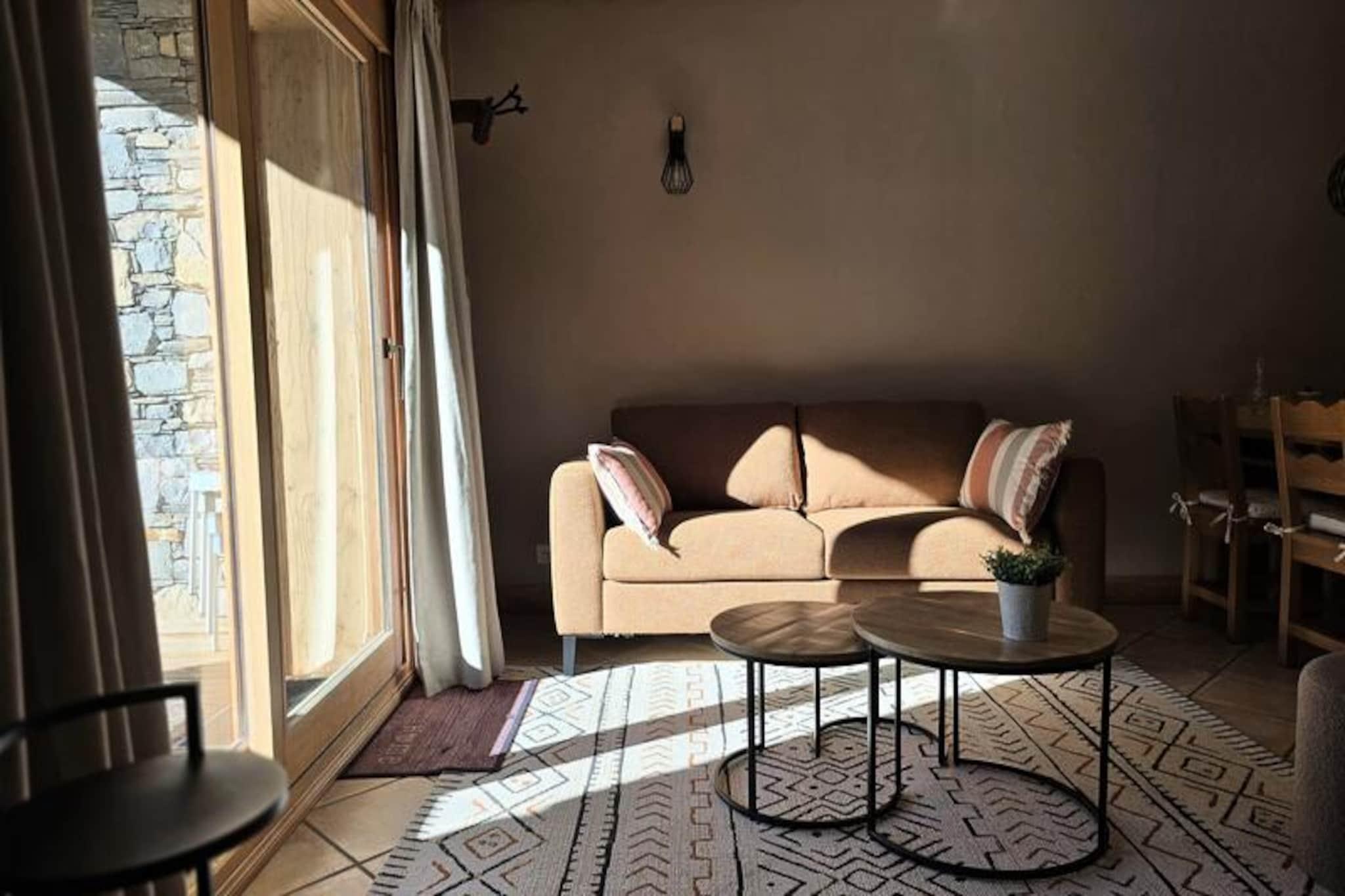 I udkanten af ??den charmerende landsby Champagny-en-Vanoise, omgivet af de majestætiske tinder i Vanoise-massivet, ligger den fredfyldte residens Les Alpages de Champagny. Denne rolige landsby med seks store hytter tilbyder en harmonisk blanding af alpin tradition og moderne komfort, hvilket skaber et idyllisk tilflugtssted for både naturelskere og bjergentusiaster. De sydvendte hytter, badet i sollys, tilbyder en betagende udsigt over Courchevel-skråningerne og lover en malerisk kulisse for din ferie. \n\nHver lejlighed er omhyggeligt designet til at sikre et behageligt ophold. Den rummelige lejlighed på 58 m² har plads til op til seks gæster og har to hyggelige soveværelser, herunder et med eget brusebad og adgang til terrasse. Det fuldt udstyrede køkken inviterer dig til at tilberede lækre måltider, mens stuen med en udtrækssovesofa og tv tilbyder et varmt sted at slappe af. En solrig terrasse, skiboks og privat overdækket parkering bidrager til bekvemmeligheden og sikrer en problemfri oplevelse fra ankomst til afrejse. Gæsterne kan også nyde godt af førsteklasses tjenester såsom Wi-Fi, sengetøj og håndklæder samt slutrengøring, hvilket gør dit ophold virkelig ubekymret. \n\nResidensen kan prale af exceptionelle faciliteter, herunder en opvarmet swimmingpool, fitnesscenter og spa med hammam og sauna, perfekt til afslapning efter en dag med eventyr. En gratis shuttle-service kører hvert ottende minut om vinteren og forbinder dig med hjertet af feriestedet, svævebanen og den berømte ESF-skiskole. Uanset om du udforsker de uberørte pister i Paradiski eller vandrer gennem de frodige stier i Vanoise Nationalpark, er beliggenheden ideel til alpine eventyr året rundt. \n\nVælg Les Alpages de Champagny for en uforglemmelig ferie, hvor komfort, bekvemmelighed og naturlig skønhed mødes. Lad bjergenes ro og landsbyens charme skabe varige minder for dig og dine kære.