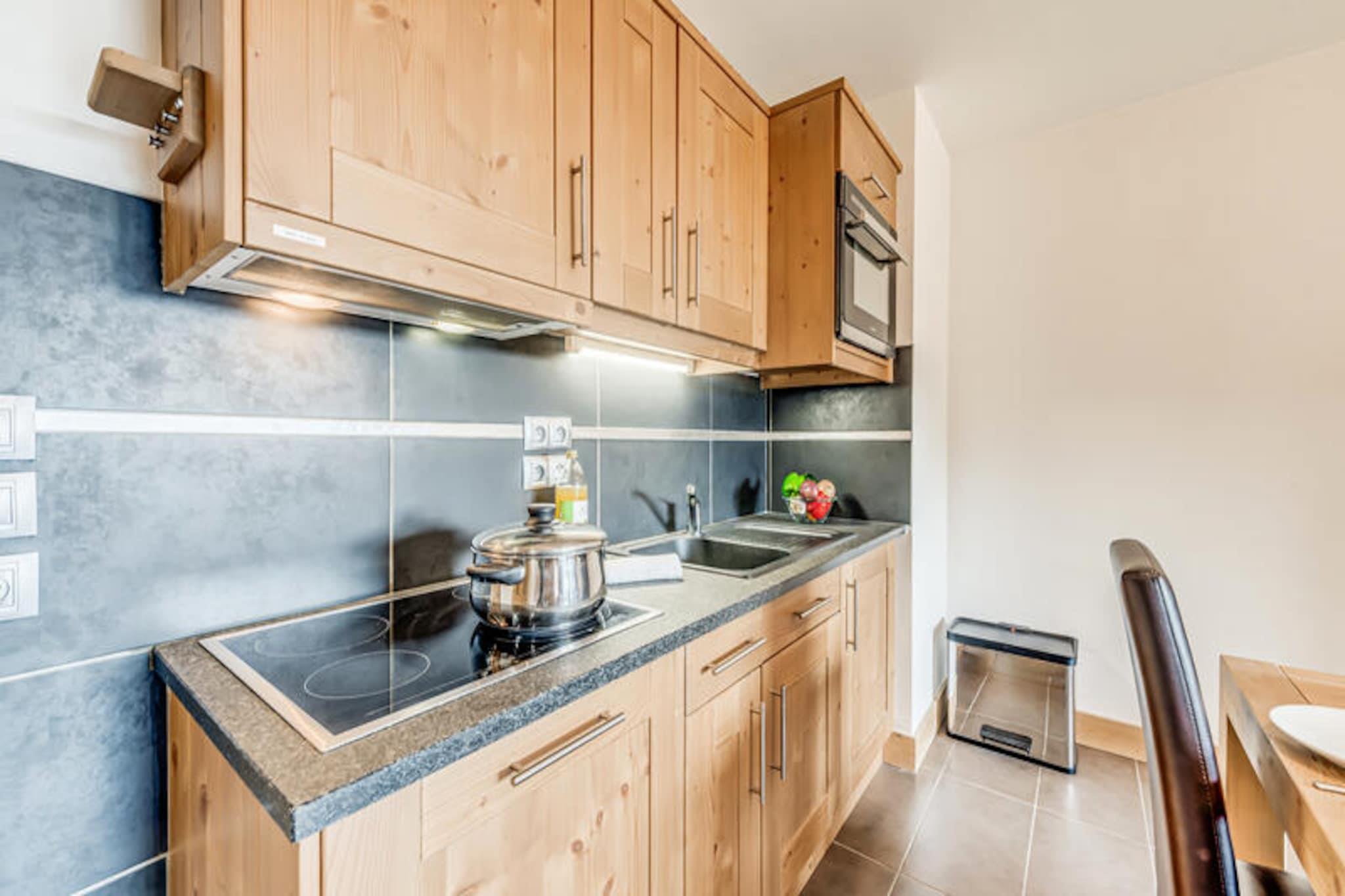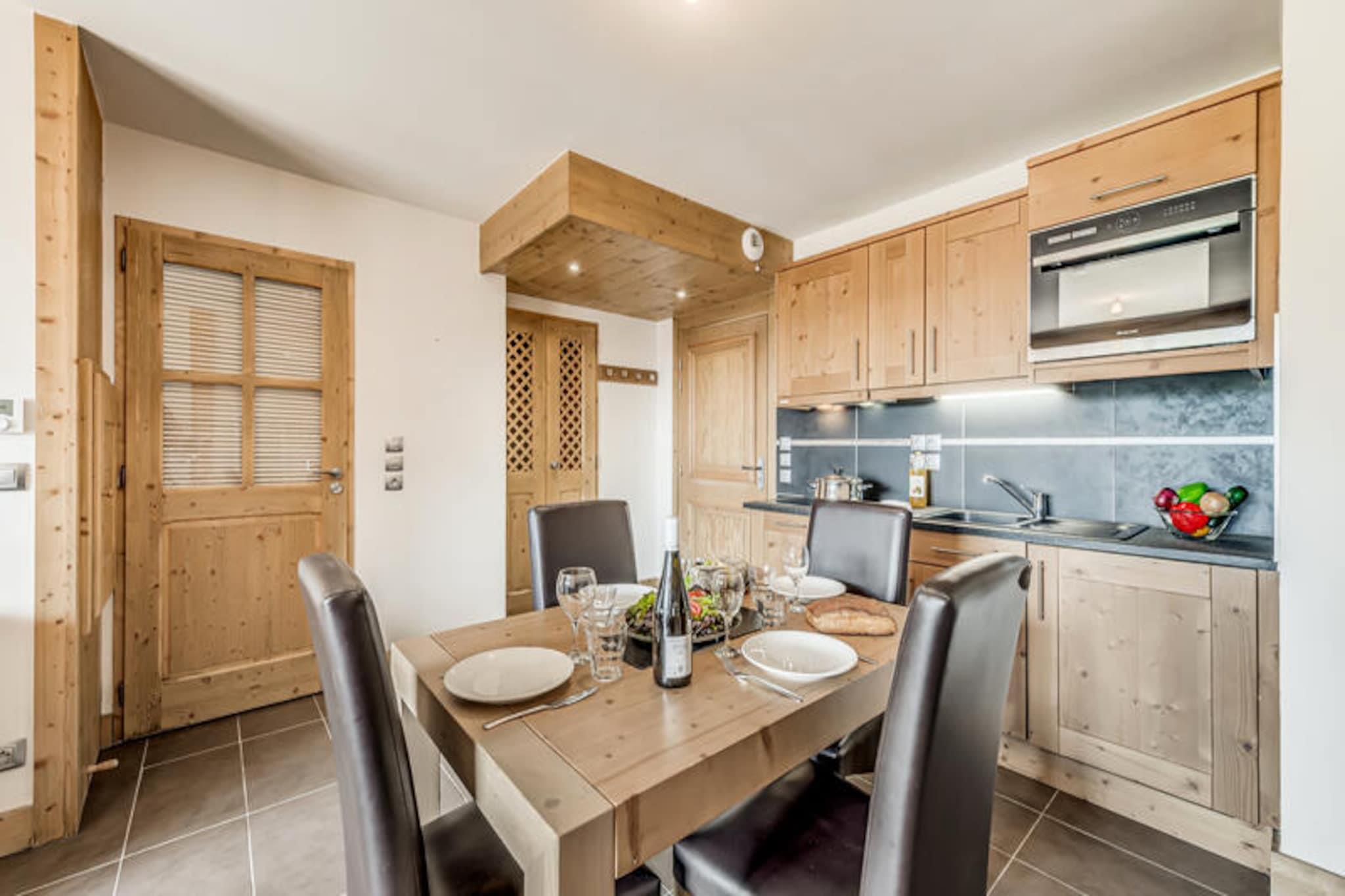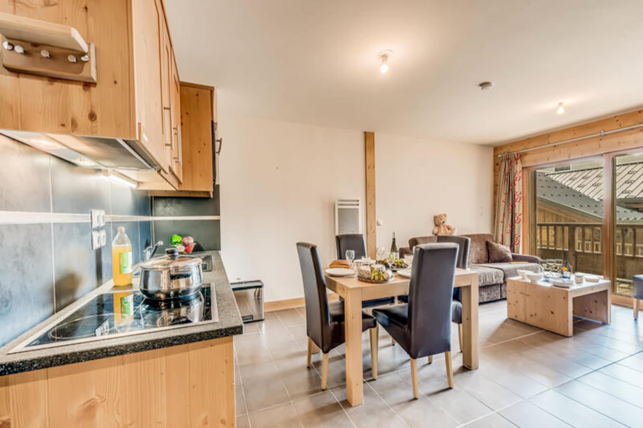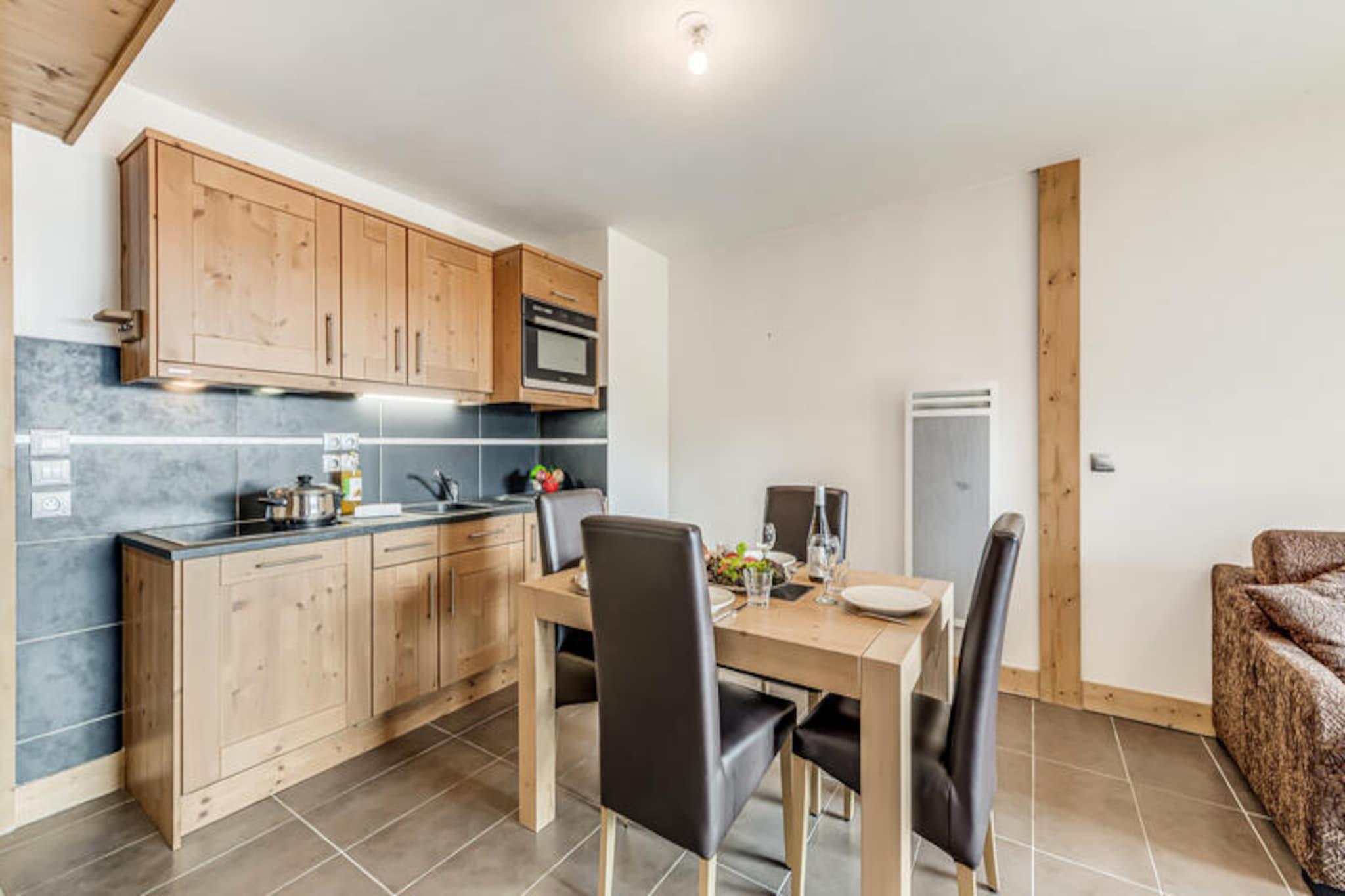 I den maleriske landsby Champagny-en-Vanoise, hvor charmen fra de franske alper møder moderne komfort, ligger den elegante residens Les Balcons Étoilés. Kun 20 meter fra svævebanen og skiskolen og en kort gåtur på 100 meter til landsbyens centrum tilbyder denne ejendom en uovertruffen beliggenhed for både vintersportsentusiaster og sommereventyrere. Fra din sydvendte terrasse kan du nyde den betagende udsigt over Vanoise-bjergene og den maleriske landsby nedenfor, hvilket skaber den perfekte kulisse for en mindeværdig alpeflugt. \n\nDenne lejlighed i stueetagen, omhyggeligt designet til op til fire gæster, kombinerer funktionalitet med hyggelig elegance. Soveværelset har en luksuriøs dobbeltseng og rigelig opbevaringsplads, mens stuen tilbyder en komfortabel sovesofa, der kan laves om til to enkeltsenge. Det fuldt udstyrede køkken med køleskab, kombinationsovn, keramisk kogeplade og opvaskemaskine gør madlavning til en leg. Efter en dag med udforskning kan du slappe af i det moderne badeværelse med bruseniche og håndklædetørrer eller slappe af i den indbydende lounge med fladskærms-tv og dvd-afspiller. Den private balkon, møbleret med havemøbler, er det ideelle sted at nyde din morgenkaffe eller et glas vin om aftenen.\n\nLes Balcons Étoilés sikrer et problemfrit ophold med inkluderede hoteltjenester såsom Wi-Fi, sengelinned, håndklæder og slutrengøring. For ekstra bekvemmelighed har boligen en elevator, private skibokse og en vaskemaskine/tørretumbler i lejligheden. Landsbyen Champagny-en-Vanoise tilbyder en dejlig blanding af butikker, restauranter og kulturelle oplevelser, mens det nærliggende Paradiski-område giver adgang til skiløb, vandreture og cykelstier i verdensklasse.\n\nUanset om du søger spændende udendørs eventyr eller et roligt tilflugtssted i hjertet af Alperne, lover denne bolig en uforglemmelig oplevelse. Lad de majestætiske tinder i Vanoise-bjergene inspirere din næste ferie.
