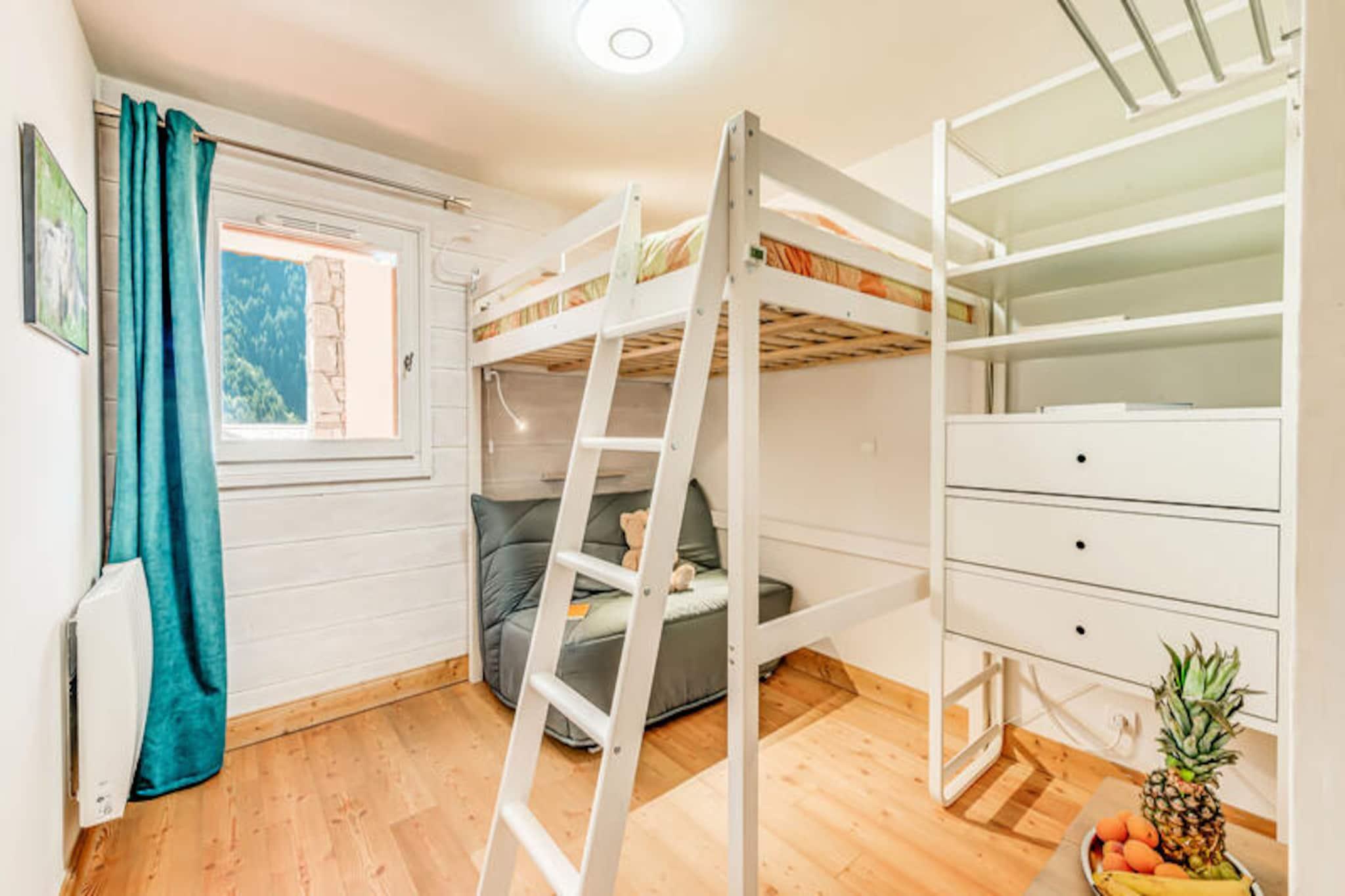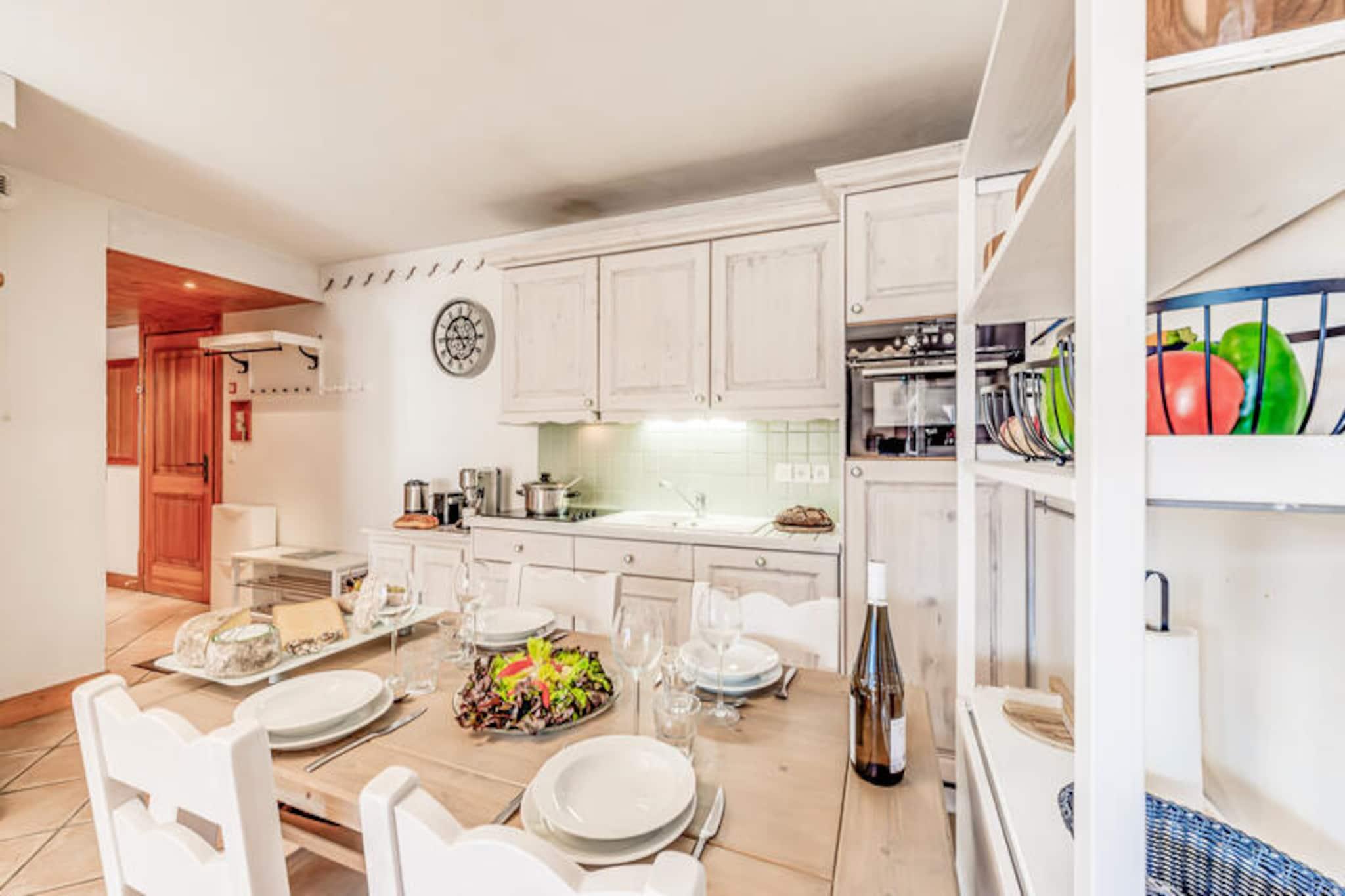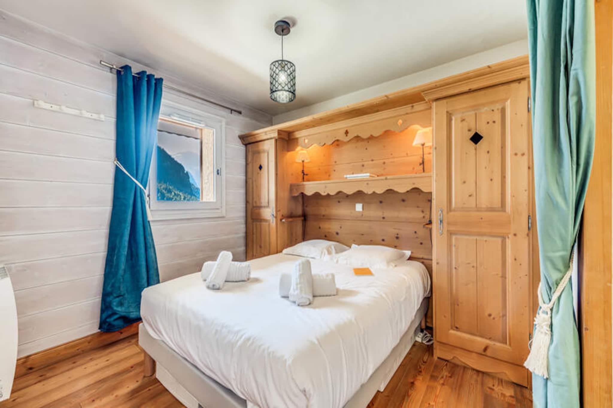 Hvor alpin ro møder moderne komfort, tilbyder denne charmerende lejlighed i Les Alpages de Champagny en unik blanding af afslapning og eventyr. Beliggende ved indgangen til den maleriske landsby Champagny-en-Vanoise, består residensen af ??seks elegante hytter omgivet af betagende natur. Med sin sydvendte orientering kan gæsterne nyde panoramaudsigten over det majestætiske Vanoise-massiv og Courchevel-skråningerne, hvilket skaber en idyllisk kulisse for din bjergferie. \n\nLejligheden er designet til at rumme op til seks gæster og kan prale af en gennemtænkt planløsning og stilfuld indretning. Den rummelige stue åbner ud til en solrig terrasse, perfekt til at nyde din morgenkaffe, mens du nyder udsigten over Pralognan-dalen. Det fuldt udstyrede køkken indeholder alt, hvad du behøver for at tilberede solide måltider efter en dag med udforskning, fra et raclette-sæt til en espressomaskine. To hyggelige soveværelser, det ene med en mezzanin-seng og sovesofa, og det andet med en luksuriøs dobbeltseng og eget brusebad, sikrer afslappende nætter for alle. Yderligere faciliteter inkluderer et skirum, overdækket parkering og gratis Wi-Fi, hvilket gør dit ophold lige så bekvemt, som det er komfortabelt. \n\nGæsterne har adgang til boligens førsteklasses faciliteter, herunder en opvarmet swimmingpool, fitnesscenter og spa med hammam og sauna. En gratis shuttle-service kører hvert ottende minut om vinteren og forbinder dig med hjertet af feriestedet, svævebanen og ESF-skiskolen. Uanset om du er her for at stå på ski, vandre eller blot slappe af, tilbyder beliggenheden uendelige muligheder for eventyr og afslapning. \n\nMed sin blanding af luksus, praktisk anvendelighed og fantastiske alpine udsigter er denne lejlighed den perfekte base for at skabe uforglemmelige minder i de franske alper. Lad charmen ved Champagny-en-Vanoise fortrylle dig, mens du fordyber dig i skønheden i denne bemærkelsesværdige destination.