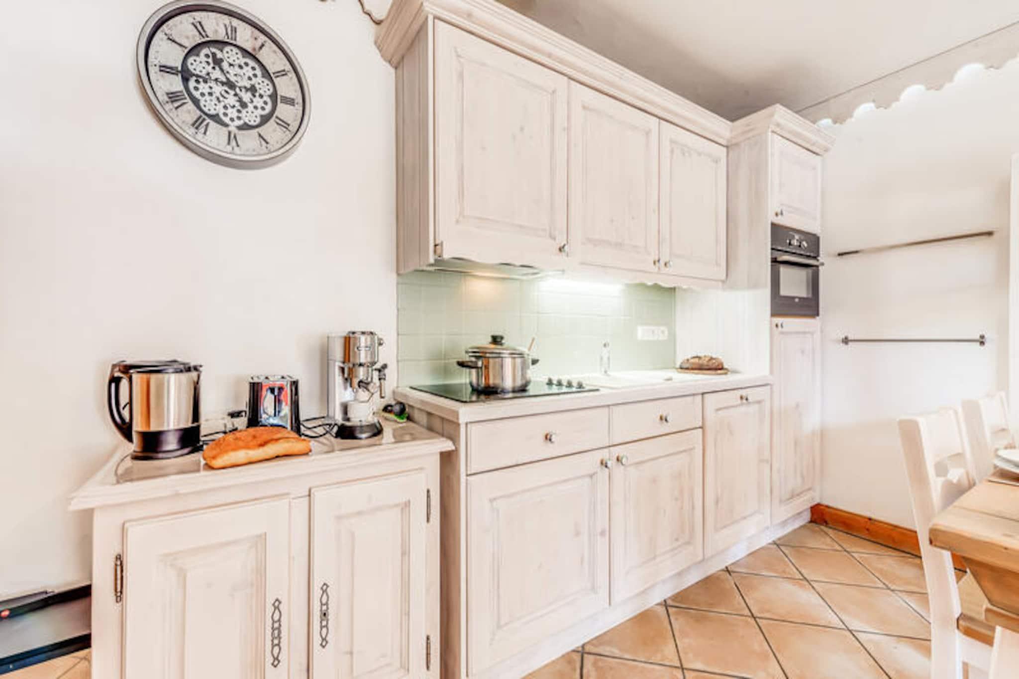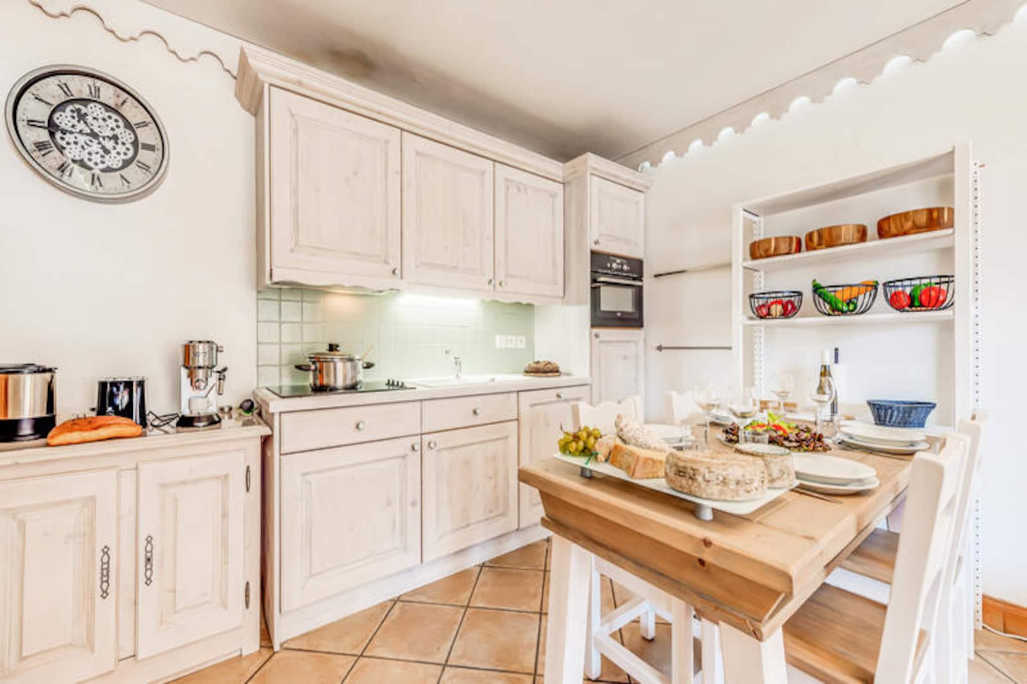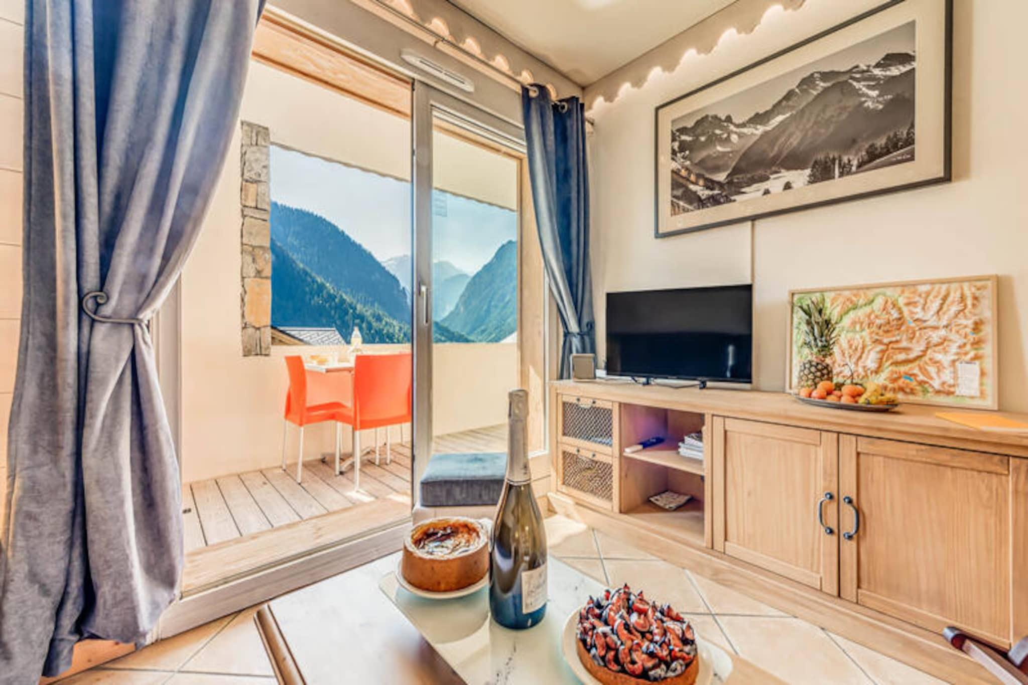 Hvor alpin ro møder moderne komfort, tilbyder denne charmerende lejlighed i Les Alpages de Champagny en unik blanding af afslapning og eventyr. Beliggende ved indgangen til den maleriske landsby Champagny-en-Vanoise, består residensen af ??seks elegante hytter omgivet af betagende natur. Med sin sydvendte orientering kan gæsterne nyde panoramaudsigten over det majestætiske Vanoise-massiv og Courchevel-skråningerne, hvilket skaber en idyllisk kulisse for din bjergferie. \n\nLejligheden er designet til at rumme op til seks gæster og kan prale af en gennemtænkt planløsning og stilfuld indretning. Den rummelige stue åbner ud til en solrig terrasse, perfekt til at nyde din morgenkaffe, mens du nyder udsigten over Pralognan-dalen. Det fuldt udstyrede køkken indeholder alt, hvad du behøver for at tilberede solide måltider efter en dag med udforskning, fra et raclette-sæt til en espressomaskine. To hyggelige soveværelser, det ene med en mezzanin-seng og sovesofa, og det andet med en luksuriøs dobbeltseng og eget brusebad, sikrer afslappende nætter for alle. Yderligere faciliteter inkluderer et skirum, overdækket parkering og gratis Wi-Fi, hvilket gør dit ophold lige så bekvemt, som det er komfortabelt. \n\nGæsterne har adgang til boligens førsteklasses faciliteter, herunder en opvarmet swimmingpool, fitnesscenter og spa med hammam og sauna. En gratis shuttle-service kører hvert ottende minut om vinteren og forbinder dig med hjertet af feriestedet, svævebanen og ESF-skiskolen. Uanset om du er her for at stå på ski, vandre eller blot slappe af, tilbyder beliggenheden uendelige muligheder for eventyr og afslapning. \n\nMed sin blanding af luksus, praktisk anvendelighed og fantastiske alpine udsigter er denne lejlighed den perfekte base for at skabe uforglemmelige minder i de franske alper. Lad charmen ved Champagny-en-Vanoise fortrylle dig, mens du fordyber dig i skønheden i denne bemærkelsesværdige destination.