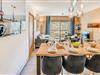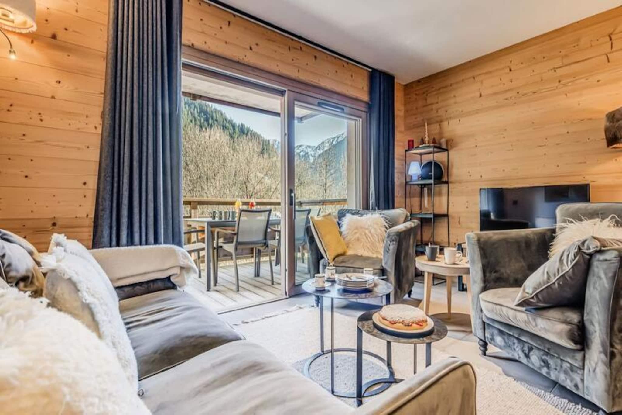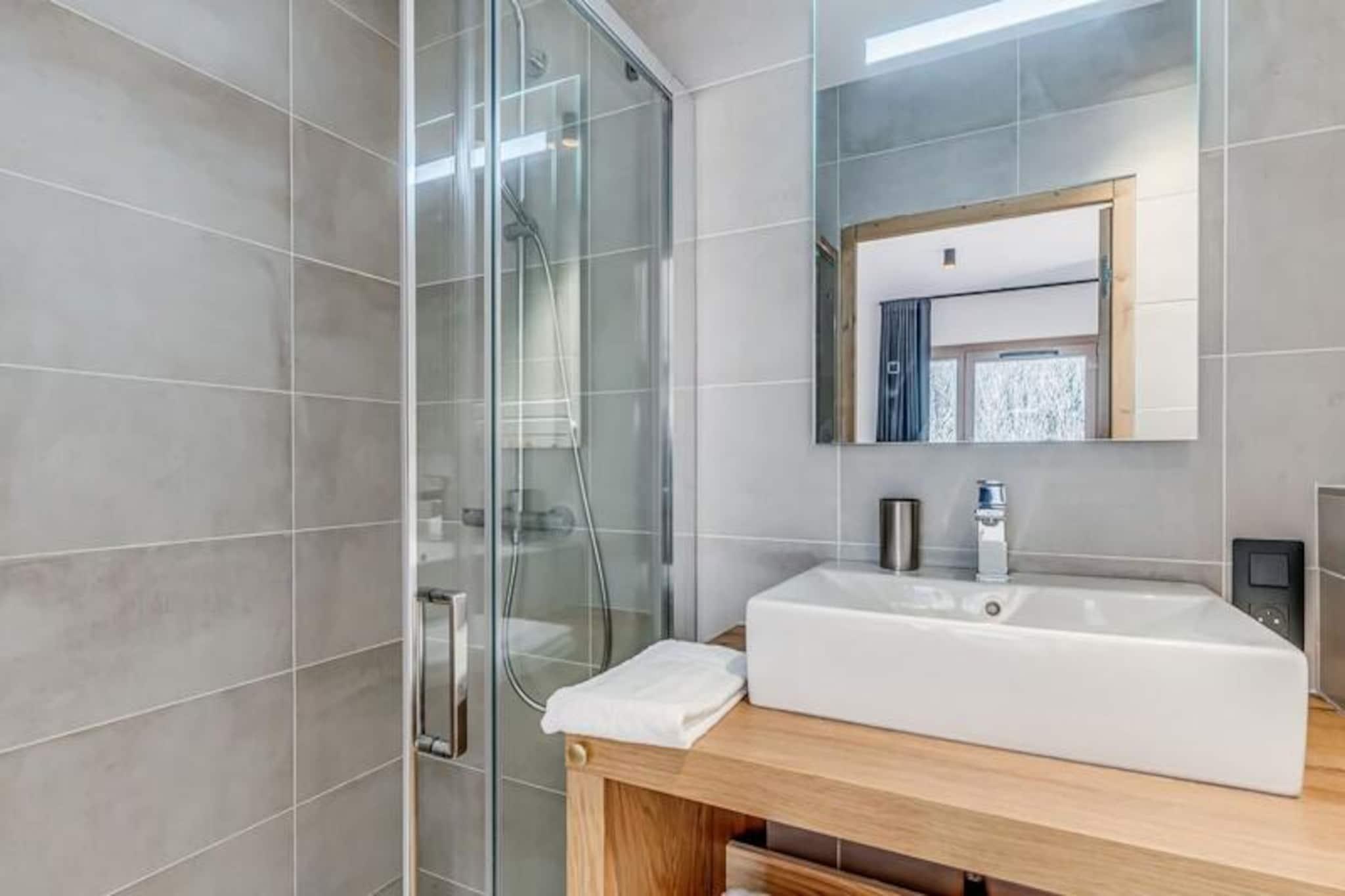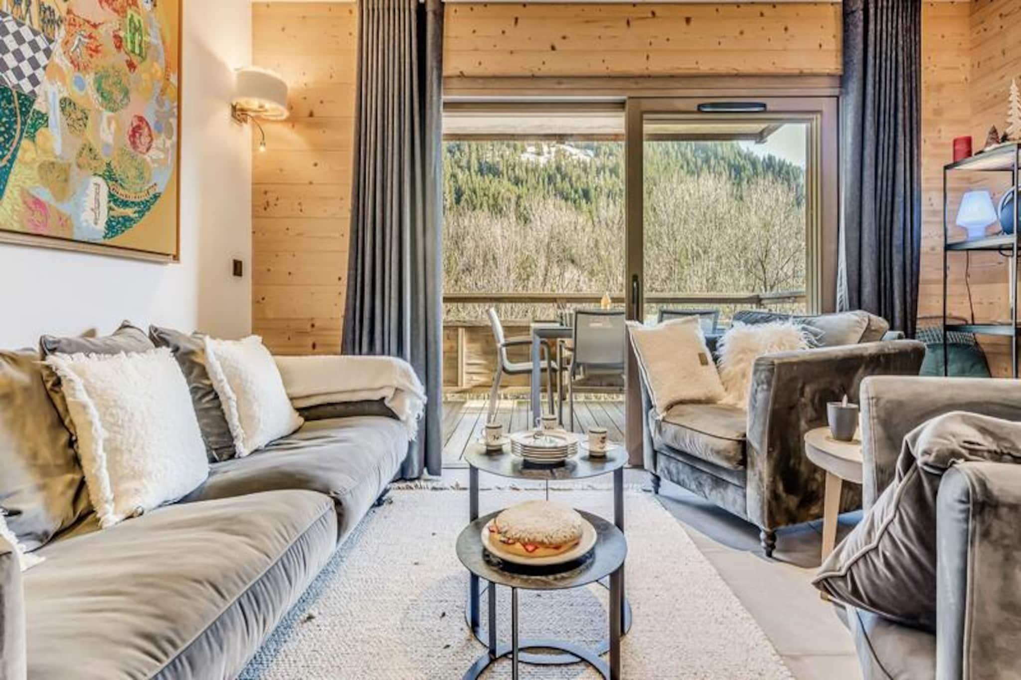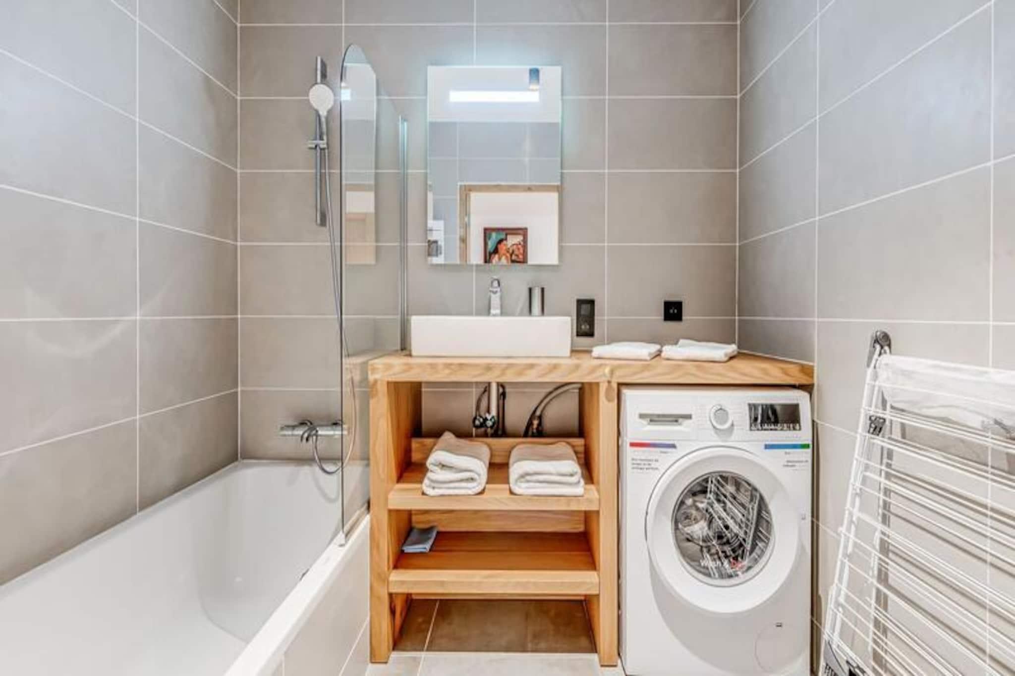Denne luksuriøse lejlighed i Terrasses de la Vanoise-residensen ligger i udkanten af ??den fredfyldte Vanoise-bjergkæde og tilbyder et uovertruffent alpint tilflugtssted. Med en betagende udsigt over de omkringliggende tinder og den charmerende landsby Champagny en Vanoise lige på den anden side af dalen inviterer denne moderne, men hyggelige indkvartering dig til at opleve de franske alper med stil. Uanset om du besøger dem om vinteren for at stå på ski eller om sommeren for at vandre, er beliggenheden ideel til at fordybe dig i natur og eventyr. \n\nLejligheden er på 94 kvadratmeter og er omhyggeligt designet til at rumme op til otte gæster. Den har tre elegante soveværelser, herunder en nordvendt master-suite med eget brusebad og et sydvendt værelse med adgang til terrassen. Opholdsstuen er varm og indbydende med et fuldt udstyret køkken, en rummelig spiseplads og en komfortabel lounge med en Harman Kardon Bluetooth-højttaler og brætspil. Gå ud på den sydvendte terrasse for at nyde solen eller nyde et måltid under åben himmel omgivet af fantastiske alpine udsigter. Moderne faciliteter såsom en Bosch vaskemaskine/tørretumbler, fiberoptisk internet og et skirum med støvletørrer sikrer bekvemmelighed og komfort under hele dit ophold.\n\nResidensen ligger kun 500 meter fra butikker og skilifter og tilbyder nem adgang til alle landsbyens faciliteter. Gratis kommunale shuttlebusser kører hvert 30. minut i højsæsonen og forbinder dig med Champagny-le-Haut og andre lokale attraktioner. Om sommeren tilbyder den nærliggende swimmingpool og spa afslapning efter en dag med udforskning. Med hotellignende tjenester, herunder Wi-Fi, sengelinned og slutrengøring, kombinerer denne ejendom hjemmets komfort med fordelene ved et luksuriøst ophold.\n\nVælg denne elegante lejlighed til din næste alpeferie og skab uforglemmelige minder i hjertet af de franske alper.