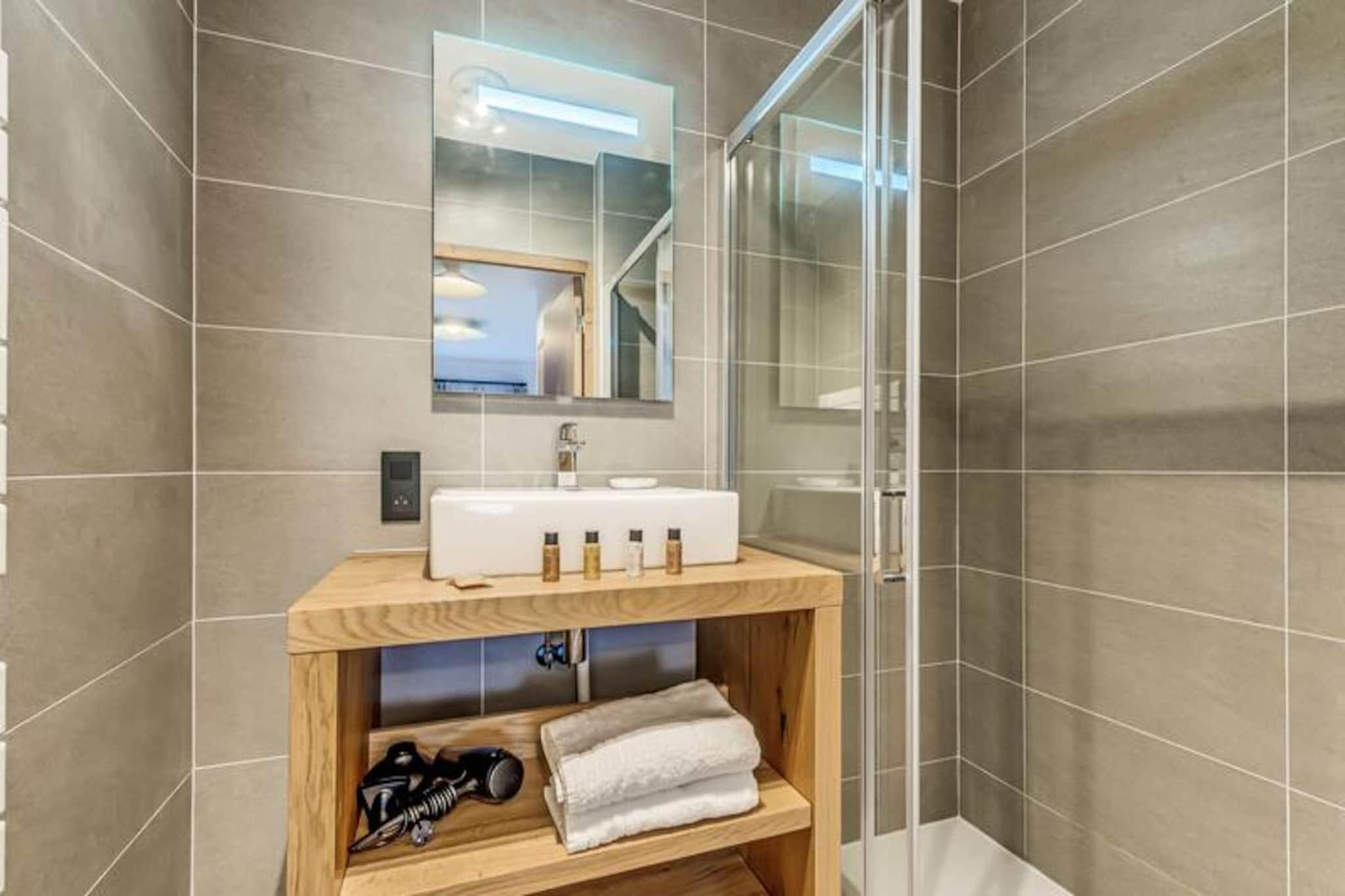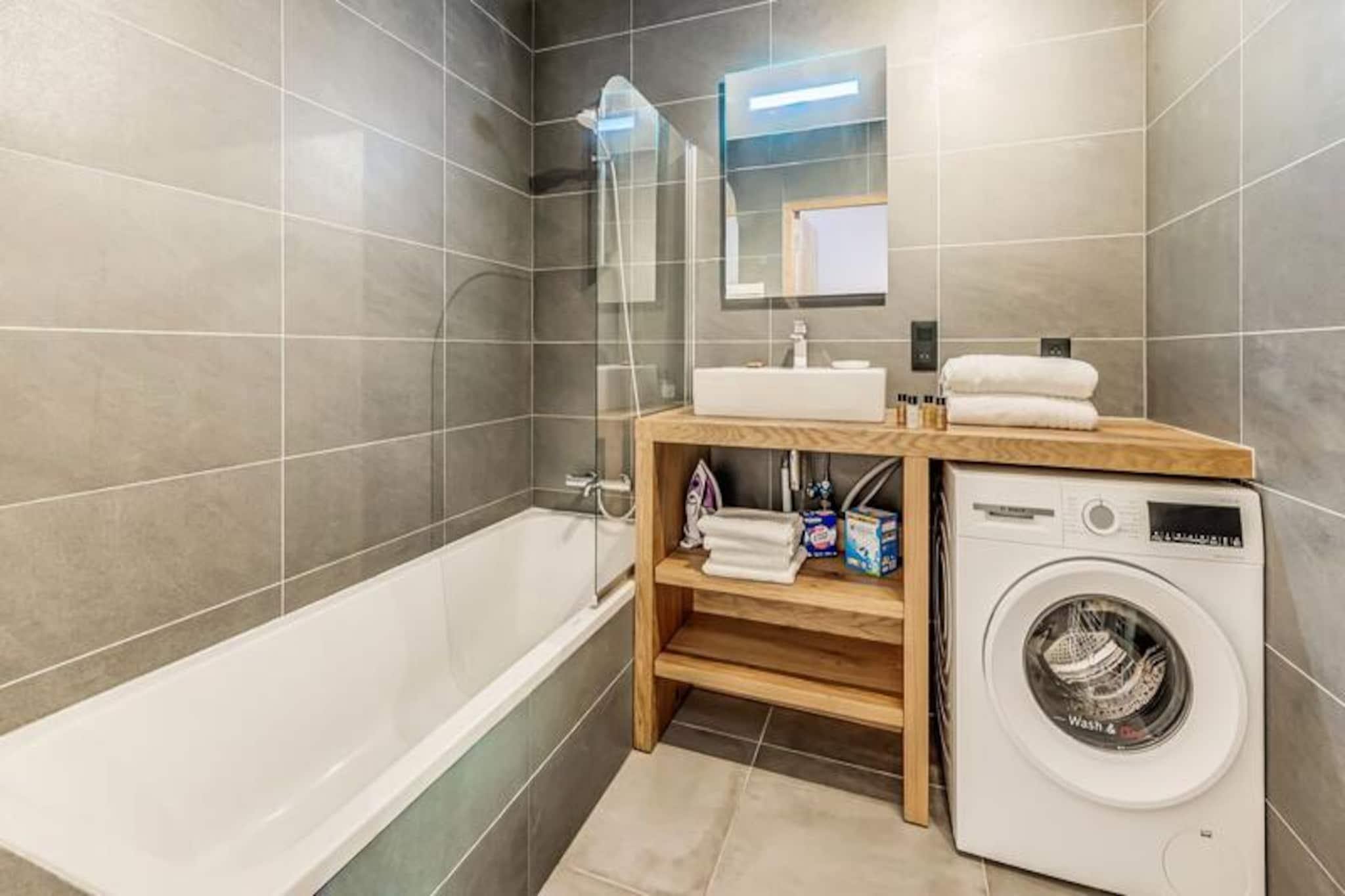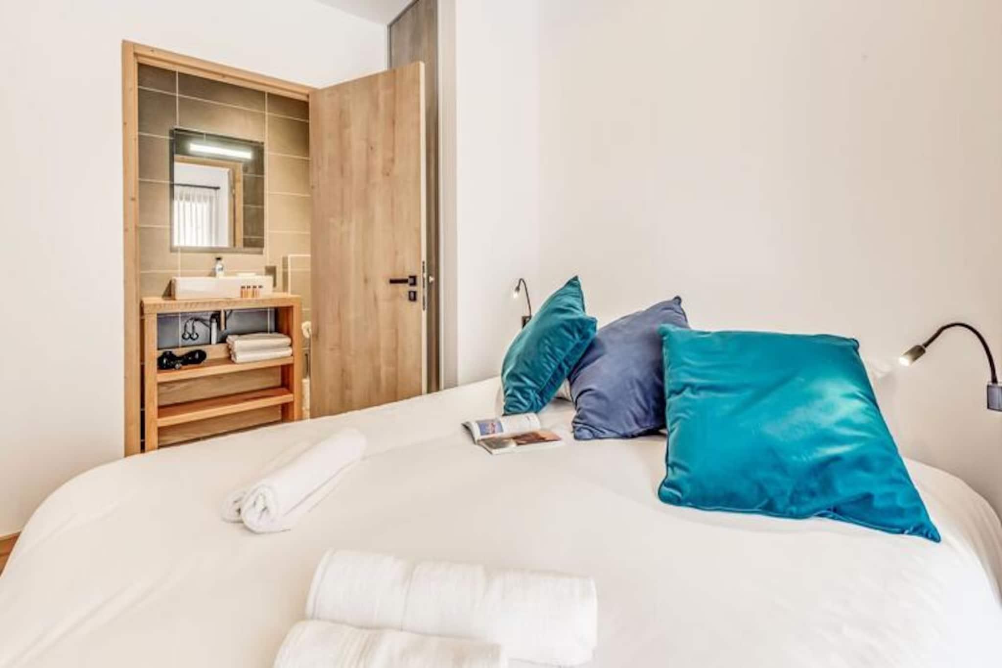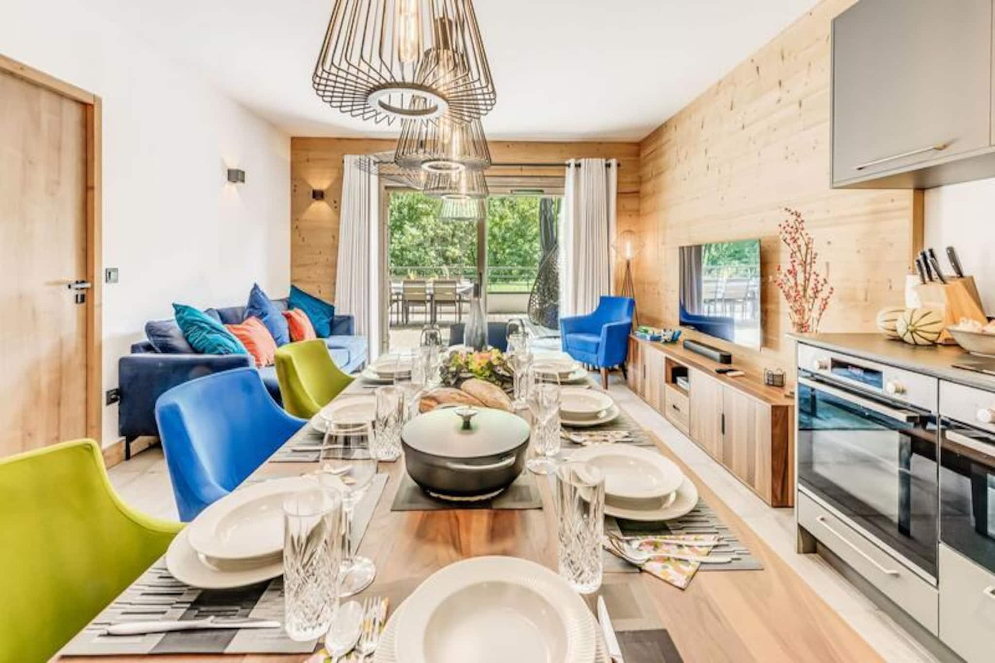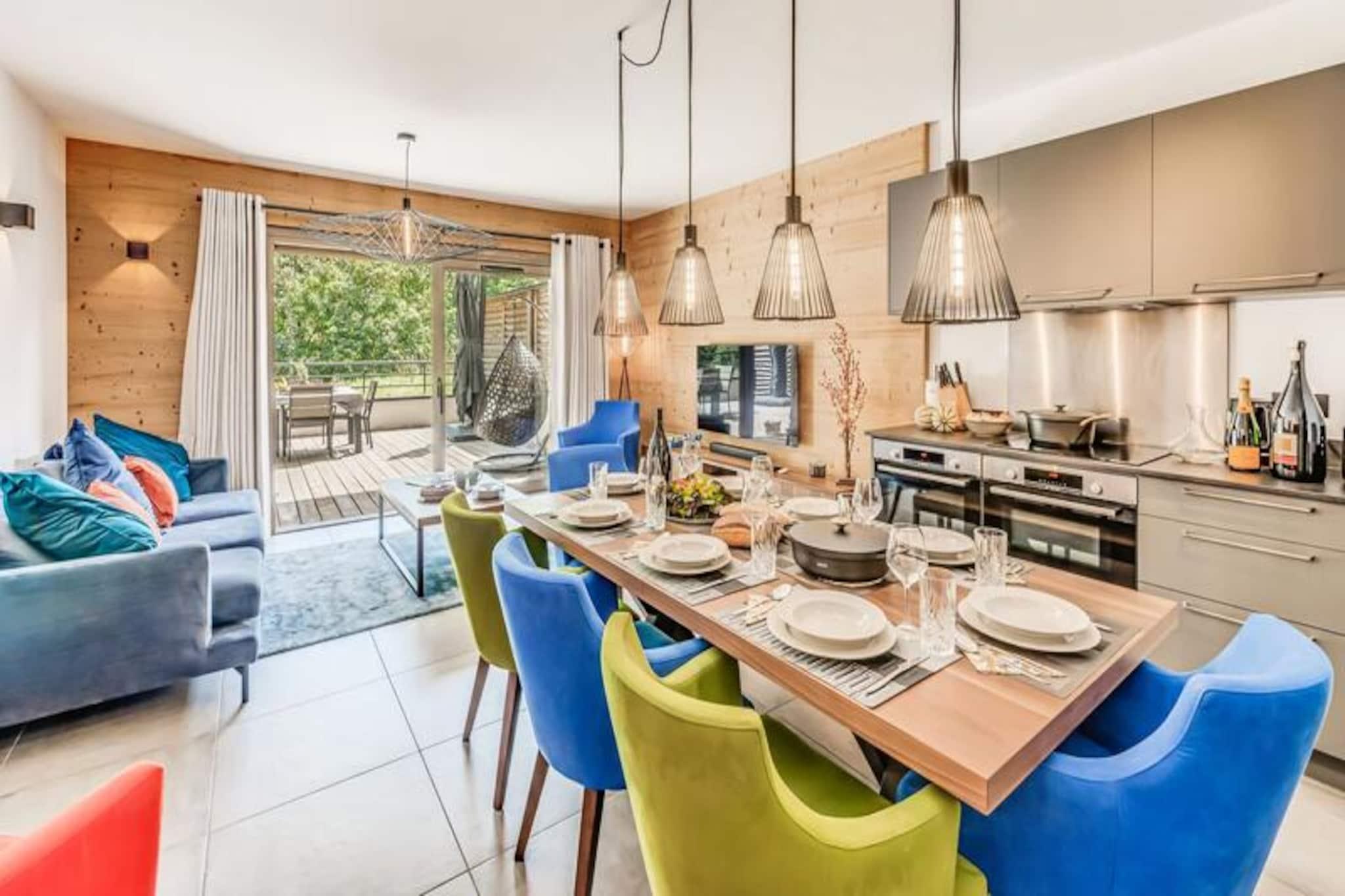 Med de majestætiske tinder af Vanoise-bjergene som baggrund tilbyder denne elegante lejlighed i stueetagen i den helt nye bolig Terrasses de la Vanoise et luksuriøst alpint tilflugtssted. Beliggende i den charmerende landsby Villard Dessous, kun 500 meter fra hjertet af Champagny en Vanoise, kombinerer denne ejendom moderne komfort med betagende naturskønhed. Uanset om du er her for vintersport eller sommereventyr, er beliggenheden perfekt til at fordybe dig i den fredfyldte alpine livsstil. Gratis kommunale shuttlebusser, kun 50 meter væk, giver nem adgang til landsbyen og den maleriske Champagny-le-Haut-dal. Indenfor kan lejligheden prale af en rummelig planløsning på 88 m² designet til at rumme op til otte gæster. De omhyggeligt indrettede værelser omfatter en master suite med en privat terrasse, to ekstra soveværelser med fleksible sovepladser og et hyggeligt køjesengsområde. Den åbne opholdsstue har et fuldt udstyret køkken, en spiseplads til otte personer og en stilfuld stue med en 55-tommers terrasse.