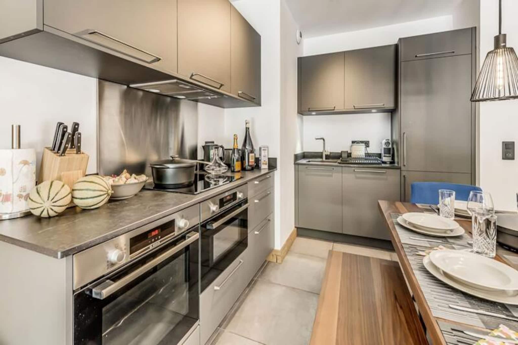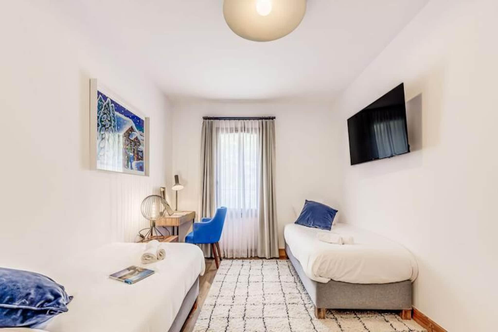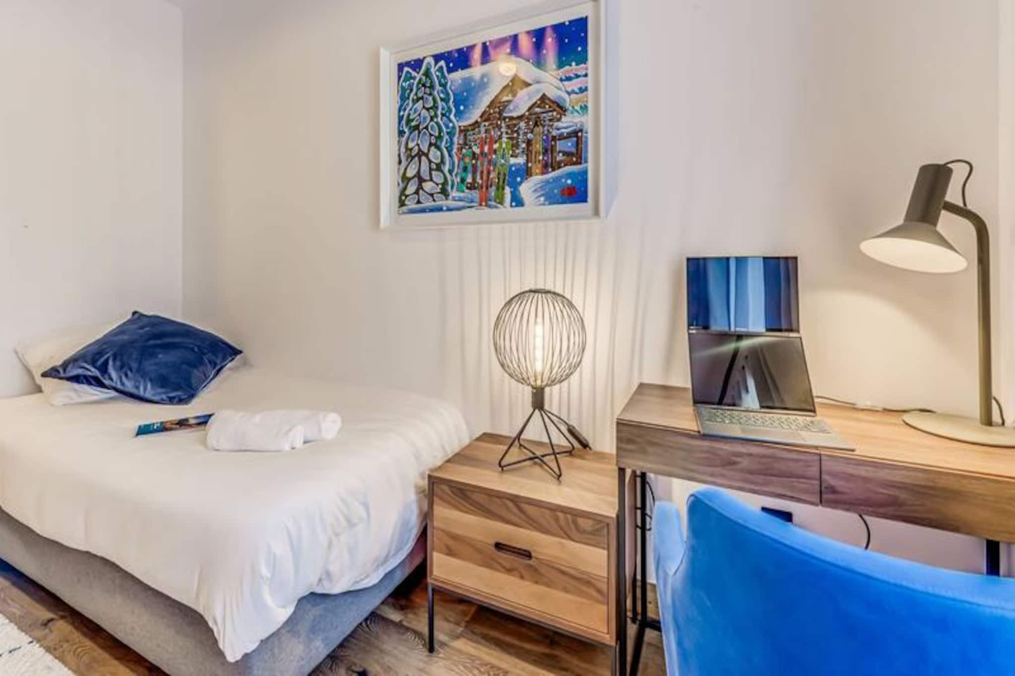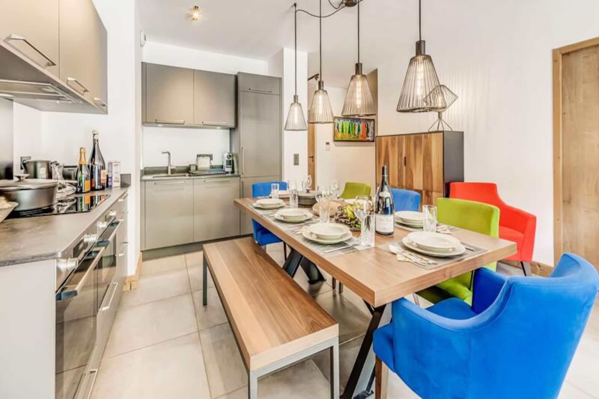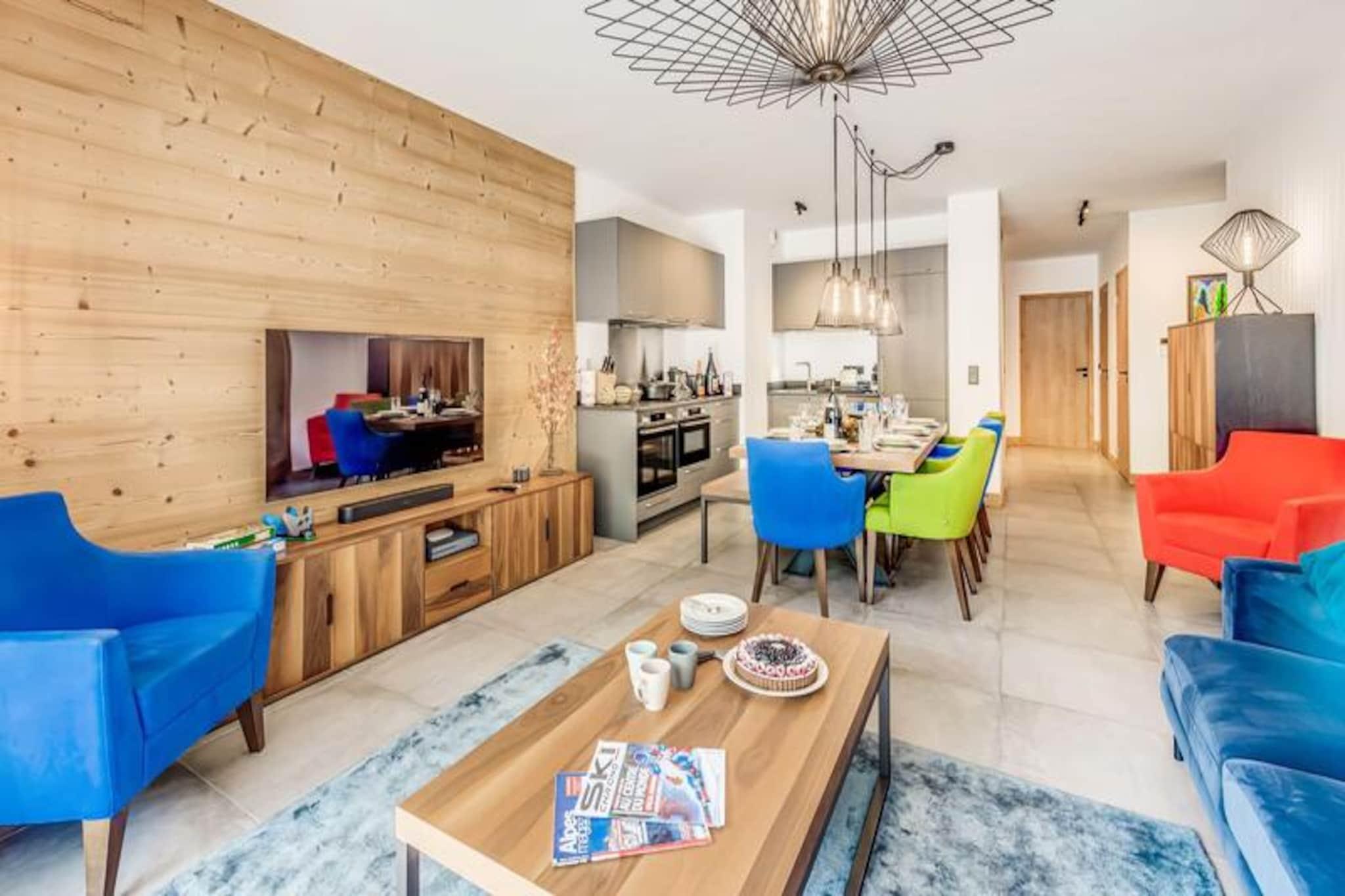 Med de majestætiske tinder af Vanoise-bjergene som baggrund tilbyder denne elegante lejlighed i stueetagen i den helt nye bolig Terrasses de la Vanoise et luksuriøst alpint tilflugtssted. Beliggende i den charmerende landsby Villard Dessous, kun 500 meter fra hjertet af Champagny en Vanoise, kombinerer denne ejendom moderne komfort med betagende naturskønhed. Uanset om du er her for vintersport eller sommereventyr, er beliggenheden perfekt til at fordybe dig i den fredfyldte alpine livsstil. Gratis kommunale shuttlebusser, kun 50 meter væk, giver nem adgang til landsbyen og den maleriske Champagny-le-Haut-dal. Indenfor kan lejligheden prale af en rummelig planløsning på 88 m² designet til at rumme op til otte gæster. De omhyggeligt indrettede værelser omfatter en master suite med en privat terrasse, to ekstra soveværelser med fleksible sovepladser og et hyggeligt køjesengsområde. Den åbne opholdsstue har et fuldt udstyret køkken, en spiseplads til otte personer og en stilfuld stue med en 55-tommers terrasse.