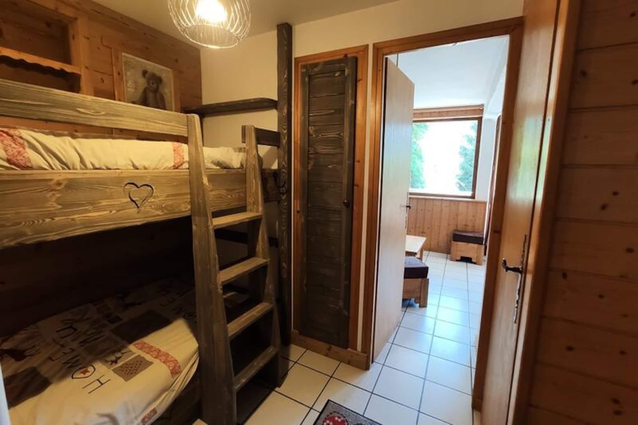 Ved indgangen til den majestætiske Vanoise Nationalpark inviterer Les Edelweiss Residence i Champagny-en-Vanoise dig til at opleve charmen ved et alpint liv. Omgivet af betagende bjergudsigter og beliggende i det rolige Hameau des Rochers, tilbyder denne residens en perfekt blanding af rustik elegance og moderne komfort. Hytterne, med deres sten- og træfacader og skifertage, udstråler en varm og indbydende atmosfære, hvilket gør det til et ideelt tilflugtssted for både naturelskere og eventyrlystne. \n\nIndenfor skaber træpanelerne en hyggelig atmosfære, der komplementerer de fantastiske omgivelser. Residensen har en delvist overdækket opvarmet swimmingpool, der er åben fra juli til september, perfekt til afslapning efter en dag med udforskning. Gæsterne kan også nyde den fælles sauna, tennisbane og petanquebane, hvilket sikrer en række aktiviteter til afslapning og rekreation. Indkvarteringen inkluderer Wi-Fi-adgang og et tv, hvilket gør dit ophold endnu mere bekvemt. Studiolejligheden til fire personer kan prale af en balkon, en stue med en sovesofa, et udstyret tekøkken og et soveområde med køjesenge, hvilket giver et komfortabelt sted for familier eller små grupper. \n\nChampagny-en-Vanoise tilbyder et væld af udendørsaktiviteter, lige fra vandreture langs markerede stier til toppe og bjerghytter, til klatring via ferrata-ruter og adventurebaner. Mountainbike-entusiaster vil finde masser af stier at udforske, mens det rolige alpine miljø giver muligheder for fredelige vandreture og dyrelivsobservation. Den nærliggende Vanoise Nationalpark er et paradis for naturelskere, der tilbyder uovertrufne landskaber og en mangfoldig flora og fauna. \n\nUanset om du søger eventyr eller ro, er Les Edelweiss Residence din indgang til en uforglemmelig alpin flugt. Med sine idylliske omgivelser og gennemtænkte faciliteter lover det en ferie fyldt med komfort, udforskning og den tidløse skønhed i de franske alper.