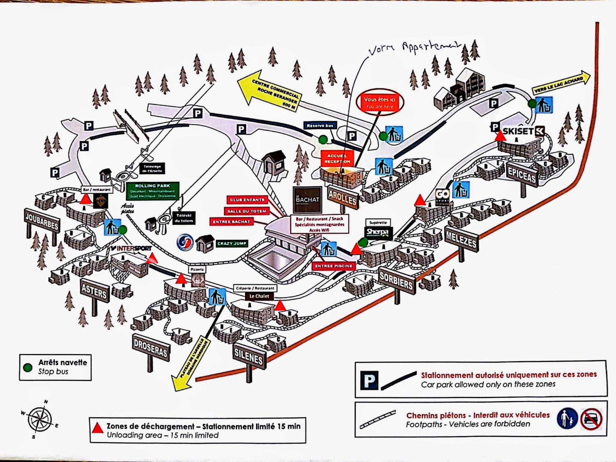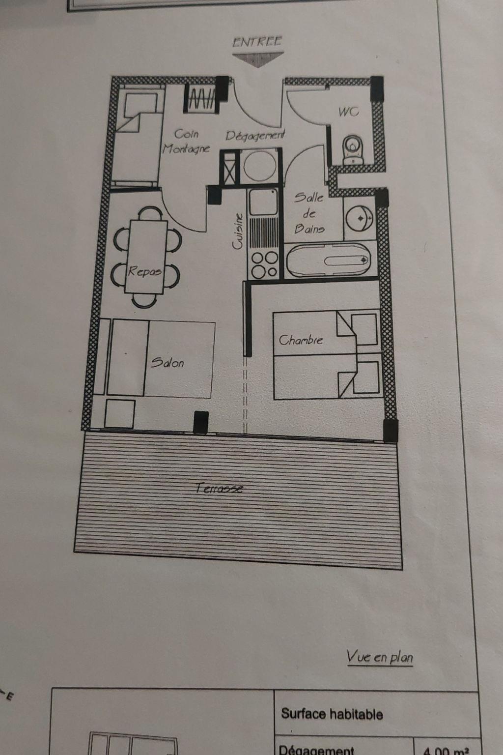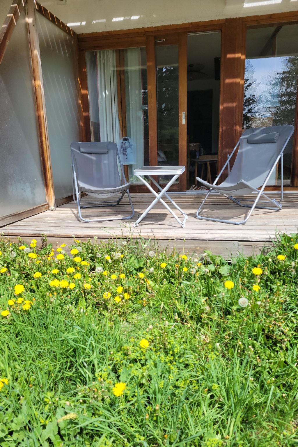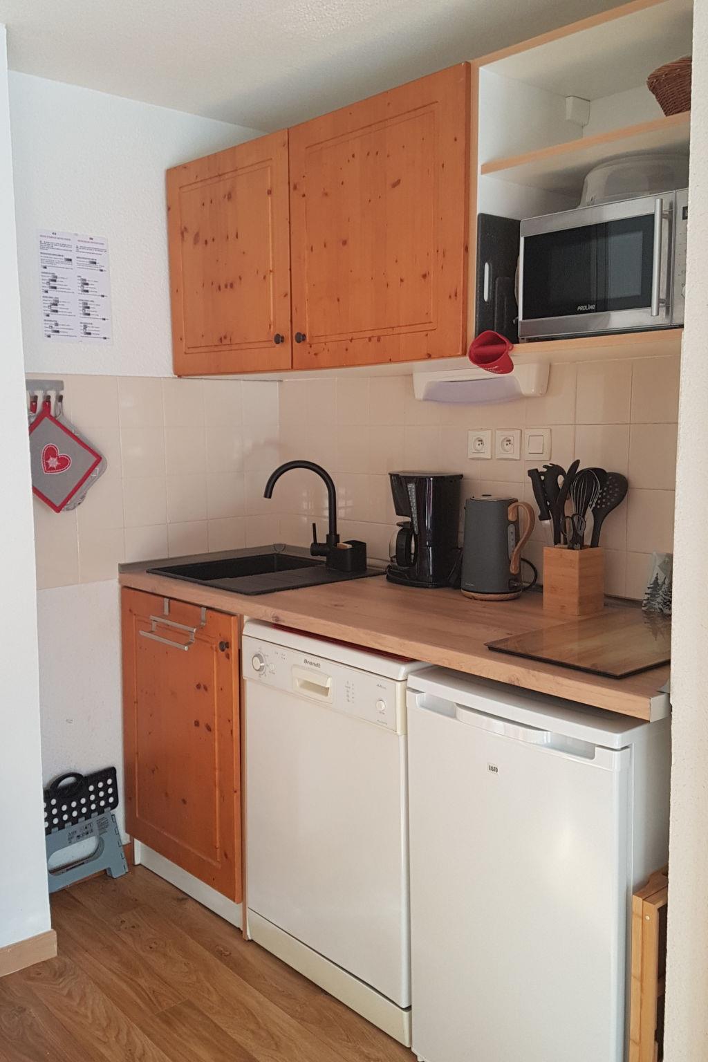 "V du Bachat Arolles A", 2-room apartment 32 m2, on the ground floor. Object suitable for 4 adults. 1 room with 2 beds and TV. Living room with 1 sofabed and 1 x 2 bunk beds, 1 pull-out bed. Kitchen (4 hot plates, dishwasher, toaster, kettle, microwave, electric coffee machine). Bath/WC. Terrace 11 m2. Facilities: hair dryer. Please note: non-smokers only. Offer by a commercial proprietor according to Art. 155, IV, CGI