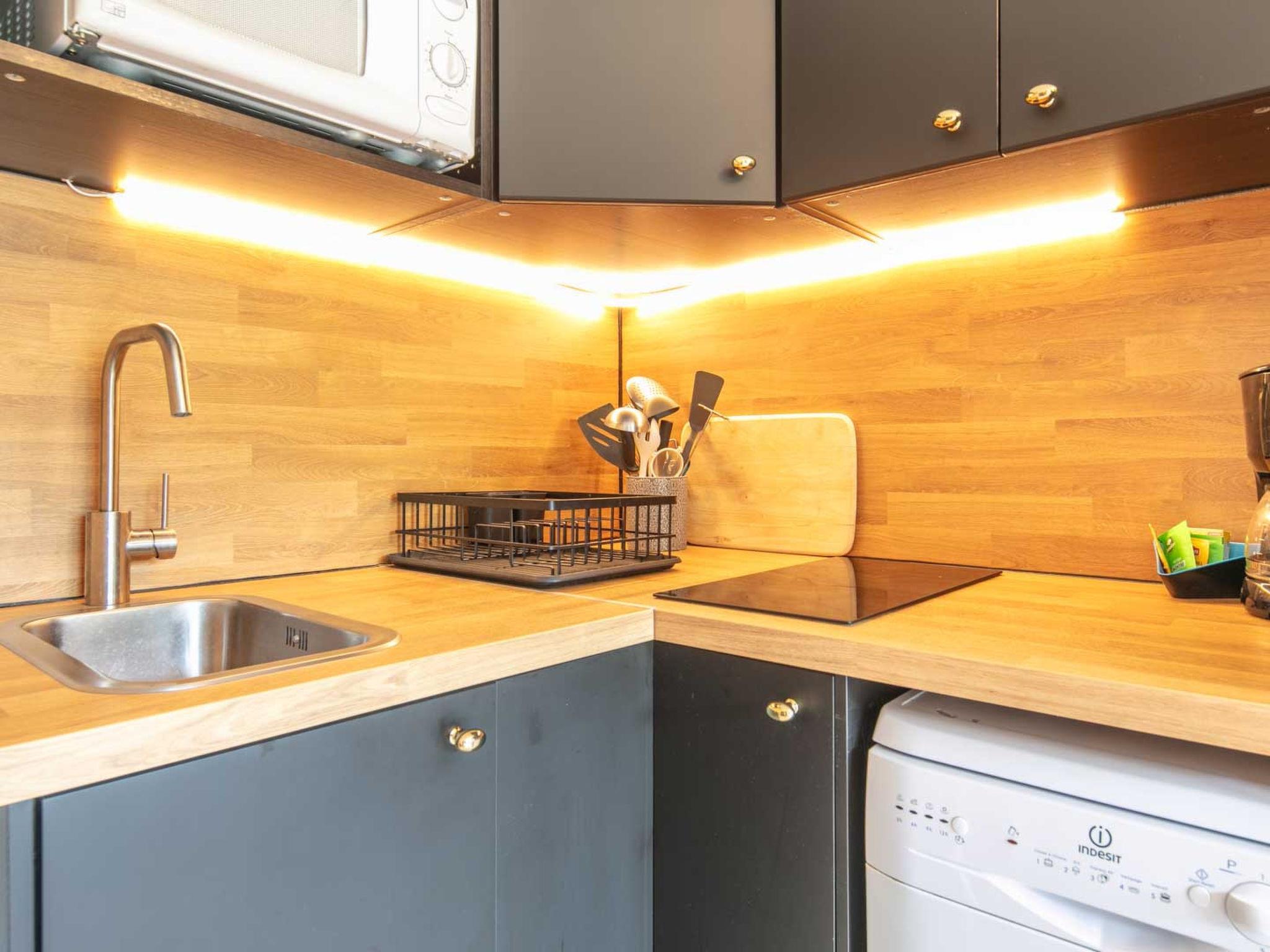 "LE Vernon", 1-room studio 20 m2 on 6th floor. Object suitable for 4 adults. Living room with 1 sofabed and 2 x 2 bunk beds, 1 pull-out bed and TV. Open kitchen (2 hot plates, dishwasher, toaster, kettle, microwave, electric coffee machine). Shower/WC. Balcony. View of the mountains and the ski run. Facilities: Internet (WiFi, free). Please note: non-smokers only. Offer by a commercial proprietor according to Art. 155, IV, CGI