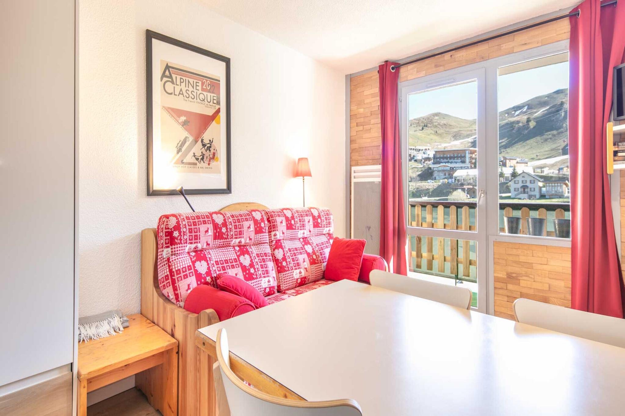 Dette charmerende studie, perfekt til bjergferier, har plads til op til fire gæster i et lyst område på 19 m². Studiet er ideelt til par eller små familier og har en privat balkon med fredfyldt udsigt over bjergene og skråningerne. Selvom kæledyr ikke er tilladt, inkluderer ejendommen elektrisk varme og et tv for et behageligt og afslappende ophold. En elevator giver nem adgang til enheden, og den praktiske indretning sikrer, at alle nødvendige bekvemmeligheder er inden for rækkevidde, selvom der ikke kan lejes ekstra ting, og der tilbydes ingen gratis aktiviteter. Beliggende i hjertet af et familievenligt, bjergrigt område, ligger dette studie kun 200 meter fra det nærmeste skisportssted, hvilket gør det til en fremragende base for vintersportsentusiaster. Beliggenheden i Chamrousse tilbyder direkte adgang til alpine stier og skiløb, med smukke naturlige omgivelser at udforske året rundt. Selvom der ikke er nogen specifik omtale af offentlig transport, sikrer den centrale beliggenhed i denne bjerglandsby, at vigtige faciliteter og rekreative områder er let tilgængelige til fods. Studioet har et veludstyret elektrisk åbent køkken udstyret med køleskab, mikrobølgeovn, brødrister, kaffemaskine, elkedel og alt nødvendigt køkkenudstyr. Yderligere faciliteter inkluderer eget badeværelse, hårtørrer og balkon med siddepladser - ideelt til at nyde den friske alpine luft og den naturskønne udsigt efter en dag med udendørsaktiviteter.