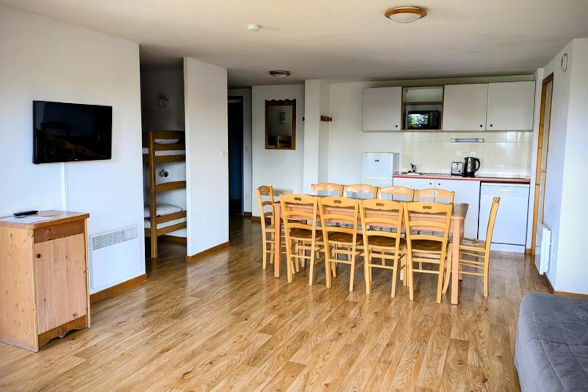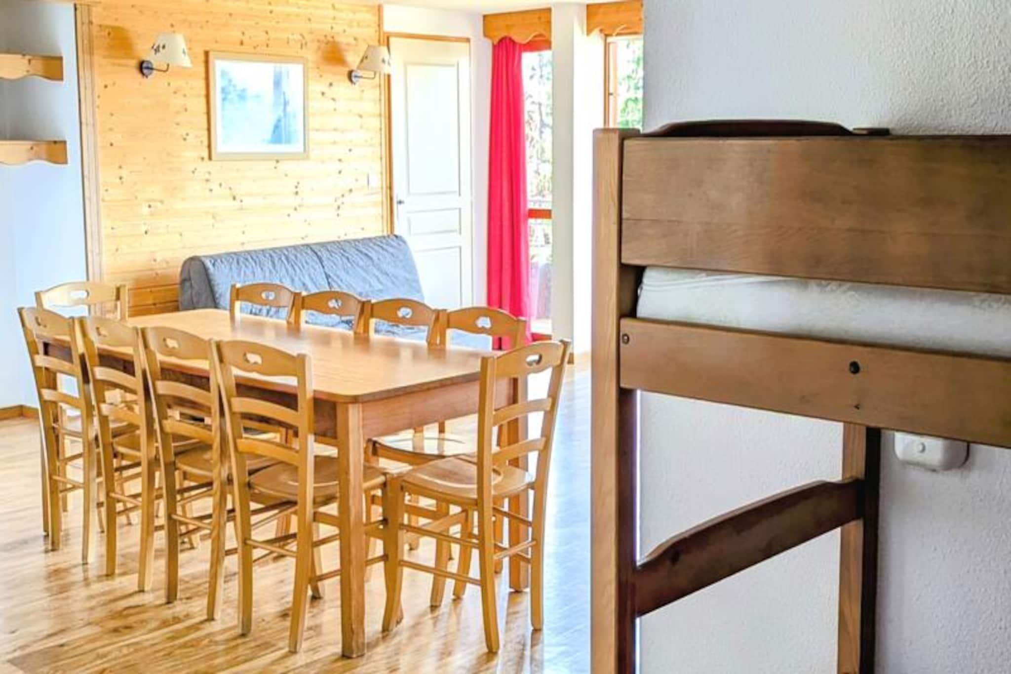 Midt i Belledonne-massivets fredfyldte skønhed tilbyder Les Villages du Bachat et roligt tilflugtssted omgivet af frodige granskove og betagende bjergudsigter. 1.700 meter over havets overflade er denne charmerende bolig opdelt i otte landsbyer, der hver især er omhyggeligt designet med træarkitektur, der harmonerer perfekt med det naturlige landskab. Kun få skridt væk ligger Plateau de l'Arselle, et malerisk skovområde omkranset af Taillefer-massivet, kendt for sin mangfoldige flora og fauna. Her vil naturelskere finde idylliske omgivelser til at udforske uberørt vildmark og alpine søer. \n\nEjendommen har en hyggelig stue med sovepladser til to, et veludstyret tekøkken, to soveværelser med dobbelt- eller enkeltsenge og to sovealkove med køjesenge. Et badeværelse, brusebad og separat toilet sikrer bekvemmelighed for familier eller grupper. Den private balkon inviterer dig til at nyde den friske bjergluft og den fantastiske udsigt. Gæsterne kan også nyde den udendørs swimmingpool, perfekt til afslapning efter en dag med eventyr. Yderligere faciliteter inkluderer gratis parkering, kæledyrsvenlig indkvartering og valgfri babysæt og linnedservice for ekstra komfort. \n\nLes Villages du Bachat er en indgang til eventyr og tilbyder over 30 kilometer stier, der er egnede til alle niveauer. Lej mountainbikes, eller prøv spændende aktiviteter som paragliding, klatring, canyoning og trætop-eventyr. Det nærliggende Plateau de l'Arselle er et paradis for vandrere, mens det omkringliggende område kan prale af uberørte landskaber og et rigt dyreliv. Uanset om du søger afslapning eller spænding, henvender denne destination sig til enhver smag. \n\nUndslipp til dette alpine paradis og skab uforglemmelige minder i hjertet af Belledonne-massivet. Med sin blanding af komfort, naturlig skønhed og uendelige udendørsaktiviteter lover Les Villages du Bachat en ferieoplevelse som ingen anden.