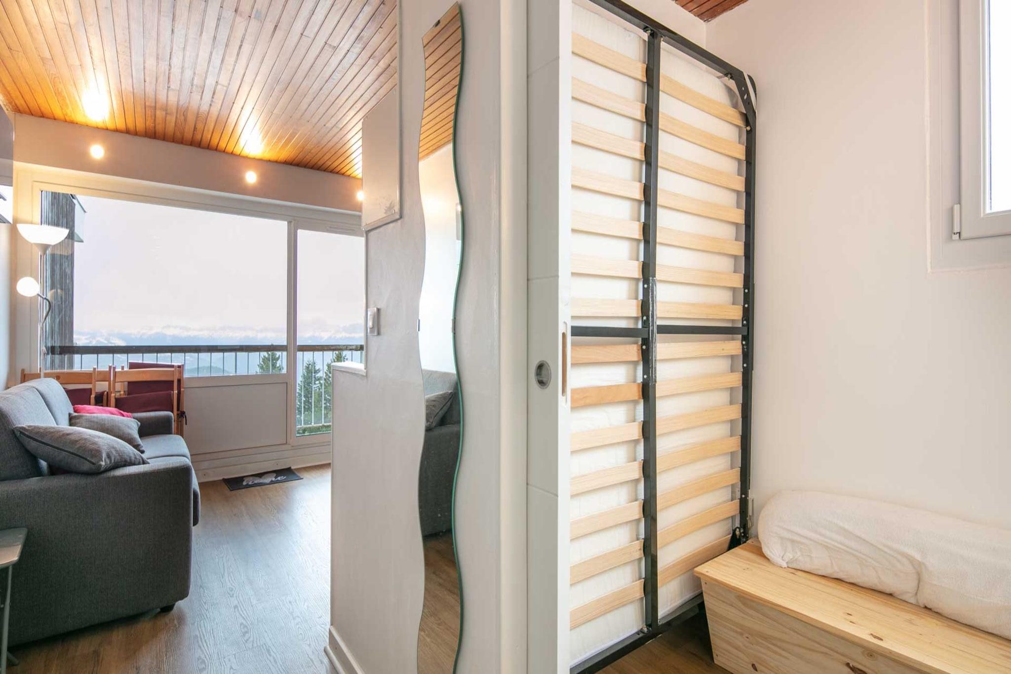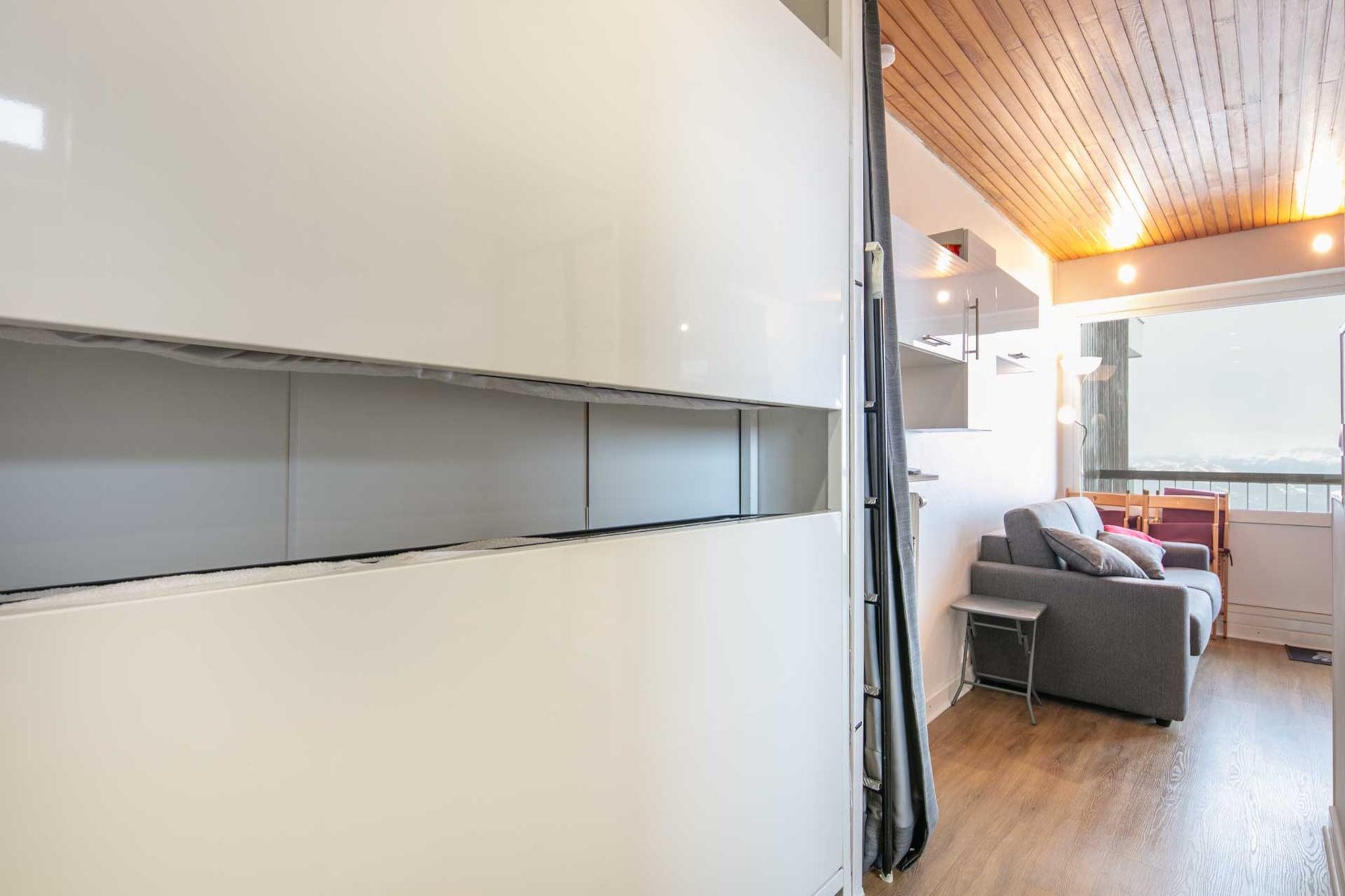 Beliggende i Chamrousses højtliggende skønhed tilbyder denne bjerglejlighed en uovertruffen beliggenhed for dem, der ønsker pisterne lige uden for døren. Designet med en smart og effektiv planløsning, huser huset komfortabelt din gruppe med et privat soveværelse med en dobbeltseng, mens opholdsstuen tilbyder ekstra soveplads med en køjeseng og en sovesofa. Efter en dag med udforskning af bjergtoppene er elevatoren, der fører dig op til din etage, et velkomment syn og fører dig til et privat fristed helt for dig selv. Højdepunktet ved dit ophold er uden tvivl den private balkon, hvor du kan indånde den friske alpine luft og fortabe dig i den storslåede udsigt over bjergene. Indvendigt er huset et mesterværk af kompakt bekvemmelighed med et fuldt udstyret køkken, der gør selvforplejning til en leg. Med opvaskemaskine, mikrobølgeovn og kaffemaskine til din rådighed kan du nyde en langsom morgenmorgenmad, inden du tager afsted. Det moderne private badeværelse med et forfriskende brusebad sikrer, at du altid er klar til det næste eventyr. Eventyret venter bogstaveligt talt lige uden for din dør, da du kun er 200 meter fra Bachat Bouloud-skiliften. Uanset om du jagter morgenens første spor eller vender tilbage efter en sidste tur i solnedgangen, er overgangen ubesværet. Når du ikke er i sneen, er de lokale smagsoplevelser fra Chamrousse kun en kort gåtur på 250 meter væk på restauranter som Chez Georges eller Le Chamroussien. Dette ikke-ryger-tilflugtssted kombinerer en førsteklasses beliggenhed med alle de nødvendige moderne bekvemmeligheder og er den ultimative base for en mindeværdig flugt i de franske alper.