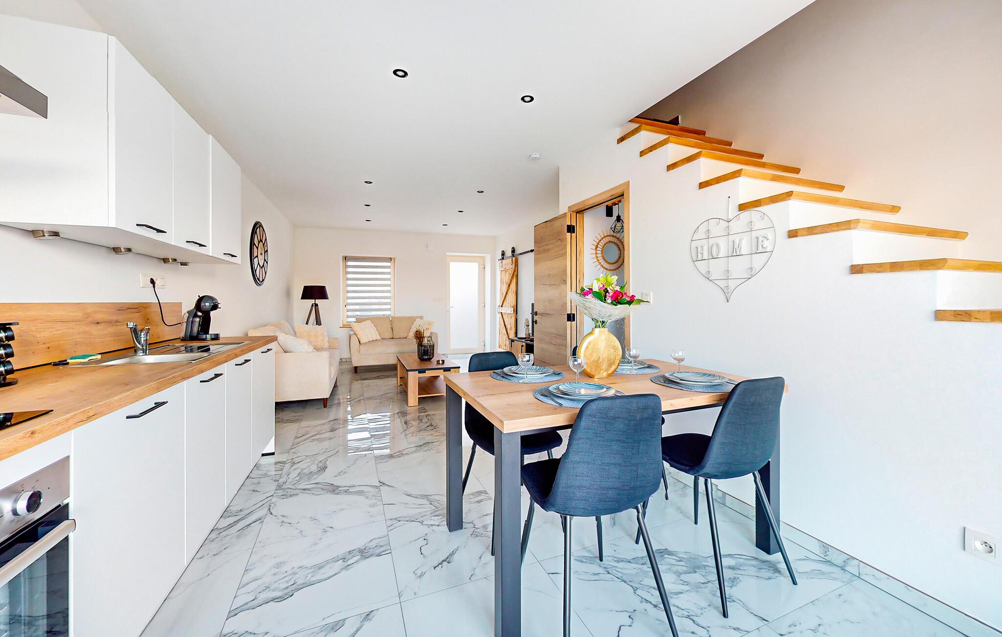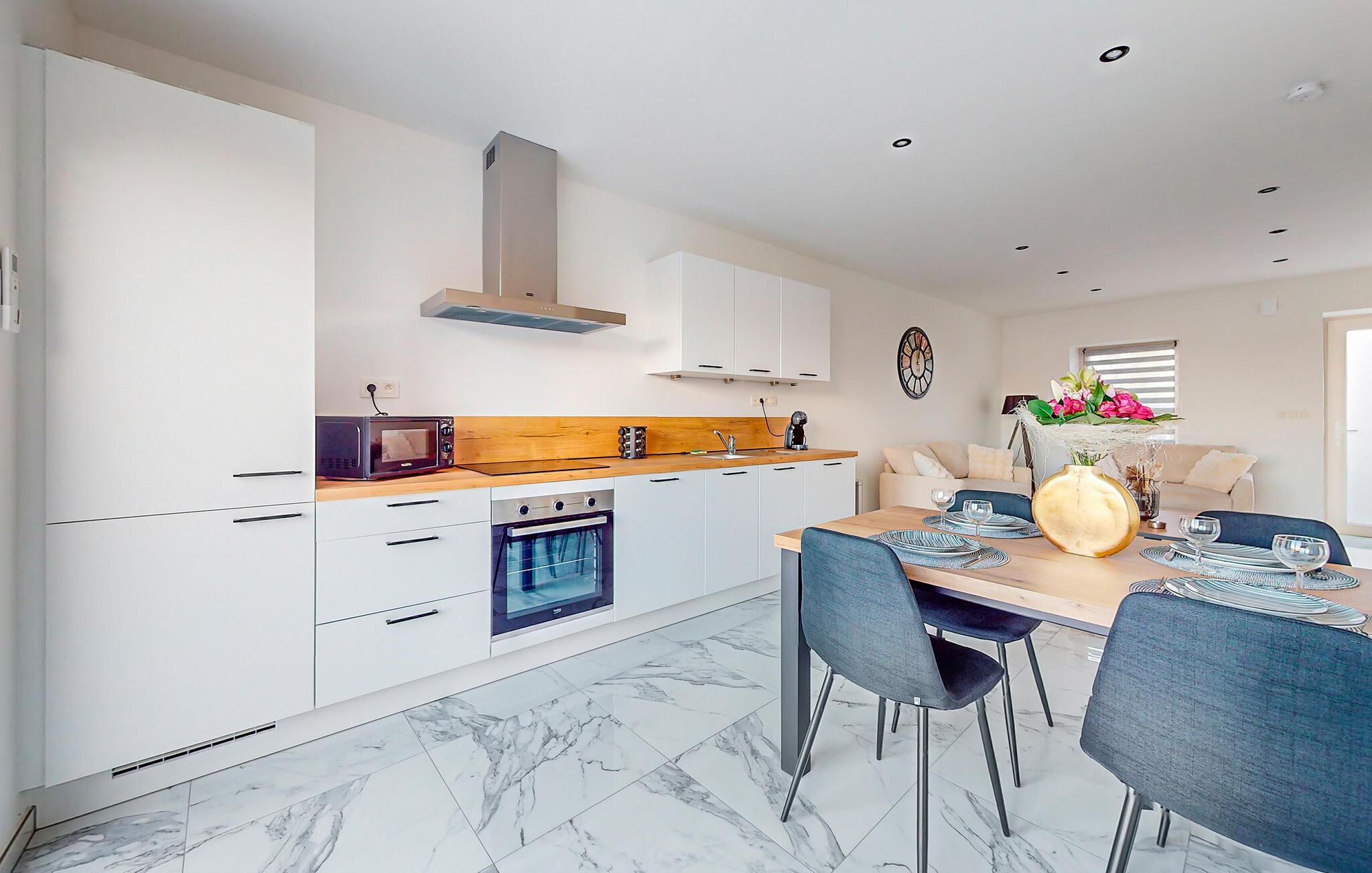 Tæt på Meuse og naturreservatet Pointe de Givet er dette smagfuldt indrettede feriehus ideelt til at tilbringe en afslappende ferie med venner eller familie. Indenfor finder I en lysbelyst opholdsstue med et rummeligt sofaområde - ideelt til omgængelige aftener med spil eller stimulerende samtaler. Lav mad i det fuldt udstyrede, åbne køkken med udsigt over det grønne og nyd dagens måltider ved det stilfuldt dækkede spisebord.