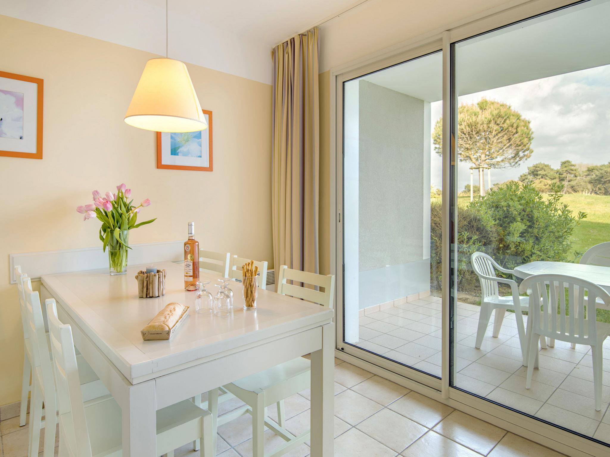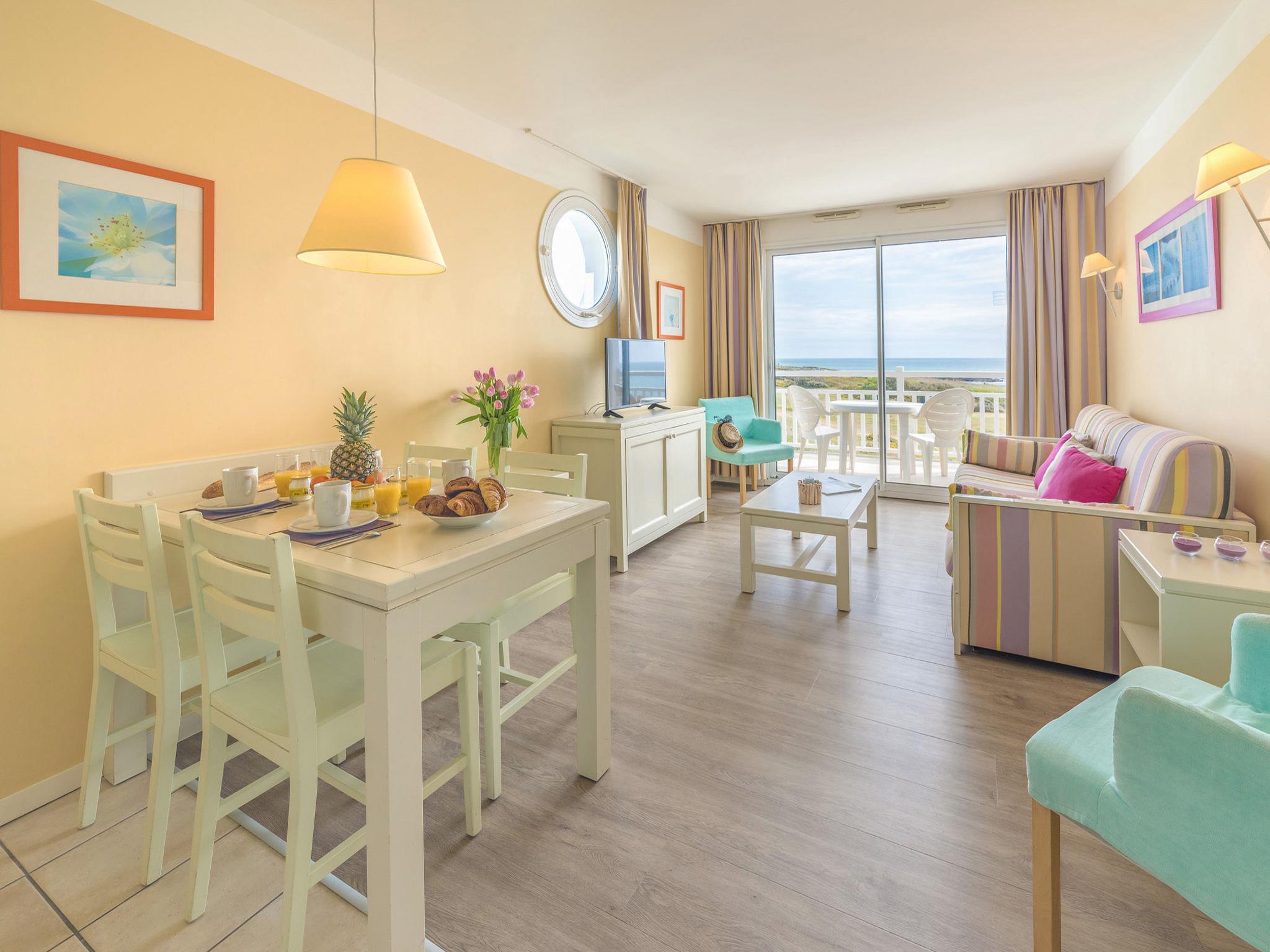 Resort "L'Estran", 2 storeys. 6 houses in the resort. 162 apartments in the residence. 4 km from the centre of Château d'Olonne, 4 km from the centre of Les Sables d'Olonne, 200 m from the sea. For shared use: property, well-kept garden with lawn, swimming pool heated (seasonal availability: 01.Apr. - 30.Sep.). Table tennis, children's playground. In the complex: reception, lift. Parking. Shop 200 m, bus stop "La Mouzinière" 2.8 km, sandy beach "du Tanchet" 2 km. Please note: the photograph shows a typical example. The holiday properties may differ in living space, floorplan, equipment and furnishing.