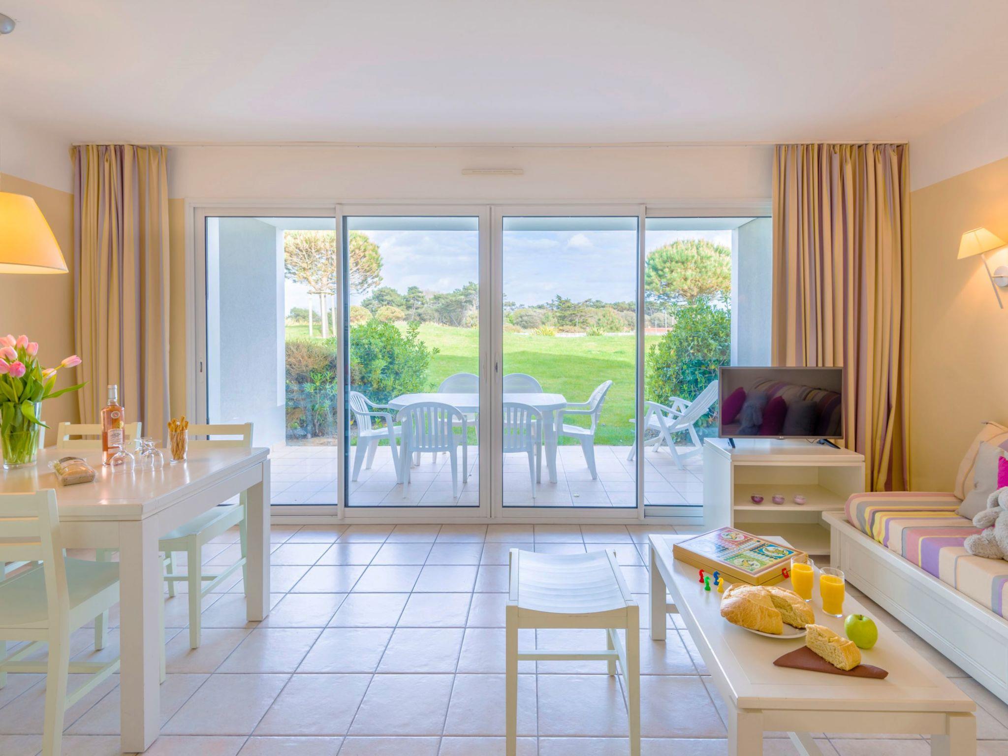 Resort "L'Estran", 2 storeys. 6 houses in the resort. 162 apartments in the residence. 4 km from the centre of Château d'Olonne, 4 km from the centre of Les Sables d'Olonne, 200 m from the sea. For shared use: property, well-kept garden with lawn, swimming pool heated (seasonal availability: 01.Apr. - 30.Sep.). Table tennis, children's playground. In the complex: reception, lift. Parking. Shop 200 m, bus stop "La Mouzinière" 2.8 km, sandy beach "du Tanchet" 2 km. Please note: the photograph shows a typical example. The holiday properties may differ in living space, floorplan, equipment and furnishing.