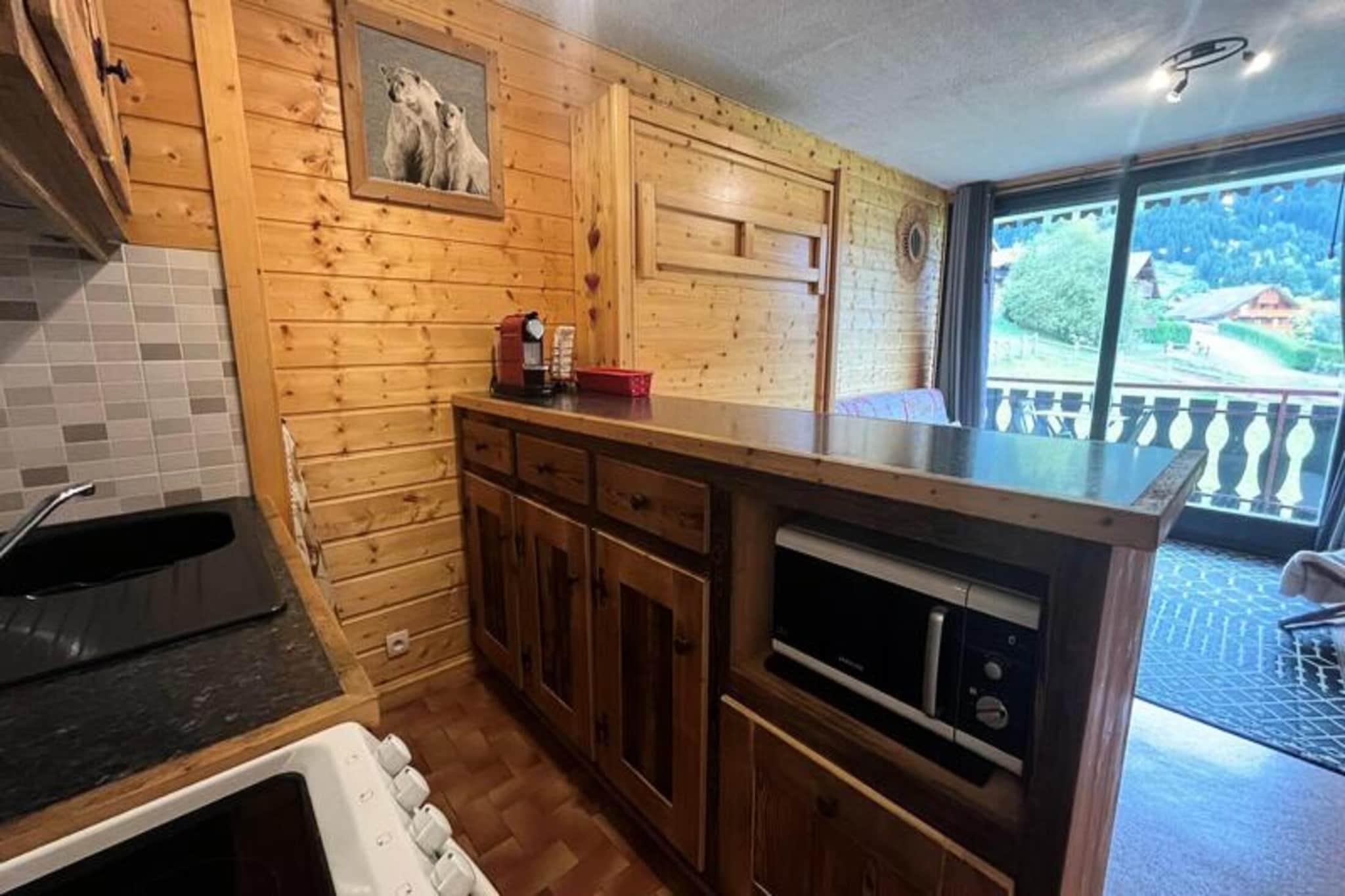 Denne charmerende residens, bygget i 1978, er bekvemt beliggende i centrum af landsbyen, nær Forme d'O-vandcentret, og tilbyder nem adgang til lokale faciliteter. Studiet, der spænder over 23,91 m², er designet til at rumme op til 4 personer. Det har en sydvendt altan, perfekt til at nyde solen. Indenfor er opholdsstuen udstyret med en sammenklappelig dobbeltseng, en sovesofa, et udstyret køkken med spiseplads og et badeværelse med toilet. Boligen tilbyder et skirum til praktisk opbevaring af udstyr og en udendørs parkeringsplads til gæsternes køretøjer. Studiet er ideelt for små familier eller grupper af venner, der leder efter et hyggeligt tilflugtssted. Det er beliggende i en førsteklasses beliggenhed, hvilket giver nem adgang til nærliggende attraktioner og udendørs aktiviteter. Gæster vil værdsætte den tætte nærhed til Forme d'O-vandcentret, hvilket gør det nemt at nyde både afslapning og rekreation under deres ophold. For gæsternes bekvemmelighed er studiet udstyret med et komplet udvalg af køkkenmaskiner, herunder en filterkaffemaskine, elkedel og alt nødvendigt køkkengrej. Boligen giver et komfortabelt og funktionelt rum, perfekt til selvforplejning. Opvarmning er tilvejebragt for at sikre en varm og behagelig atmosfære i de kolde måneder.
