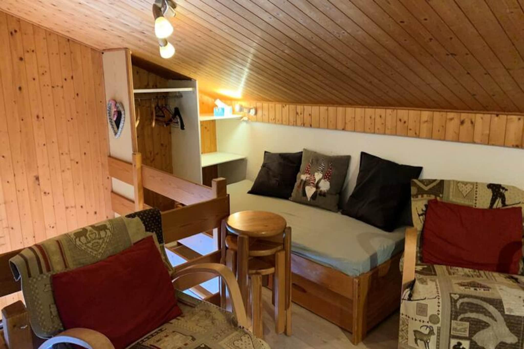 Denne charmerende 2-værelses mezzaninlejlighed er beliggende i en bolig bygget i 1990, bestående af fire bygninger med i alt fire etager og en elevator. Beliggende i Oy, kun 900 meter fra landsbyens centrum og nær Marmottons, er lejligheden bekvemt tæt på gratis shuttle-stop, hvilket giver nem adgang til Linga-området og landsbyens centrum. Lejligheden kan rumme op til 6 personer og byder på et hyggeligt tilflugtssted i bjergene. Yderligere faciliteter inkluderer Wi-Fi, et fjernsyn, udendørs parkering og et skiskab for nemheds skyld. Lejligheden er også kæledyrsvenlig. Beliggende kun 100 meter fra shuttle-stoppestedet, giver det nem adgang til landsbyens centrum, Linga-skiområdet og den nærliggende ESF-skiskole. En ikke-ryger lejlighed med et depositum på EURO 300 påkrævet. Ideel til familier eller små grupper på udkig efter komfort og tilgængelighed. På hovedetagen finder du et bjerghjørne med 2 køjesenge, et fuldt udstyret køkken (med ovn, kedel, kaffemaskine, brødrister, raclettemaskine og fonduesæt), et badeværelse og separat toilet. Mezzaninen har en stue med en sovesofa, et soveværelse med en dobbeltseng og et ekstra toilet. Gæsterne kan nyde de naturskønne omgivelser fra balkonen, perfekt til at slappe af efter en dag på pisterne.