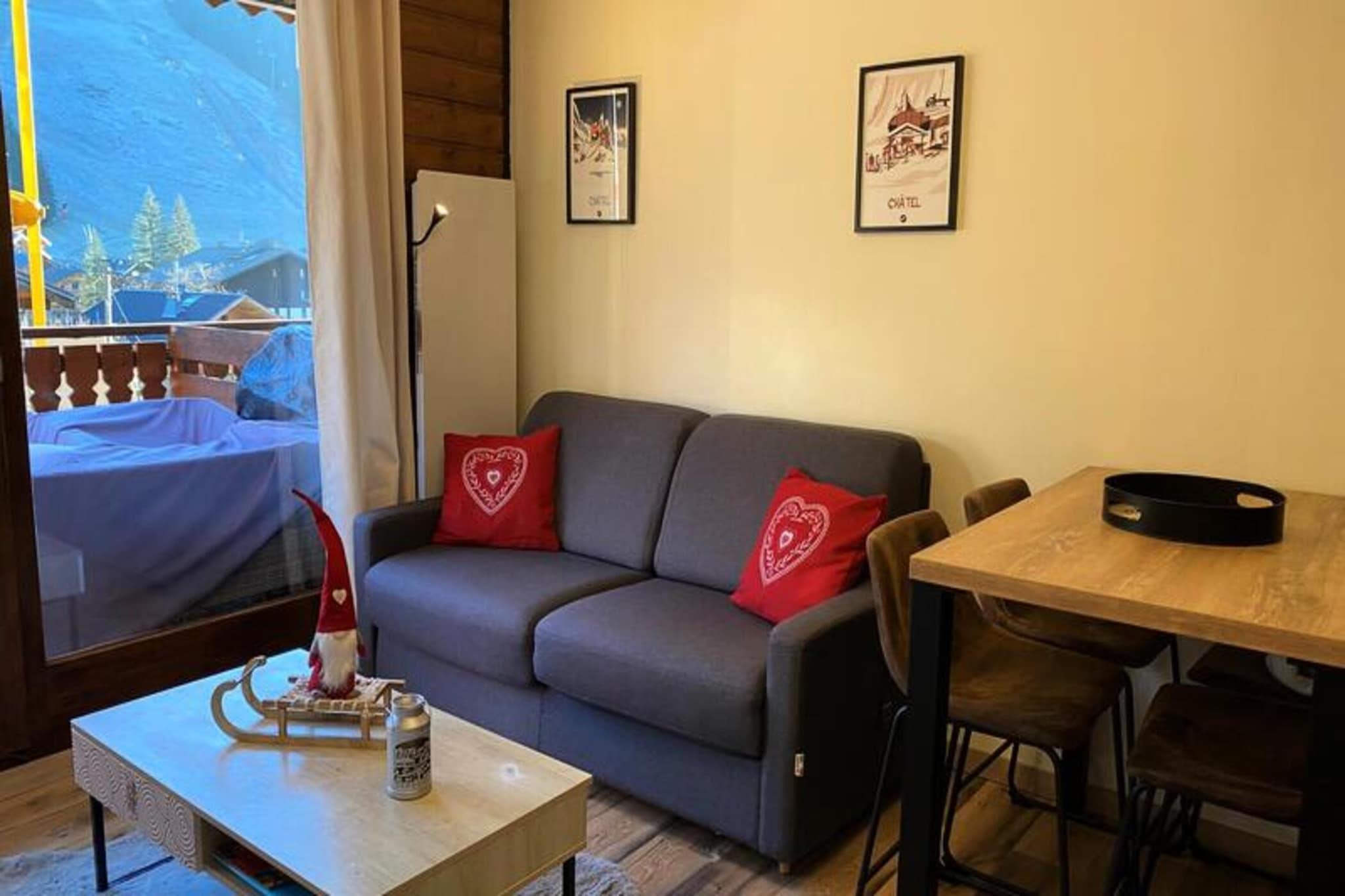 Denne charmerende lejlighed, beliggende i Residence B, tilbyder et hyggeligt og veludstyret oase for op til 4 personer. Lejligheden ligger på 1. sal i en bolig bygget i 1994, kun 300 meter fra Linga-svævebanen og 1900 meter fra landsbyens centrum, med nem adgang til gratis transport. Interiøret har et bjerghjørne med to sammenklappelige senge, et soveværelse med en dobbeltseng og en komfortabel sovesofa i stuen. Lejligheden indeholder også et badeværelse, et separat toilet og en rummelig opholdsstue, der fører ud til en stor sydvendt terrasse med havemøbler, perfekt til at nyde den naturskønne udsigt. Ud over vinteraktiviteter tilbyder området et Summer Multipass, der giver adgang til forskellige lokale attraktioner for kun 2,50 EURO per person per dag. Det maleriske landsbycentrum, kendt for sin charmerende alpine atmosfære og en række udendørs aktiviteter såsom vandreture og mountainbiking, er let tilgængelige fra lejligheden. Det fuldt udstyrede køkken tilbyder alt, hvad der er nødvendigt for tilberedning af måltider, herunder en induktionskomfur, ovn, mikroovn, kaffemaskine, raclettegrill og opvaskemaskine. Yderligere faciliteter inkluderer en vaskemaskine, støvsuger, tv og internet. Lejligheden er desuden indrettet med dyner og puder for din komfort. Skientusiaster vil sætte pris på stedets skirum, og der er fælles parkering til rådighed.