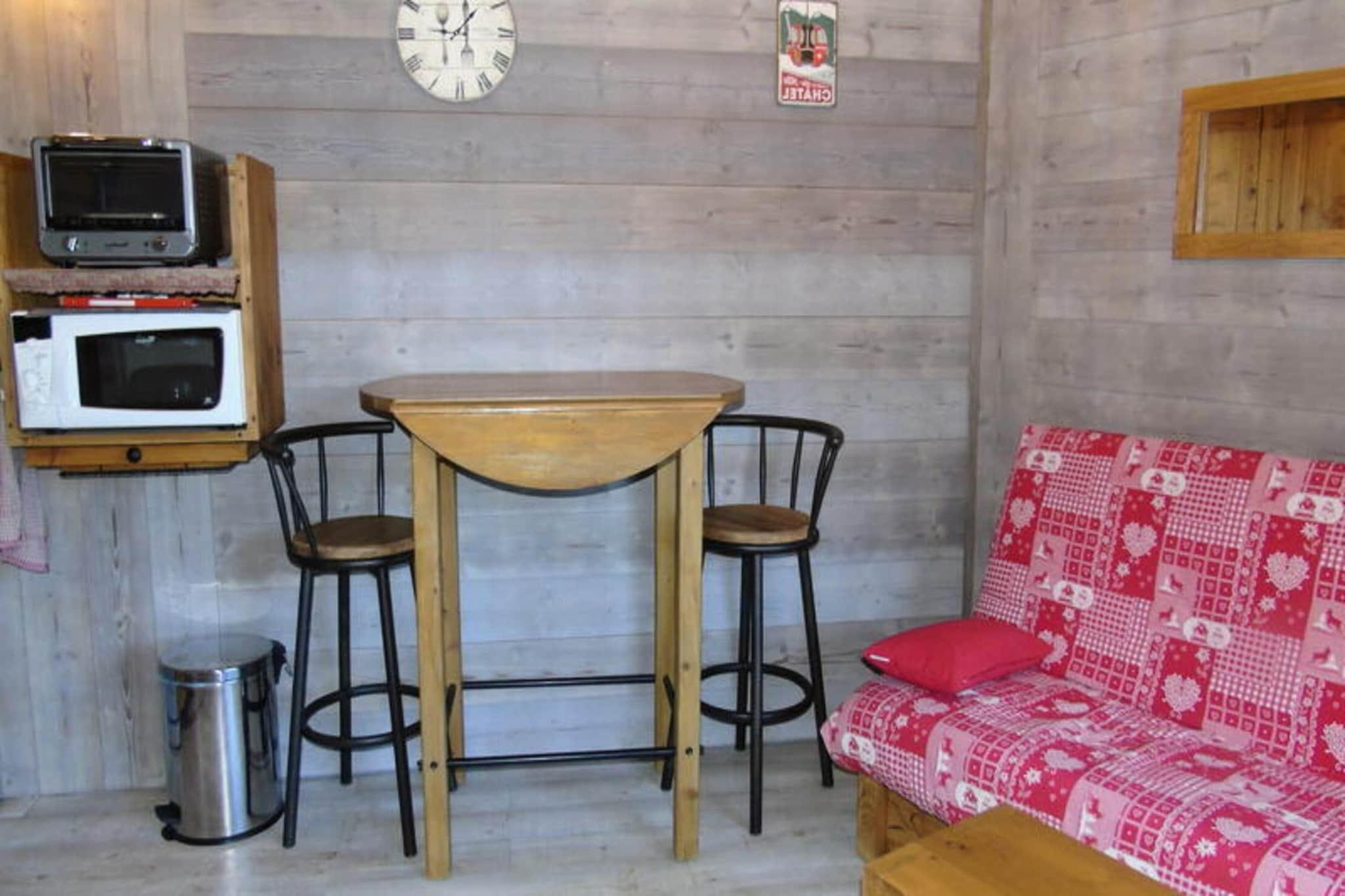 Denne lejlighed på 27 m², beliggende på 1. sal i en bolig fra 1982, kan rumme op til 4 gæster. Det har et soveværelse med en dobbelt køjeseng, en sovesofa i stuen, et køkken og et badeværelse med toilet. Den sydvestvendte altan byder på naturskøn udsigt. Lejligheden er udstyret med tv, køkkenmaskiner (komfur, mikroovn, kaffemaskine, brødrister, kedel, opvaskemaskine og raclettemaskine) og dyner. Gæsterne kan nyde bekvemmeligheden ved en parkeringsplads og en garage (nr. 28), der fungerer som et skirum. Boligen ligger 700 m fra landsbyens centrum og Super Châtel-gondolen, med gratis shuttle-adgang i nærheden. Kæledyr er ikke tilladt, og et depositum på EURO300 er påkrævet. Varme er inkluderet, og en nøgleboks er tilgængelig for lettere ankomst.